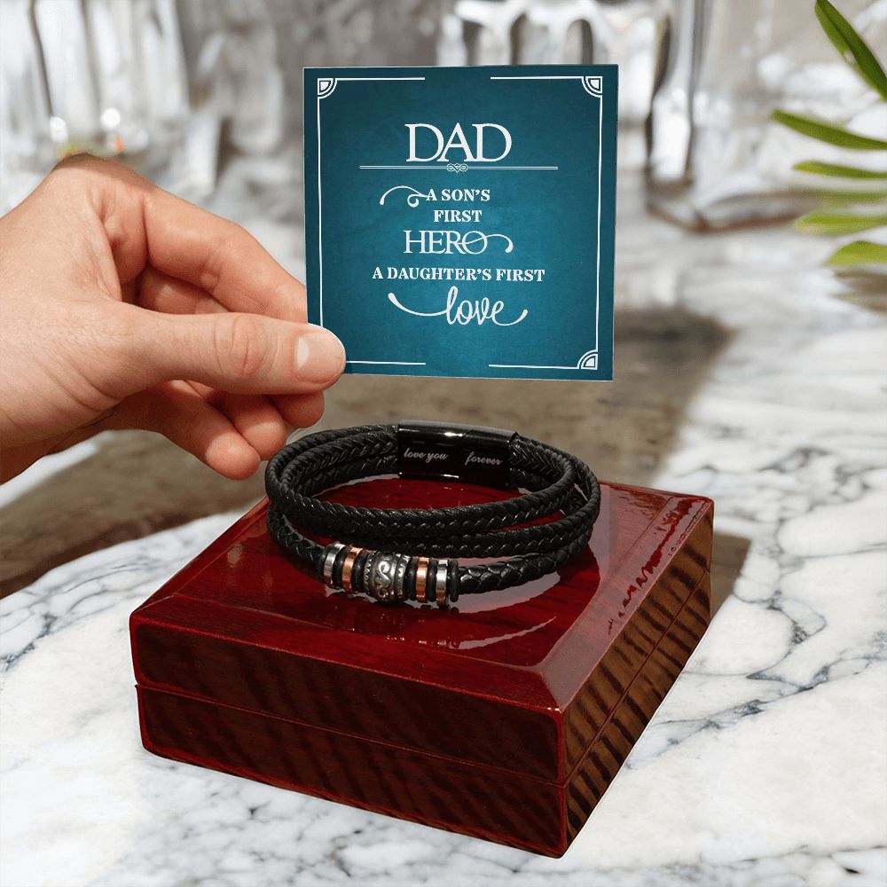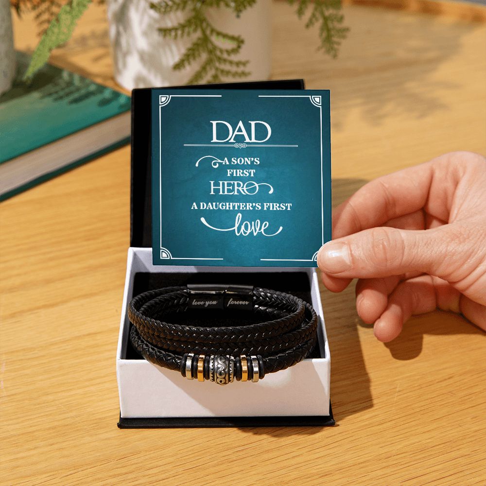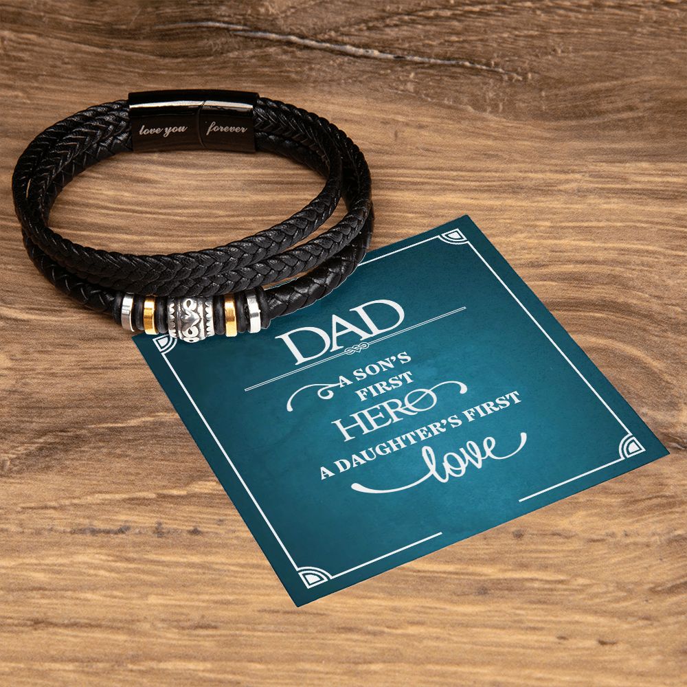 A SON'S FIRST HERO A DAUGHTER'S FIRST LOVE, LOVE YOU FOREVER BRACELET WITH MESSAGE CARD, FATHER'S DAY AND BIRTHDAY GIFT FOR FATHER'S