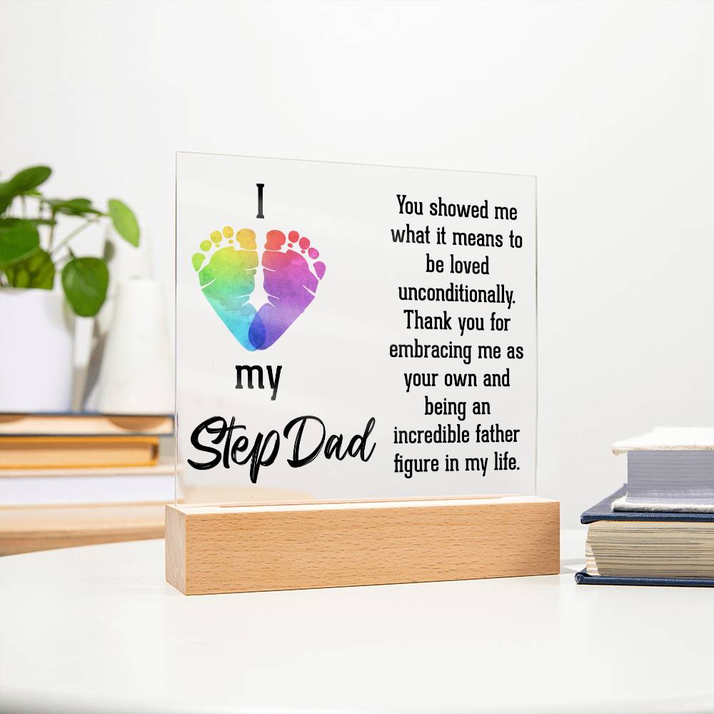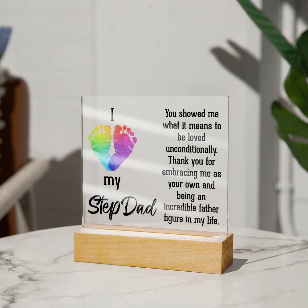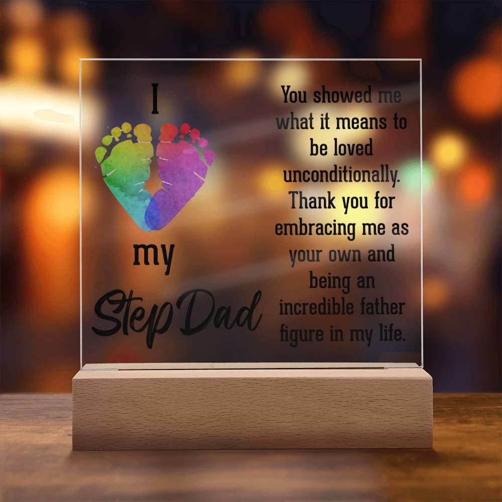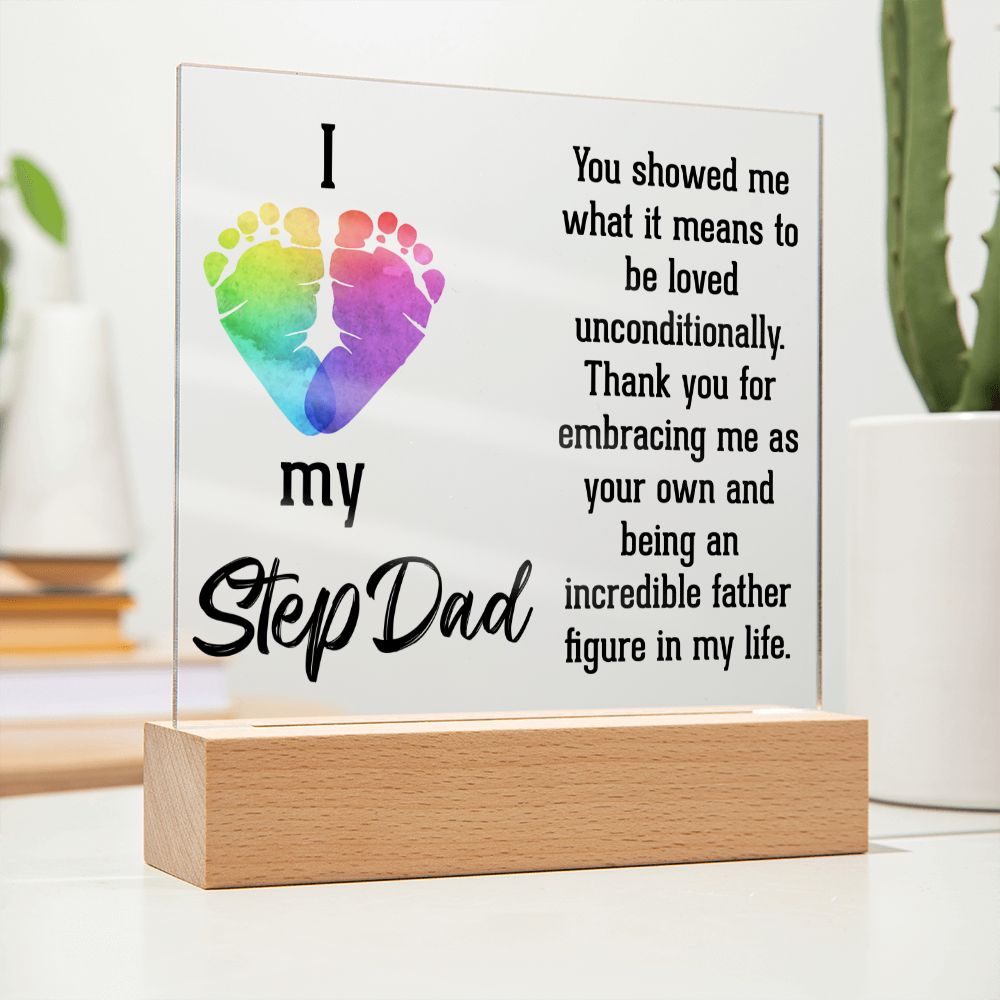ACRYLIC PLAQUE WITH WOODEN LED BASE, GIFT FOR DAD, FATHERS DAY GIFT, DESK DECOR, DAD GIFT FROM DAUGHTER/SON
