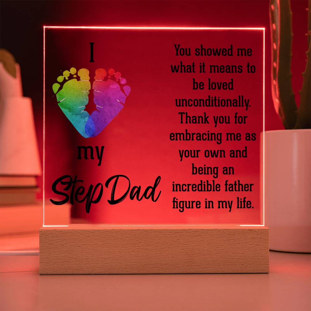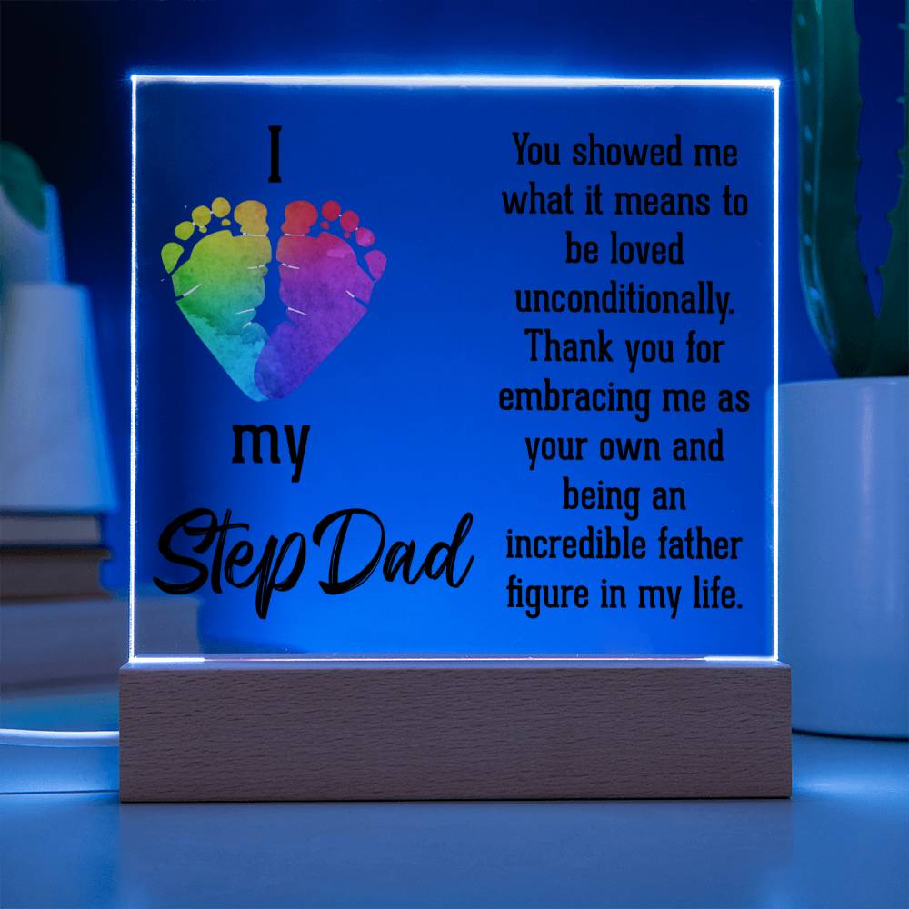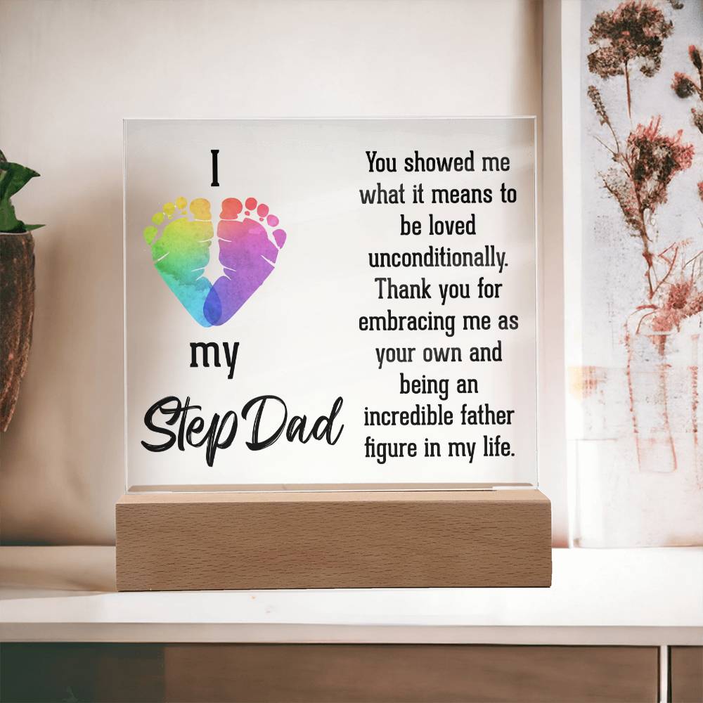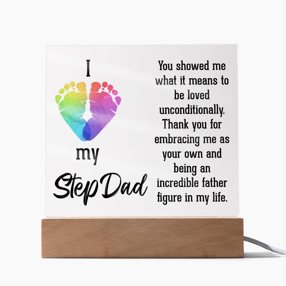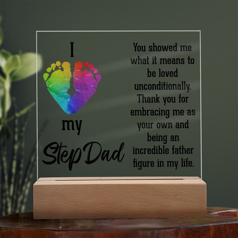 ACRYLIC PLAQUE WITH WOODEN LED BASE, GIFT FOR DAD, FATHERS DAY GIFT, DESK DECOR, DAD GIFT FROM DAUGHTER/SON