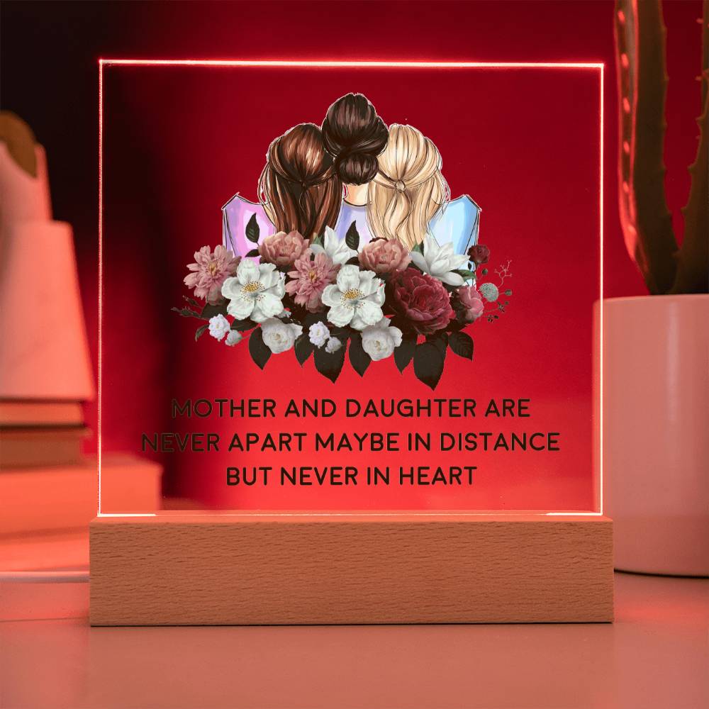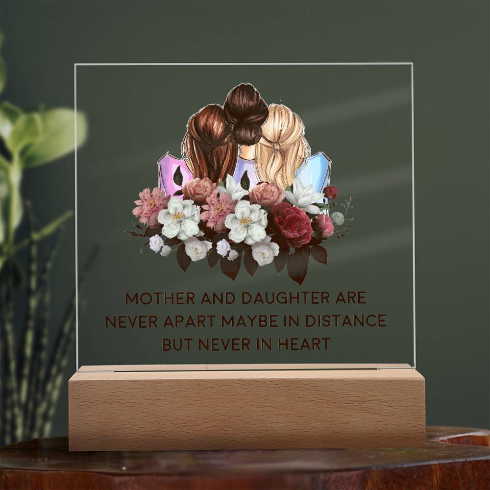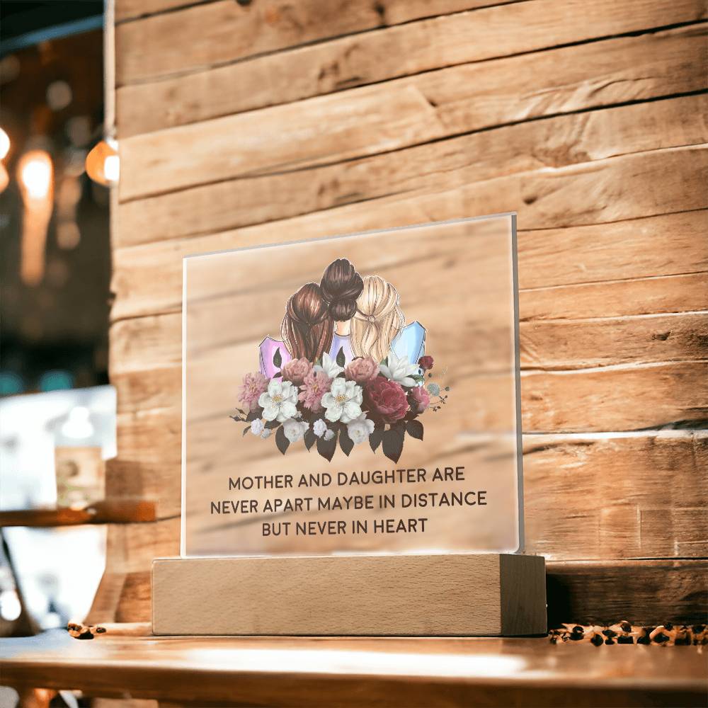 ACRYLIC PLAQUE WITH WOODEN LED BASE, MOM AND DAUGHTER GIFT, DESK DECOR, MOM GIFT, MOTHERS AND DAUGHTERS DAY GIFT, BIRTHDAY GIFT