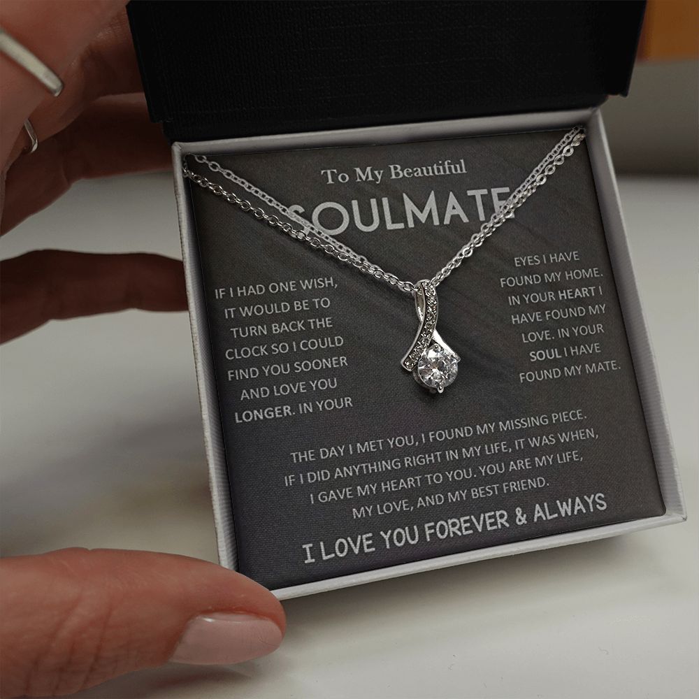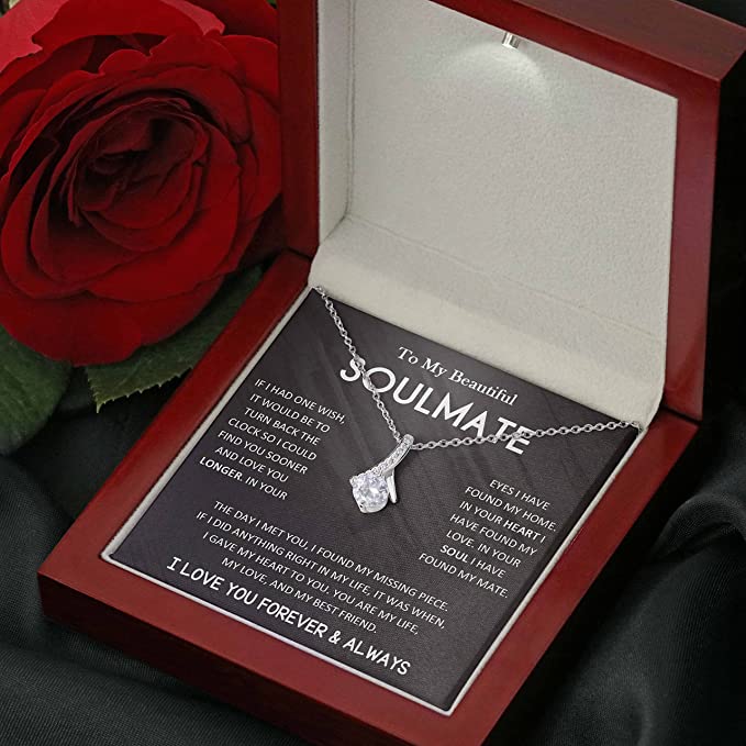 Alluring Beauty Necklace To My Beautiful Soulmate , Best Gift For Birthday, Anniversary, Romantic Christmas Gift For Wife, Soulmate Jewelry, Gift For Her, Sentimental Message Card, Wedding Gift For Her, Necklace For Her