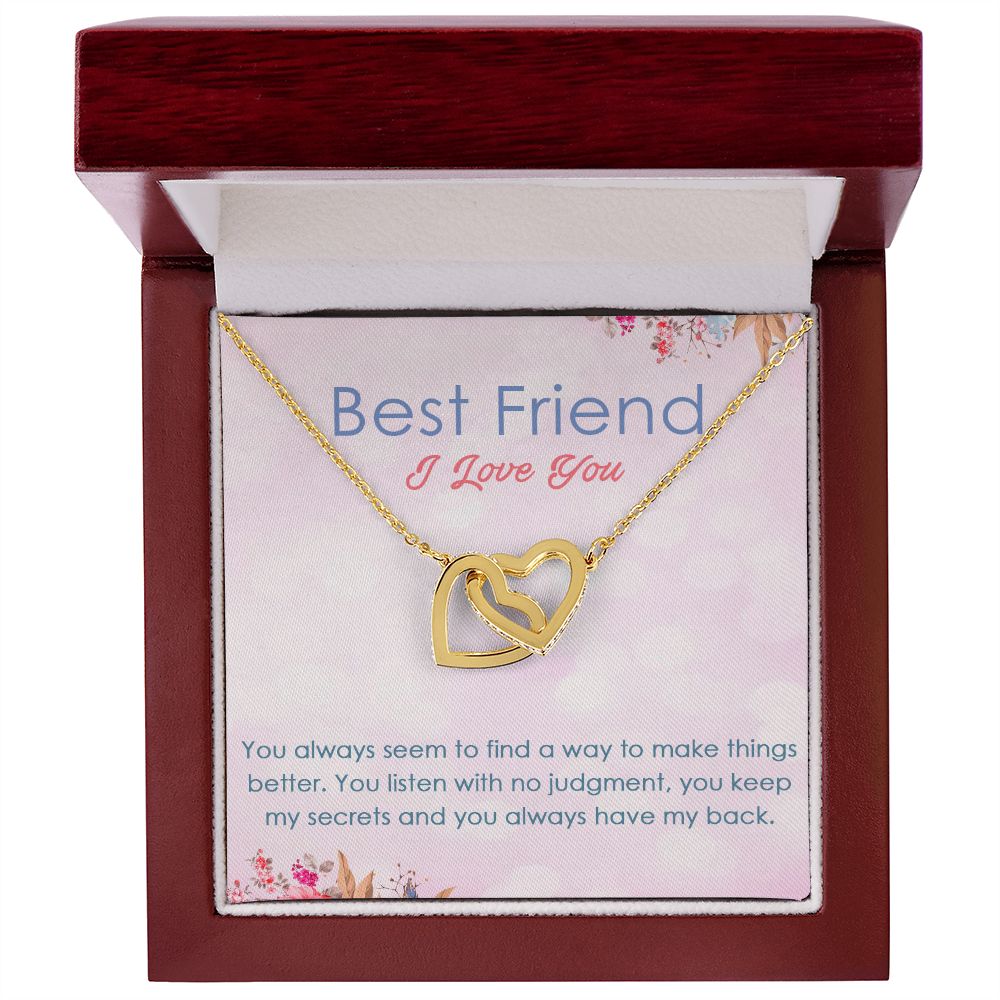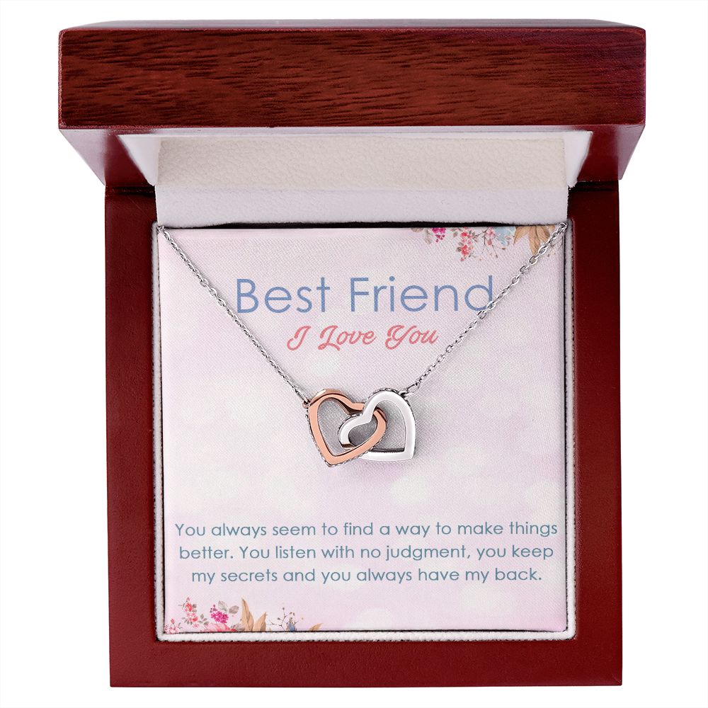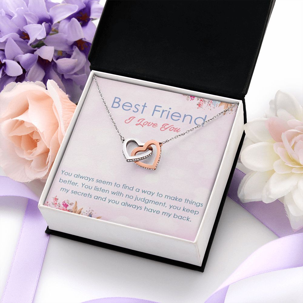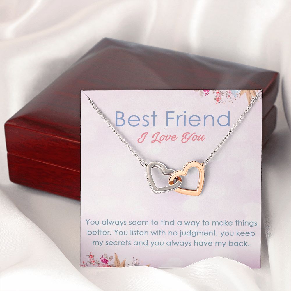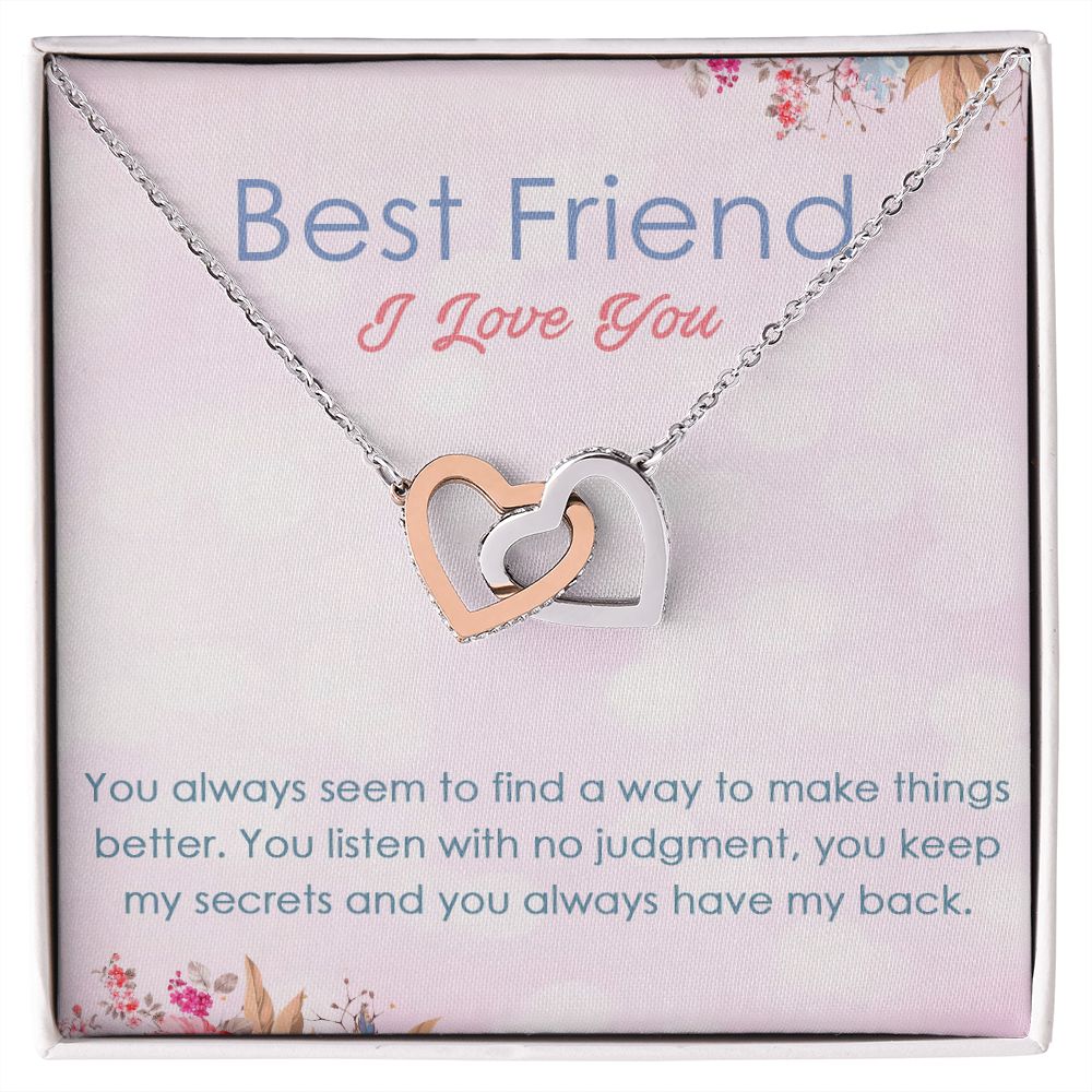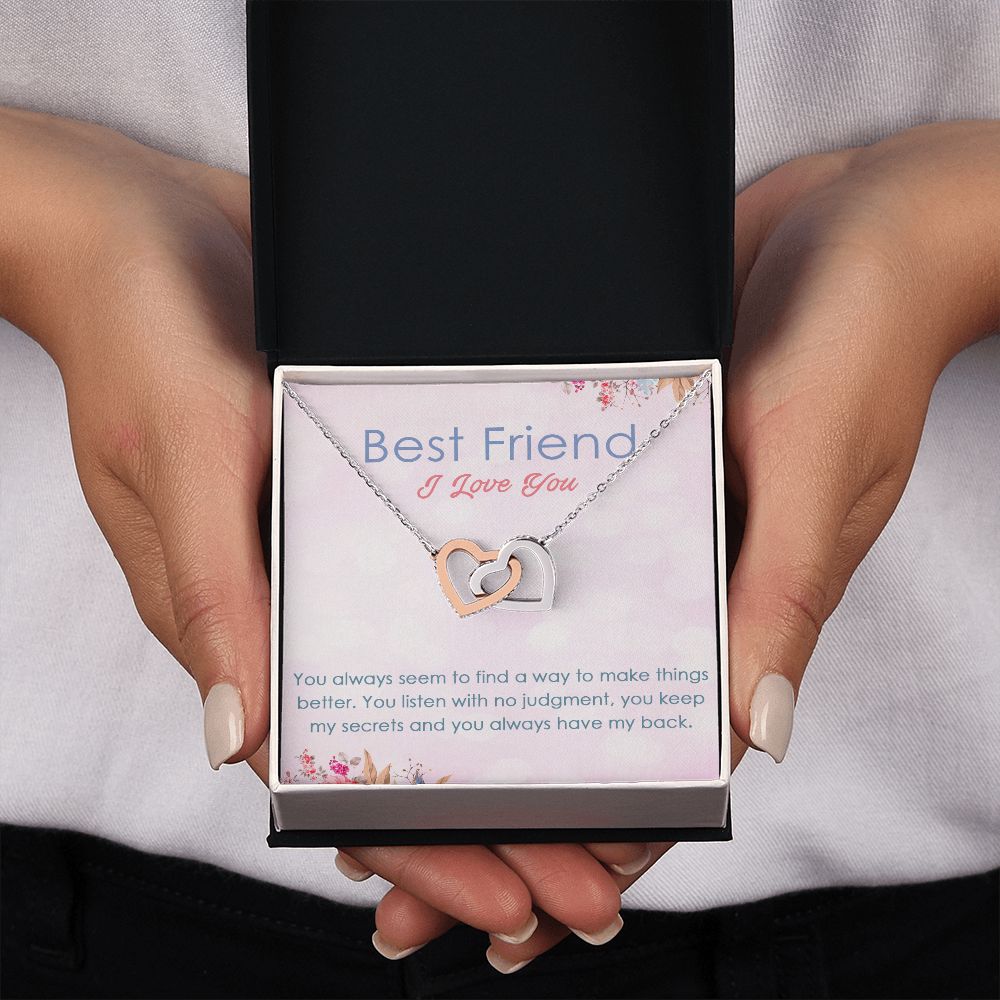 BEST FRIEND I LOVE YOU, INTERLOCKING HEART NECKLACE WITH MESSAGE CARD, FOR SISTERS, FRIENDS, BFF, BIRTHDAY, FRIENDSHIP DAY GIFT FOR HER