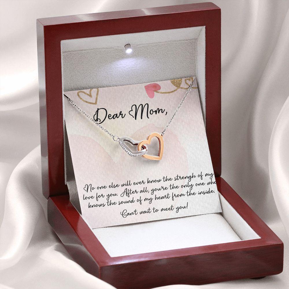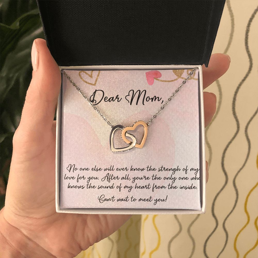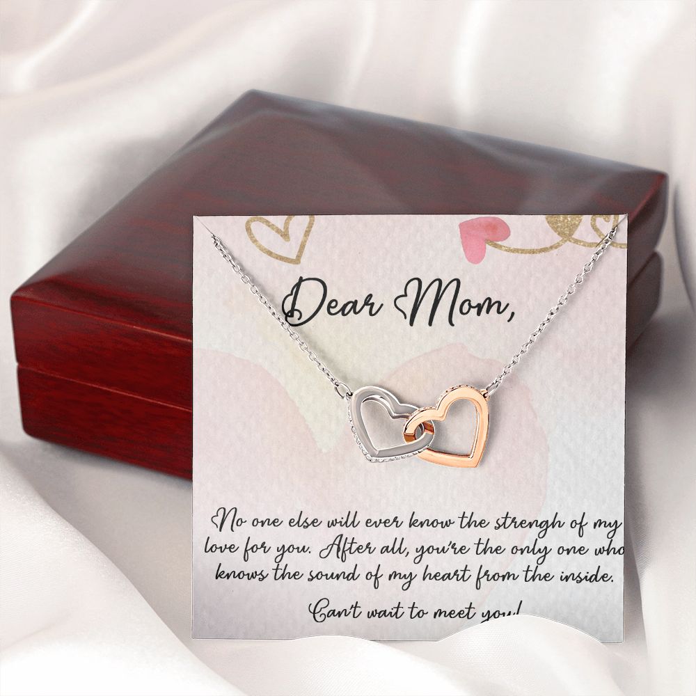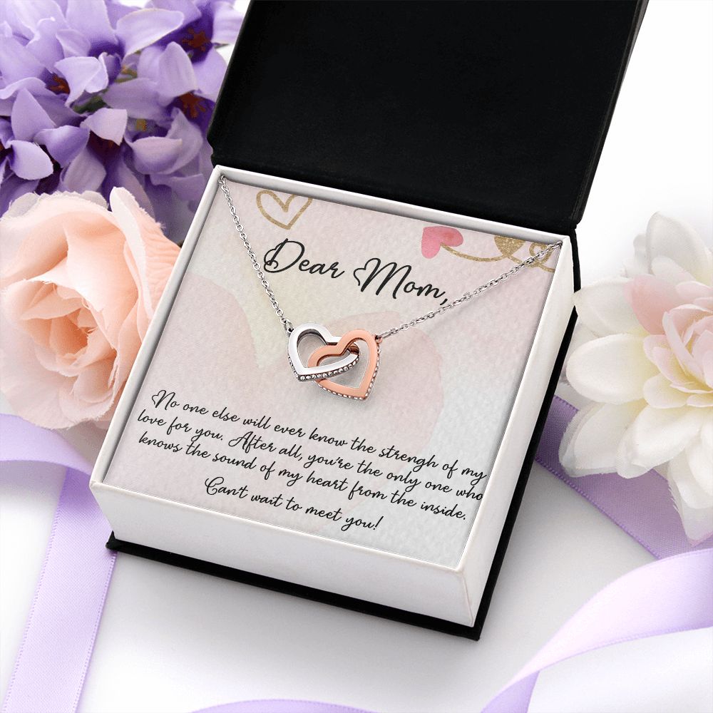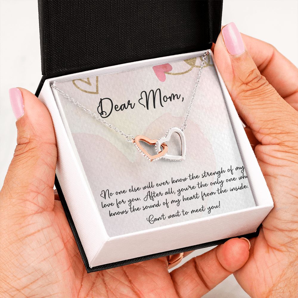DEAR MOM, INTERLOCKING HEART NECKLACE FOR MOM TO BE, NECKLACE WITH MESSAGE CARD, BIRTHDAY, MOTHER'S DAY GIFT FOR HER