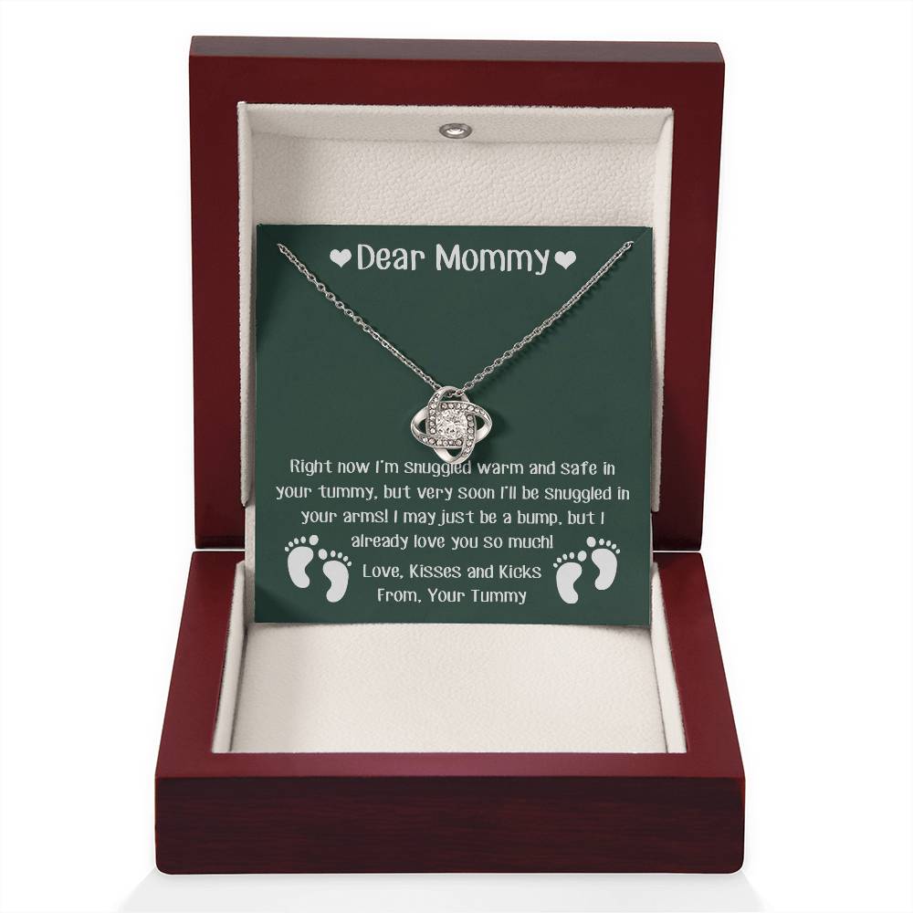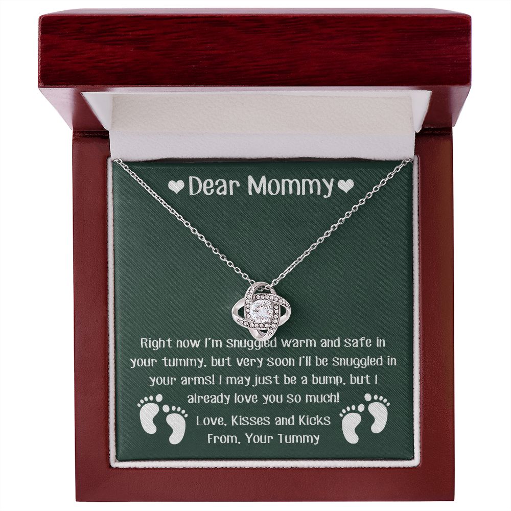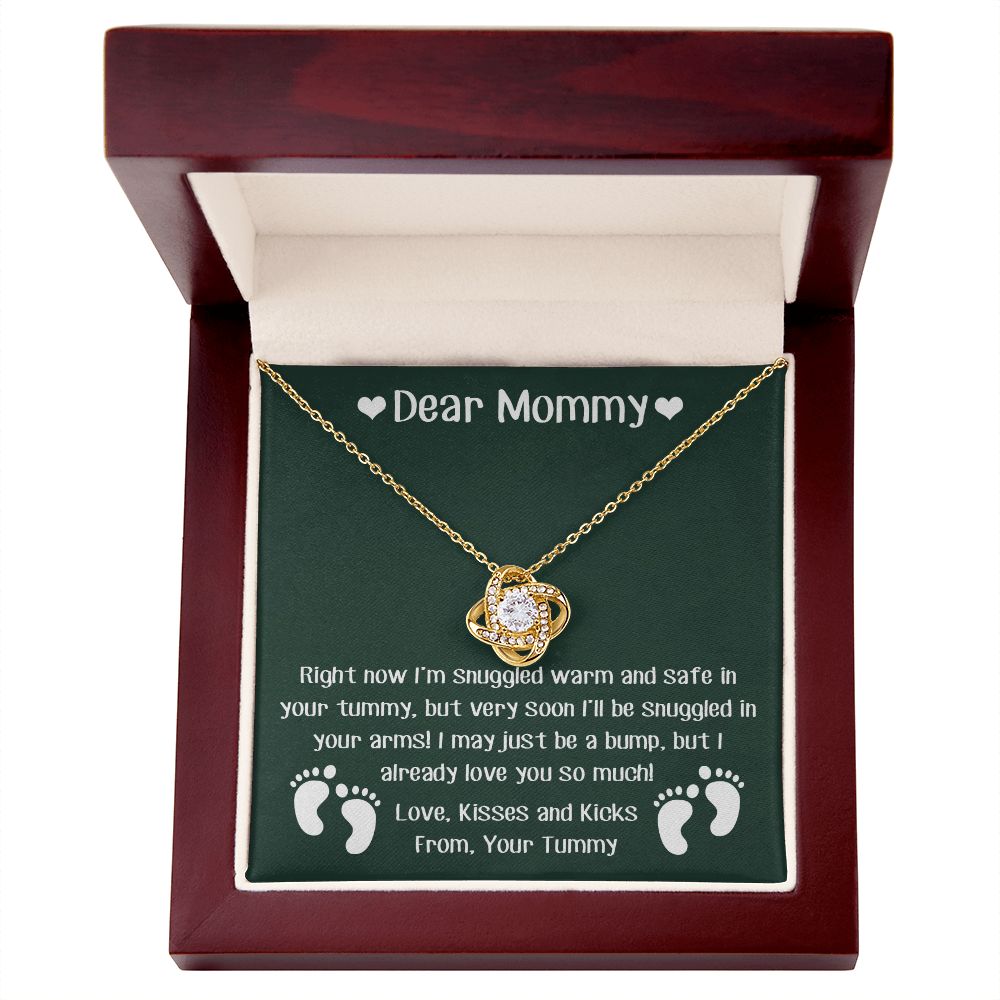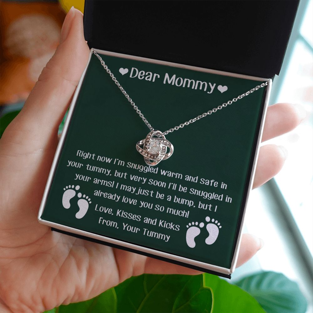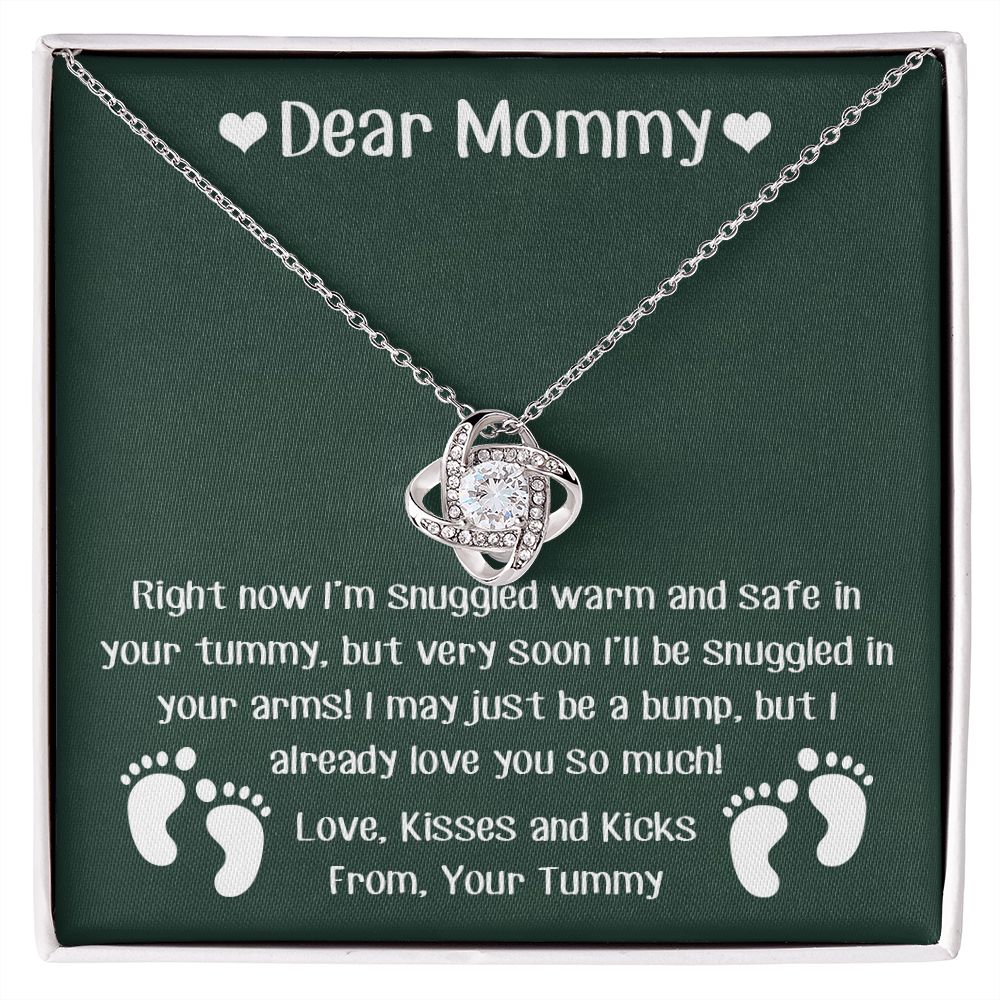 DEAR MOMMY, LOVE KNOT NECKLACE FOR MOMMY TO BE, GIFT FOR NEW MOM, BIRTHDAY, MOTHER'S DAY GIFT FOR HER, NECKLACE WITH MESSAGE CARD