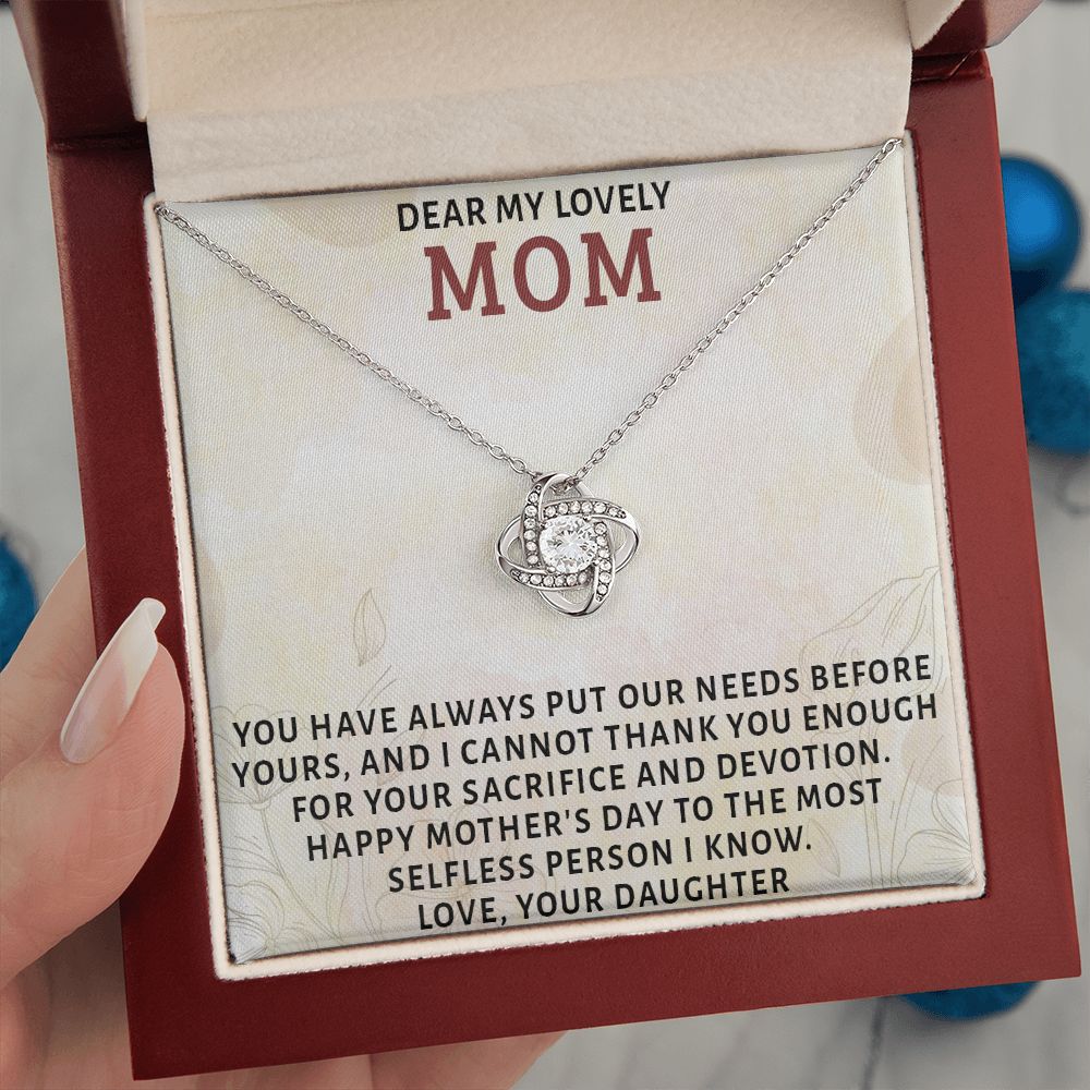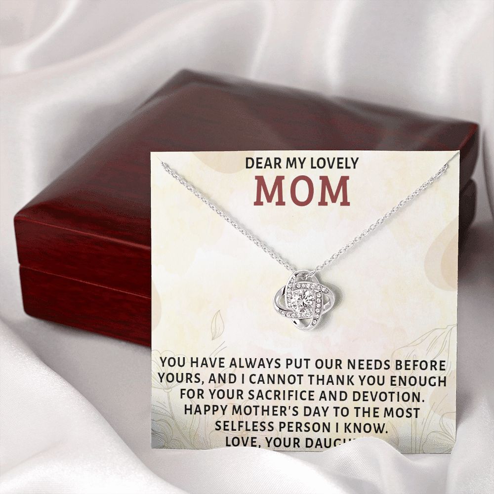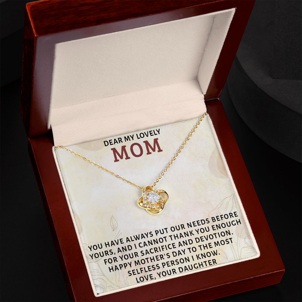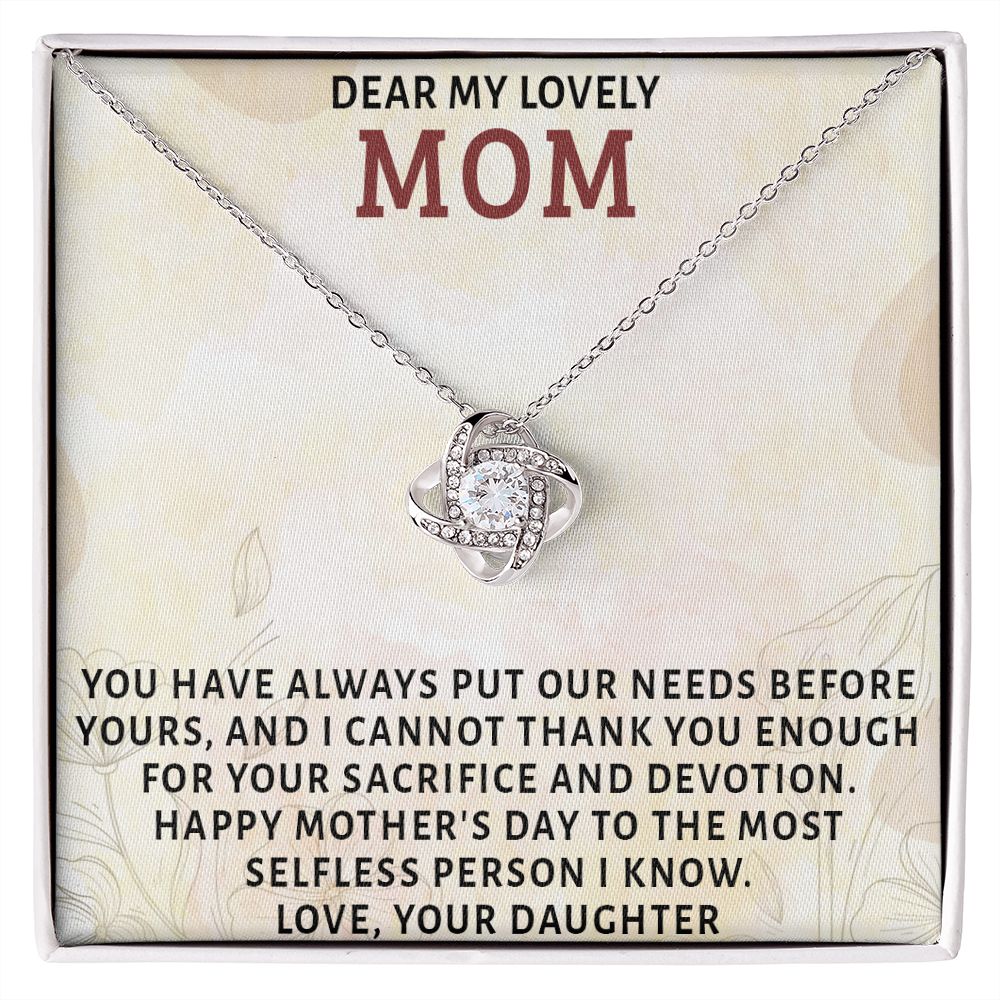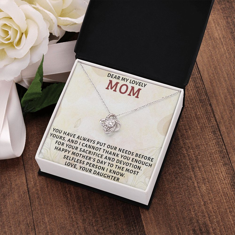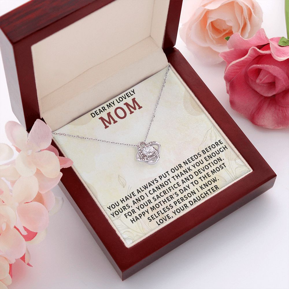 DEAR MY LOVELY MOM, LOVE KNOT NECKLACE FOR MOM, NECKLACE WITH MESSAGE CARD, MOTHER'S DAY GIFT FOR HER, FROM DAUGHTER