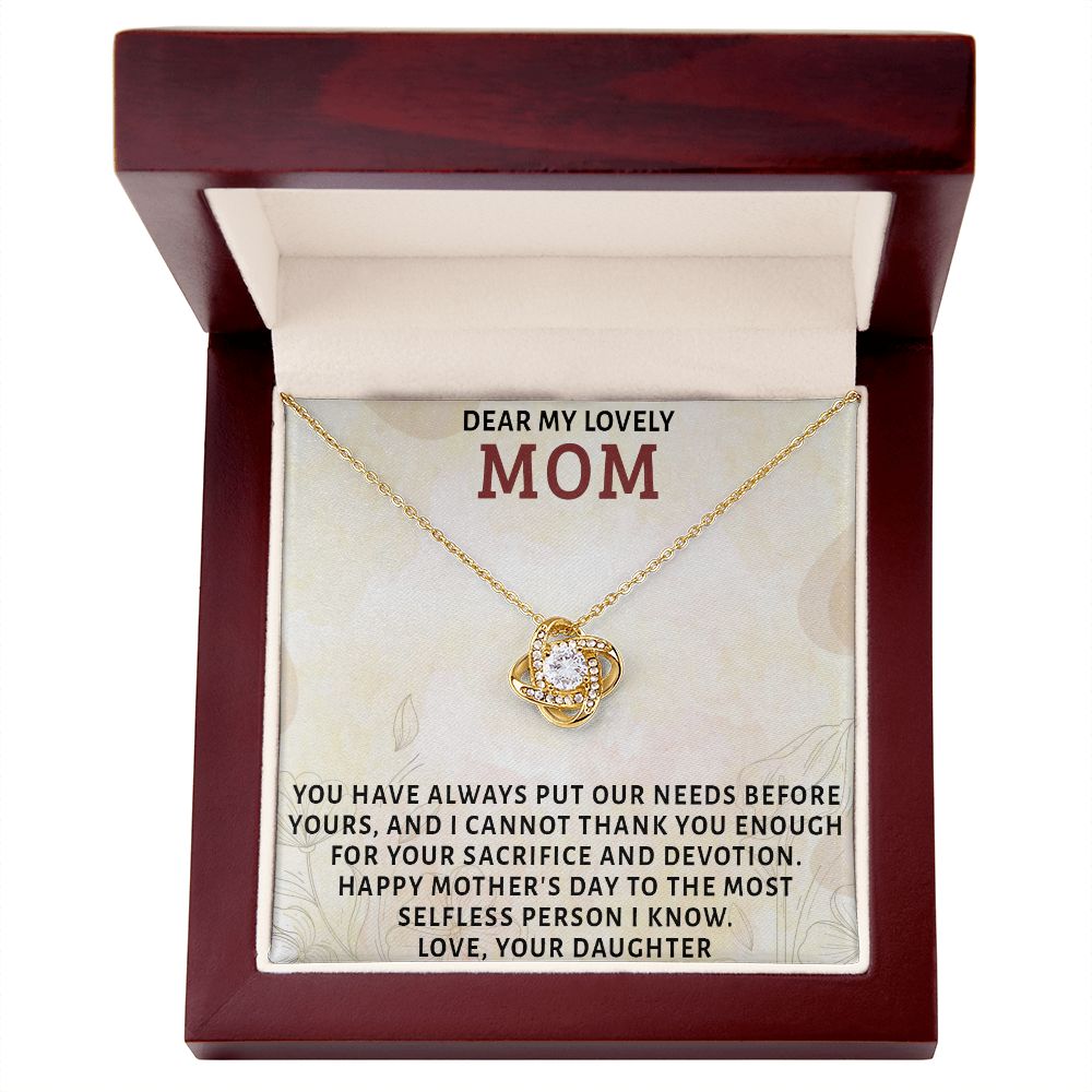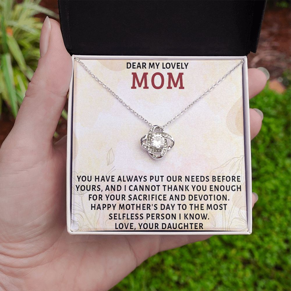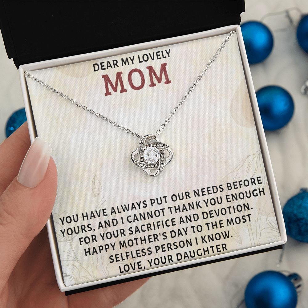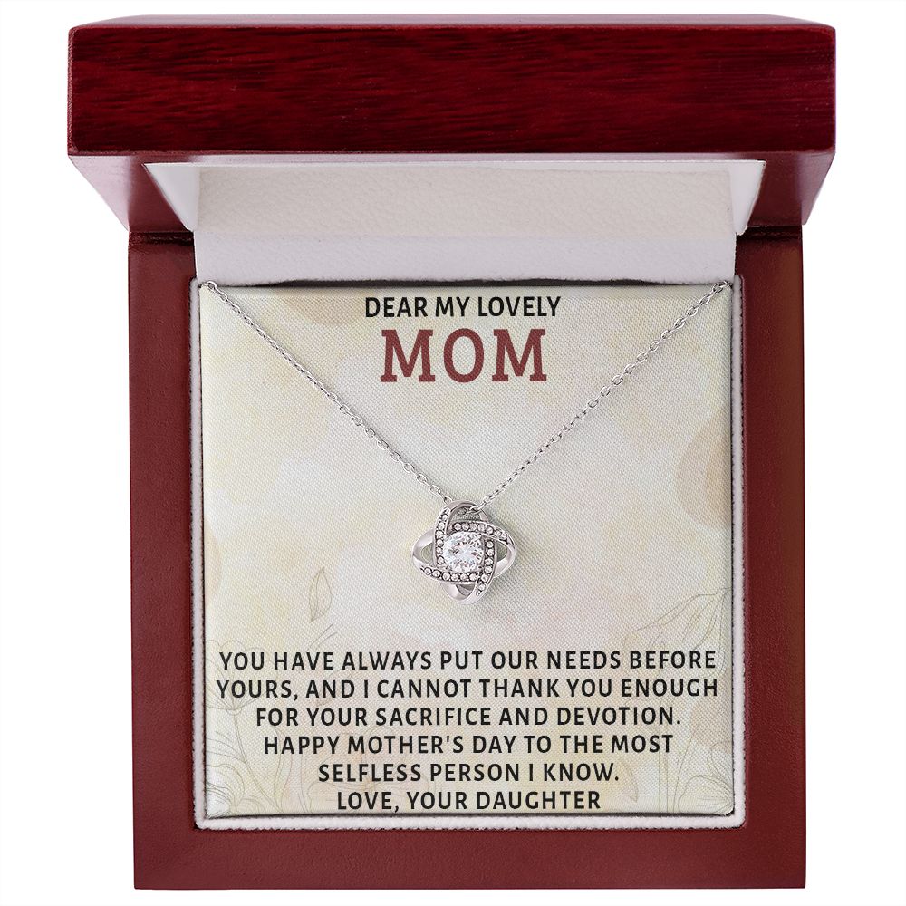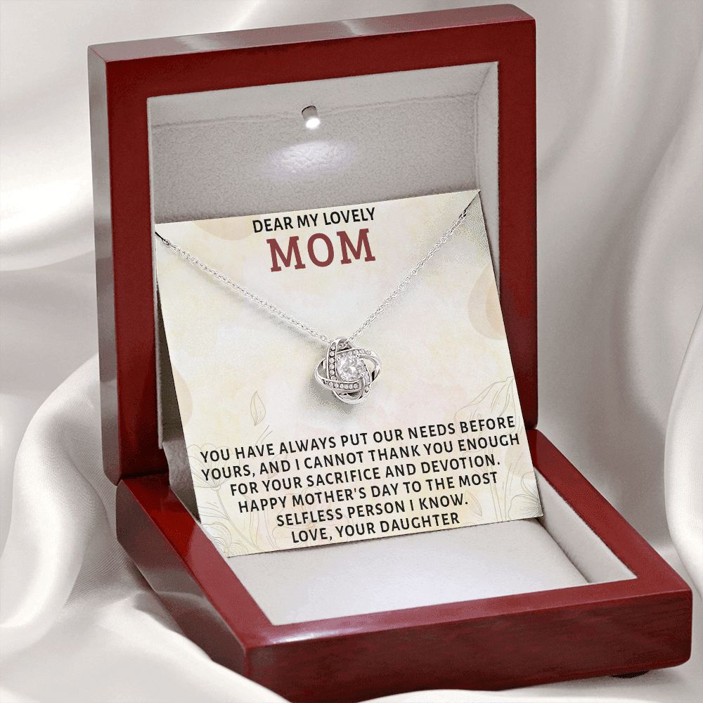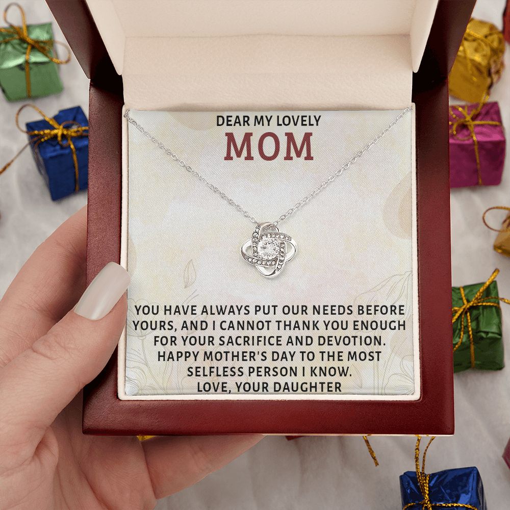 DEAR MY LOVELY MOM, LOVE KNOT NECKLACE FOR MOM, NECKLACE WITH MESSAGE CARD, MOTHER'S DAY GIFT FOR HER, FROM DAUGHTER