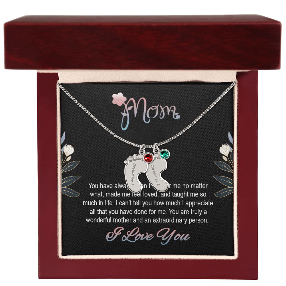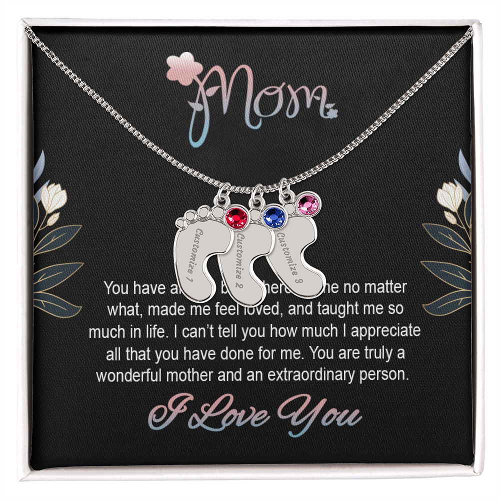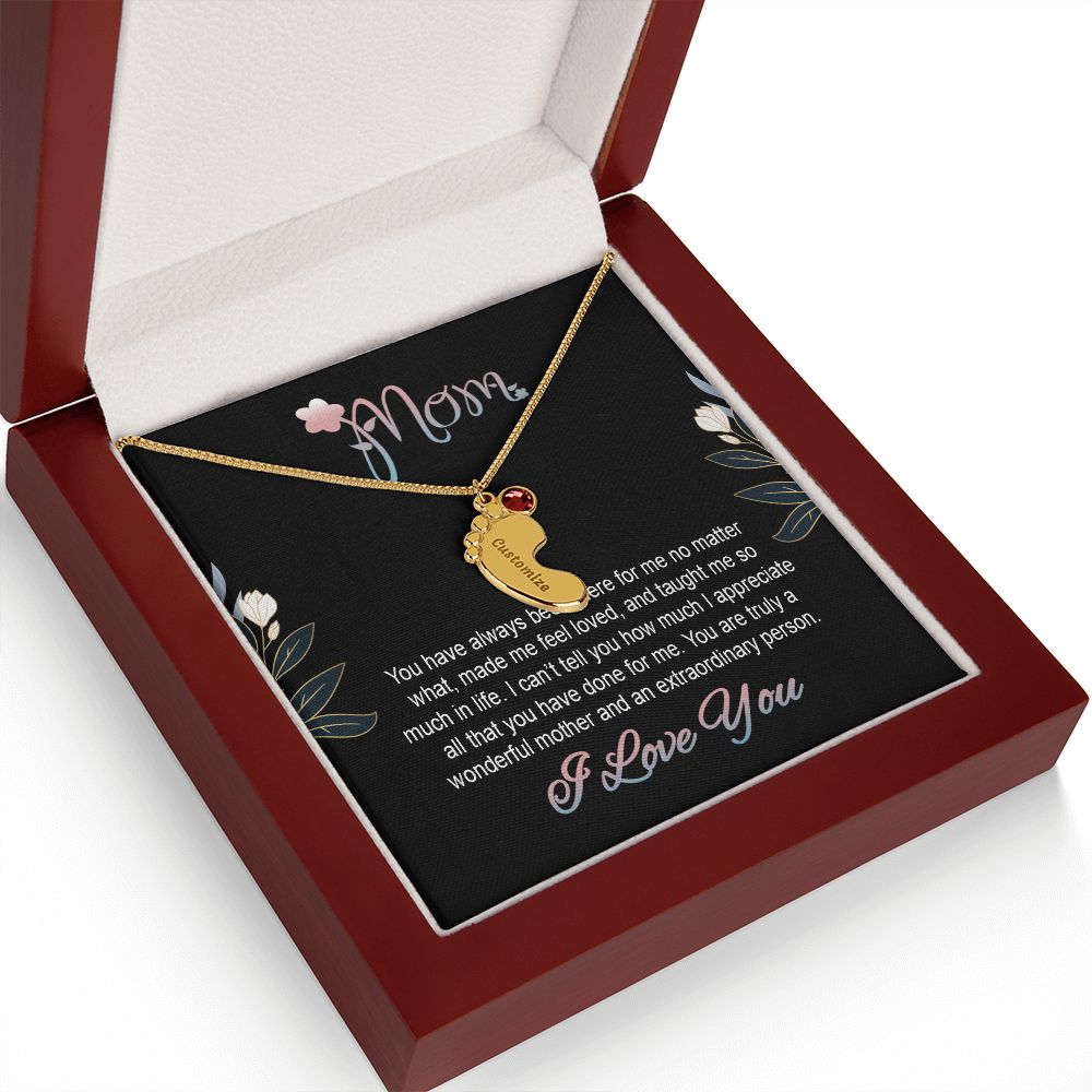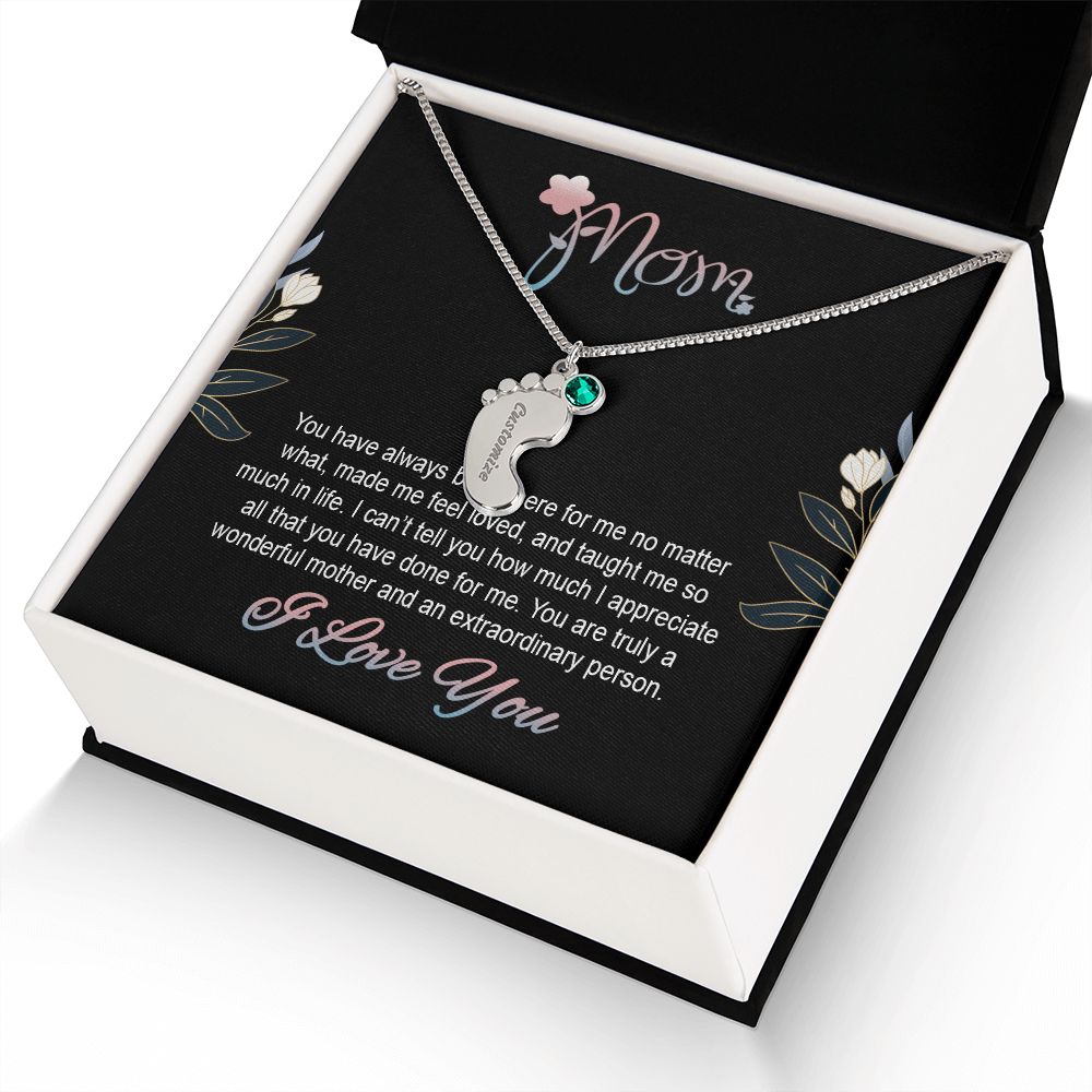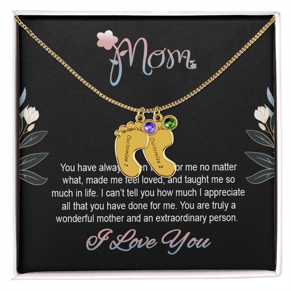 ENGRAVED BABY FEET WITH NAME AND BIRTHSTONE, NECKLACE GIFT FOR MOM WITH KIDS NAME, WITH MESSAGE CARD, BIRTHDAY/ MOTHER'S DAY GIFT FOR MOM FROM SON/DAUGHTER