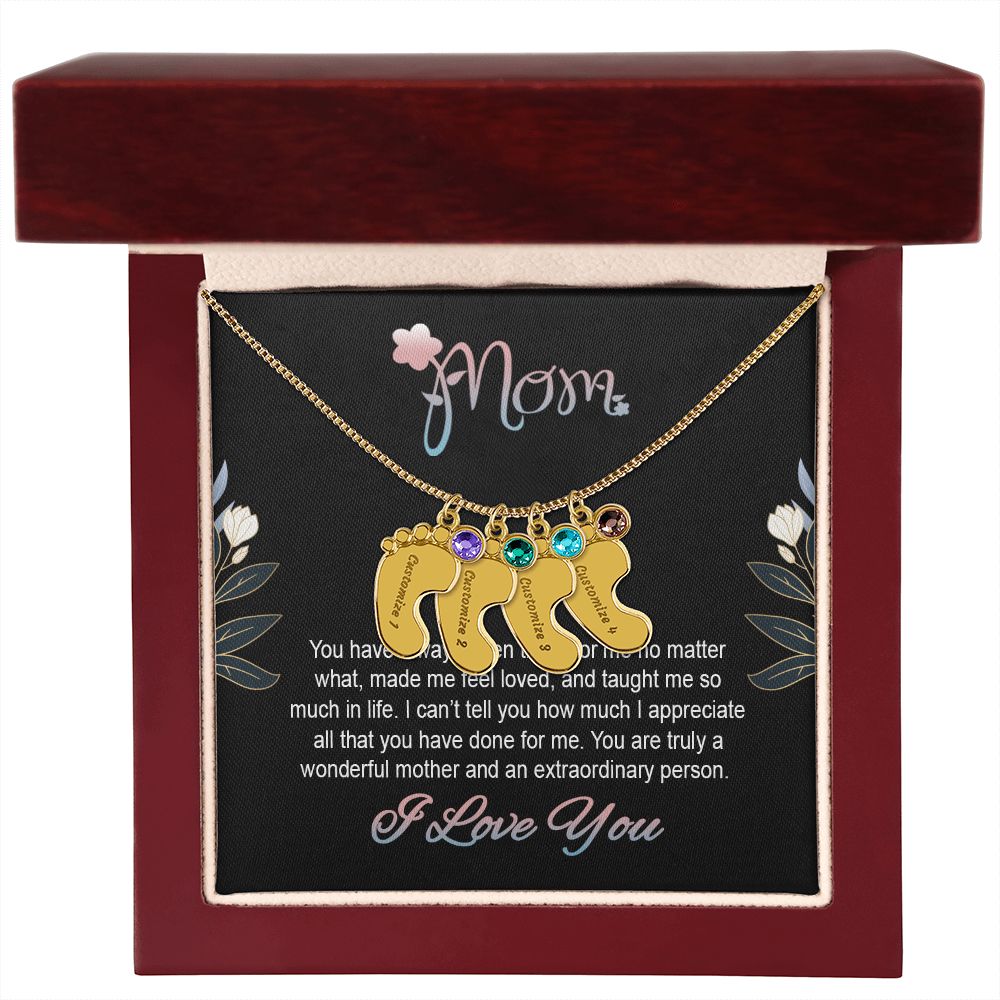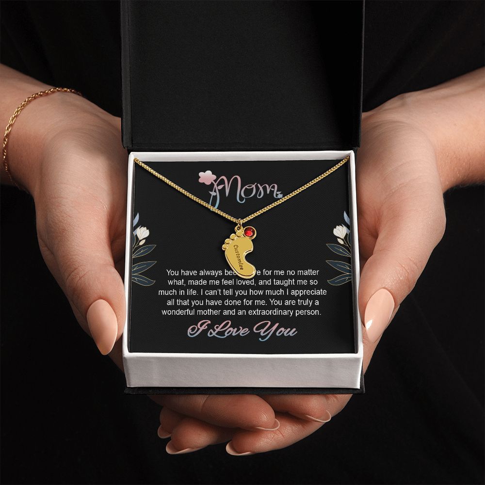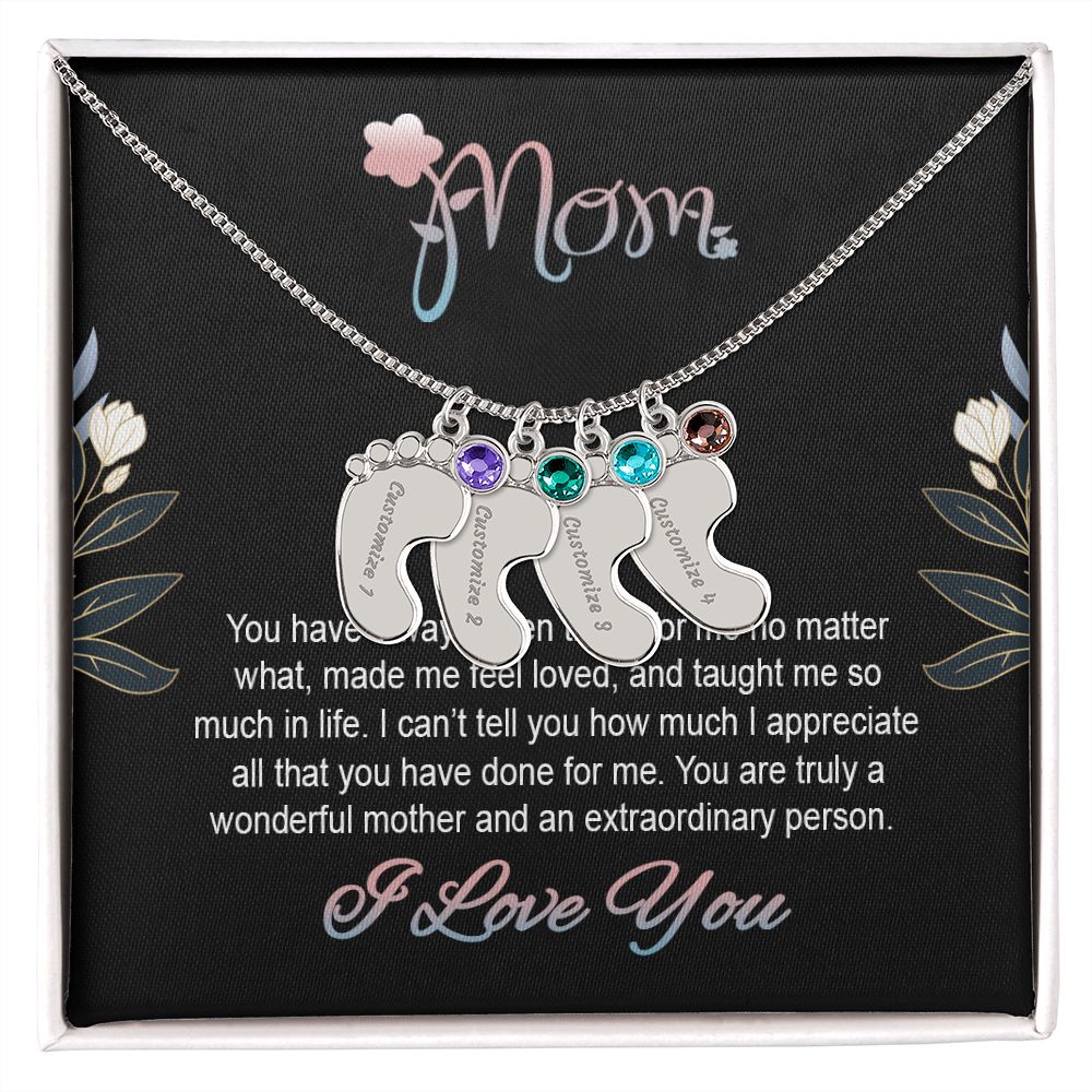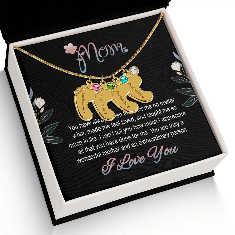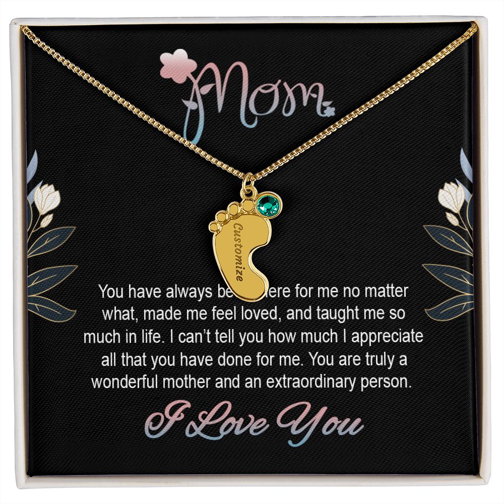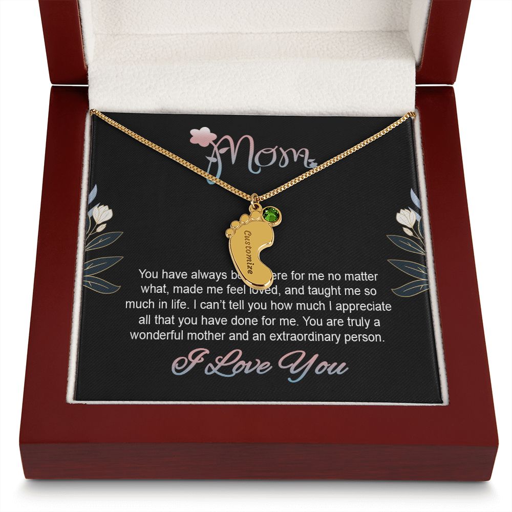 ENGRAVED BABY FEET WITH NAME AND BIRTHSTONE, NECKLACE GIFT FOR MOM WITH KIDS NAME, WITH MESSAGE CARD, BIRTHDAY/ MOTHER'S DAY GIFT FOR MOM FROM SON/DAUGHTER