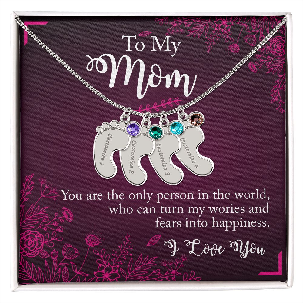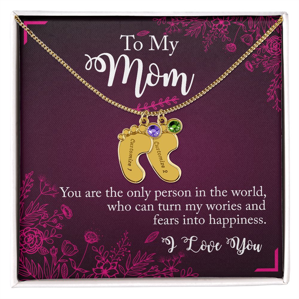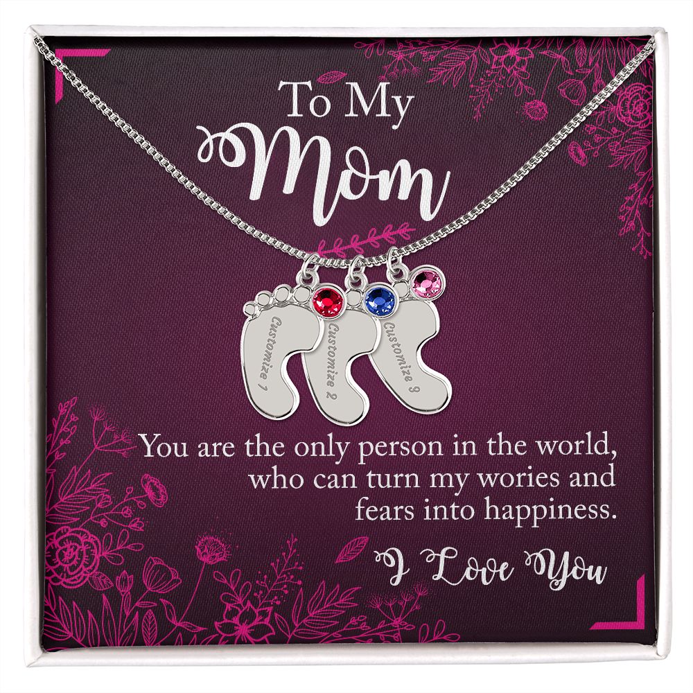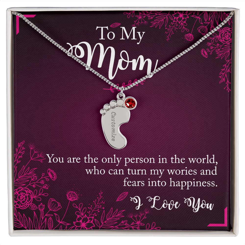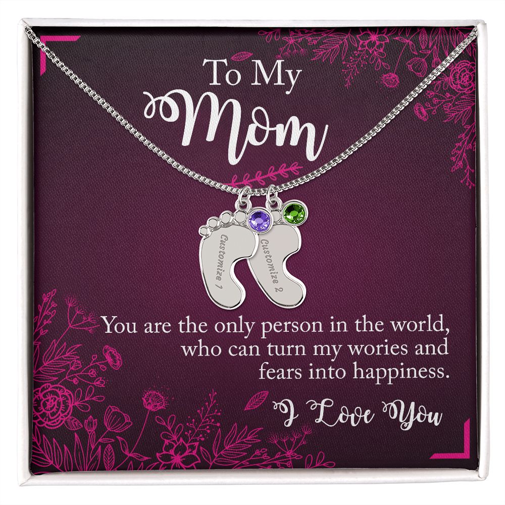 ENGRAVED BABY FEET WITH NAME AND BIRTHSTONE, NECKLACE GIFT FOR MOM WITH KIDS NAME, WITH MESSAGE CARD, BIRTHDAY/MOTHER'S DAY GIFT FOR MOM, FROM SON/DAUGHTER