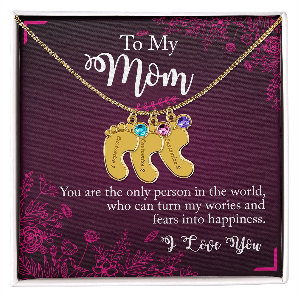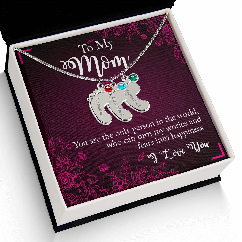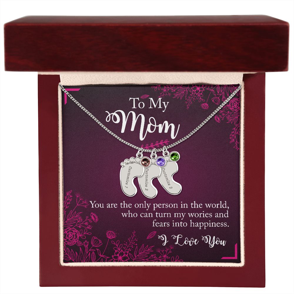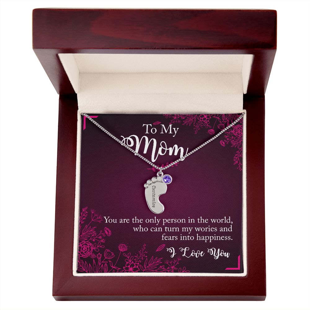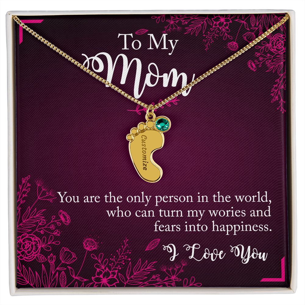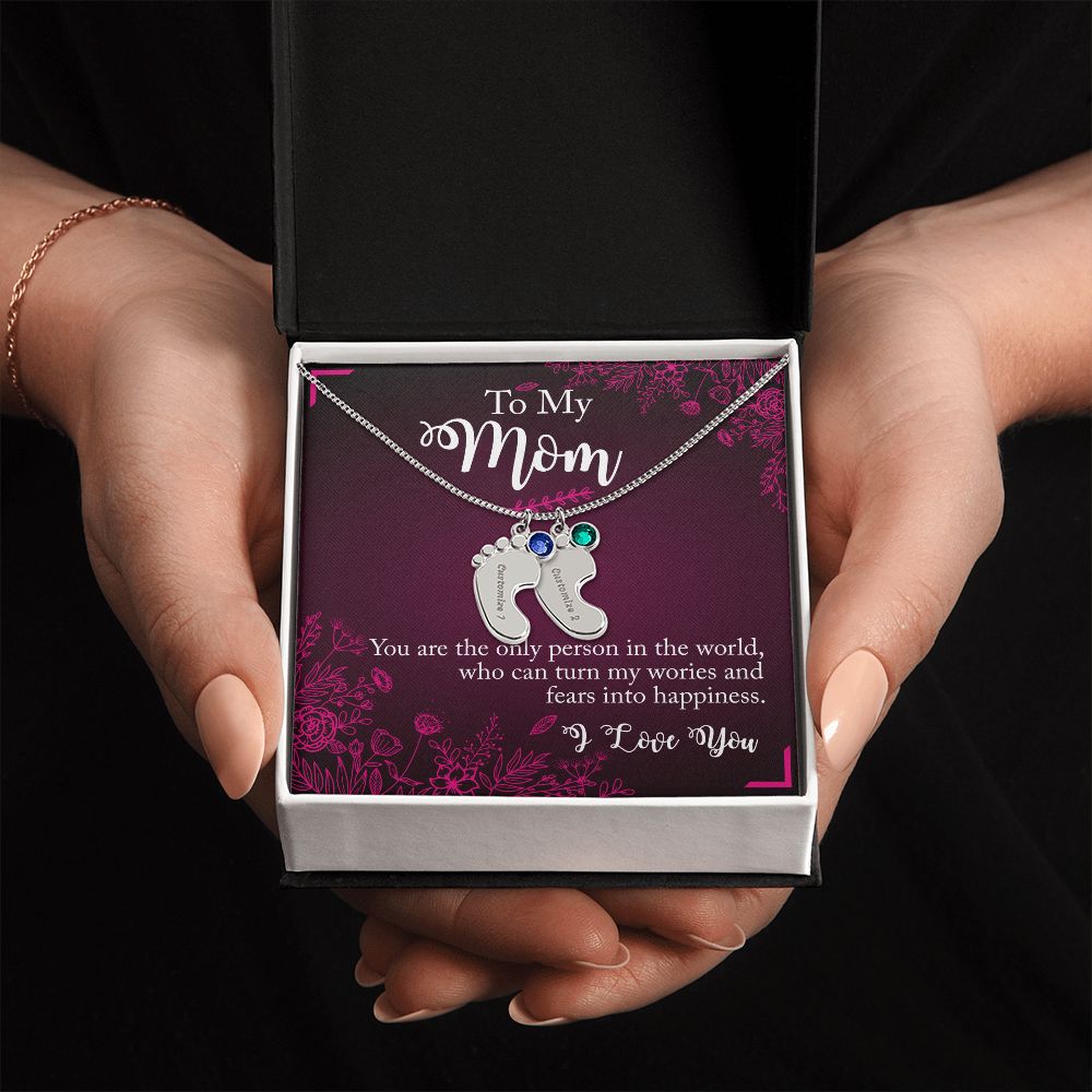 ENGRAVED BABY FEET WITH NAME AND BIRTHSTONE, NECKLACE GIFT FOR MOM WITH KIDS NAME, WITH MESSAGE CARD, BIRTHDAY/MOTHER'S DAY GIFT FOR MOM, FROM SON/DAUGHTER