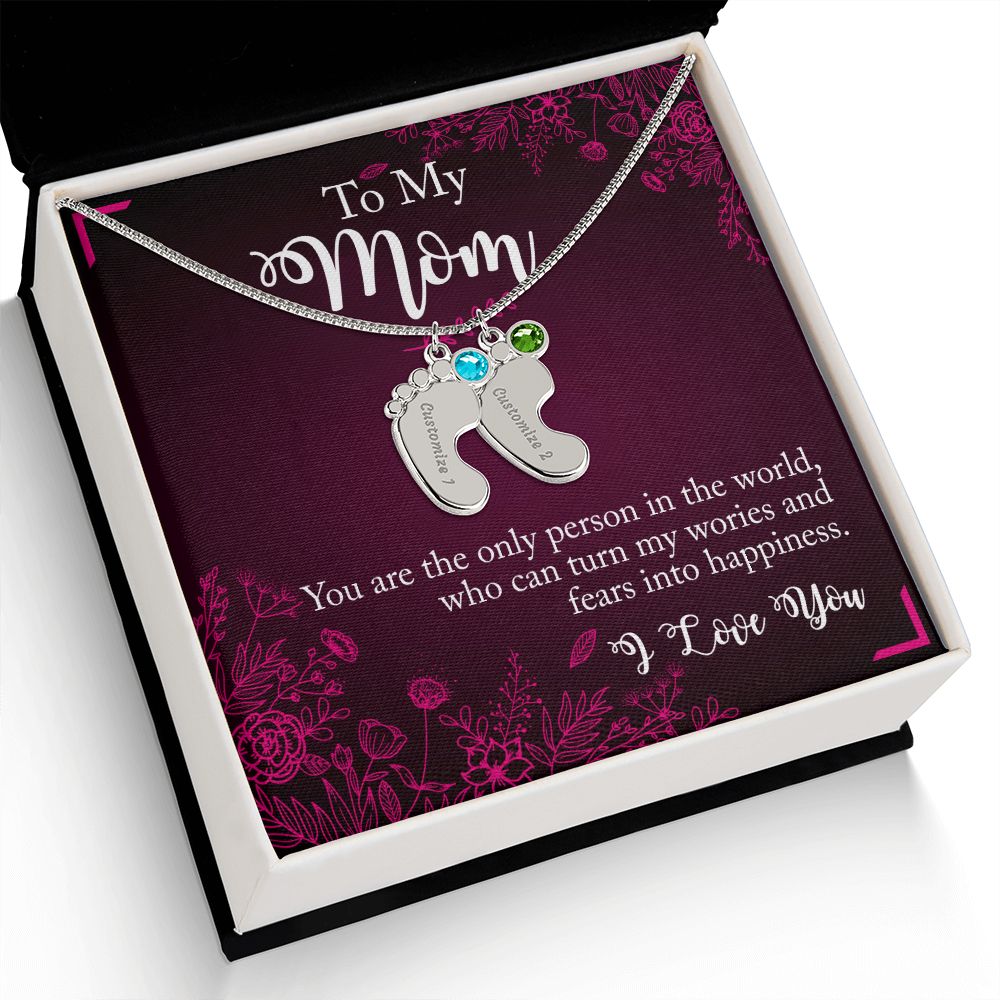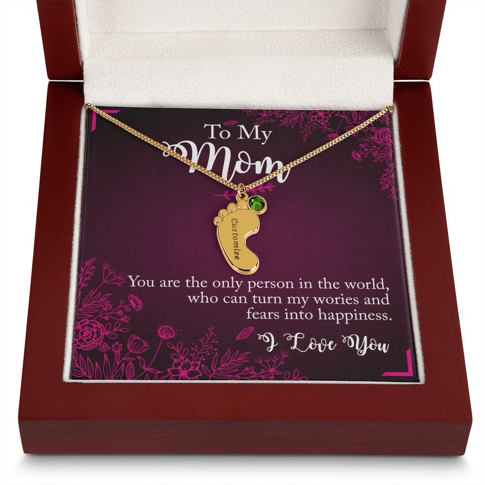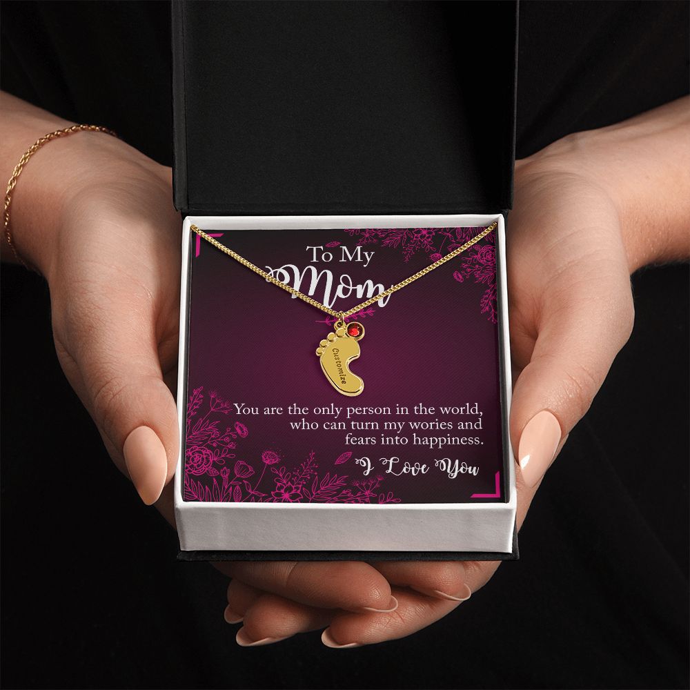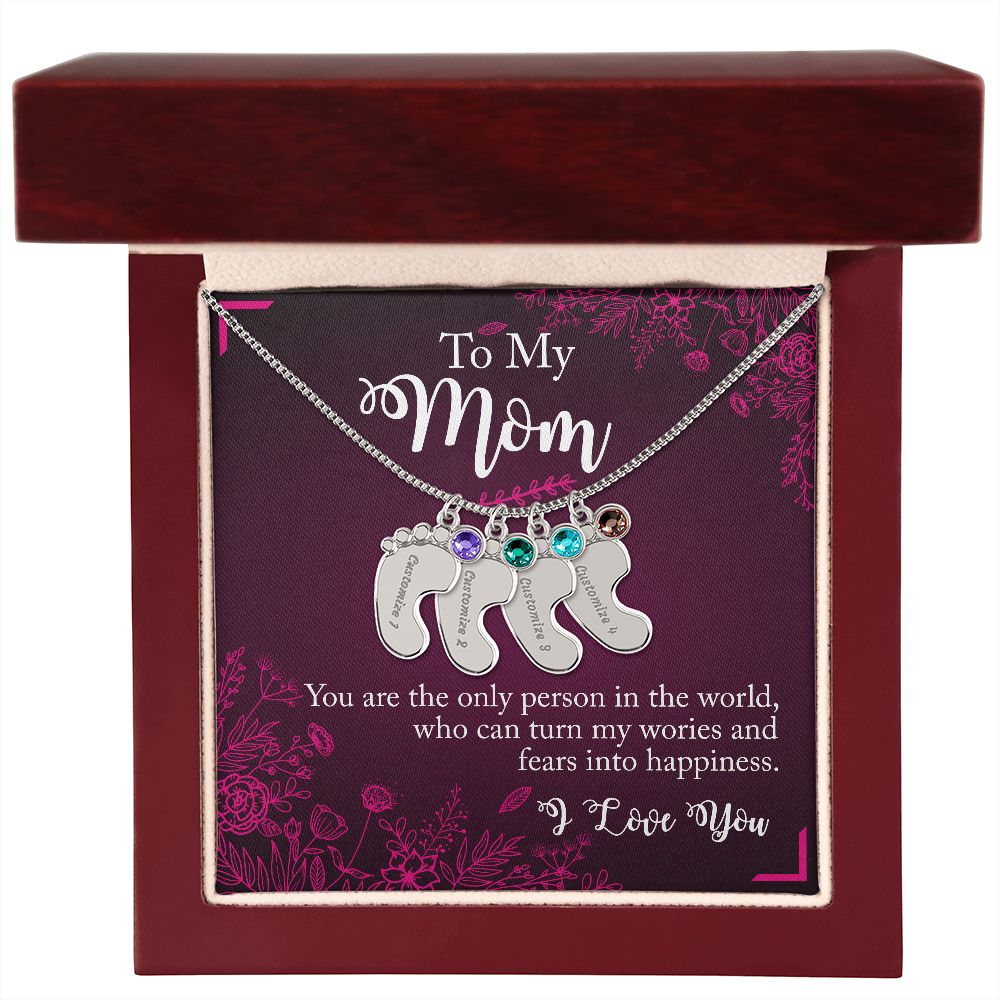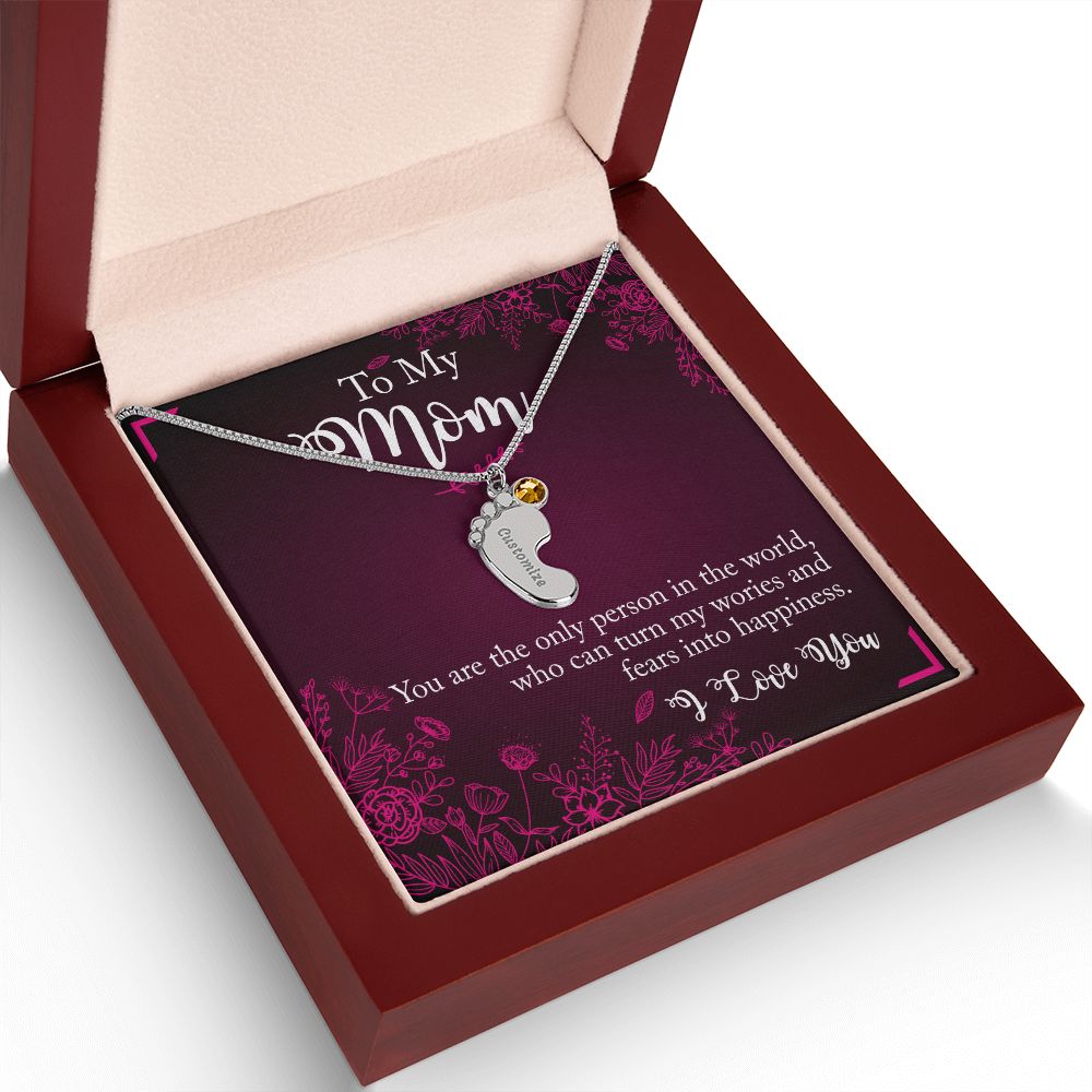 ENGRAVED BABY FEET WITH NAME AND BIRTHSTONE, NECKLACE GIFT FOR MOM WITH KIDS NAME, WITH MESSAGE CARD, BIRTHDAY/MOTHER'S DAY GIFT FOR MOM, FROM SON/DAUGHTER