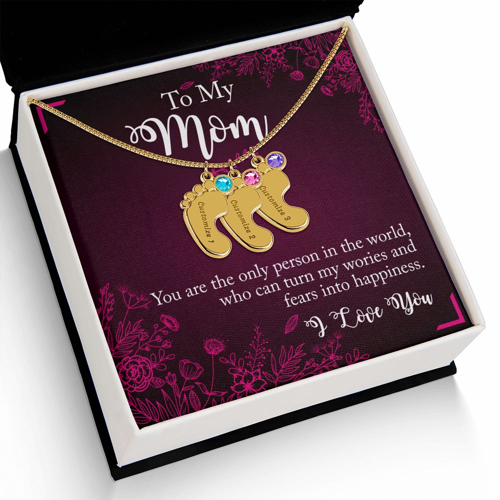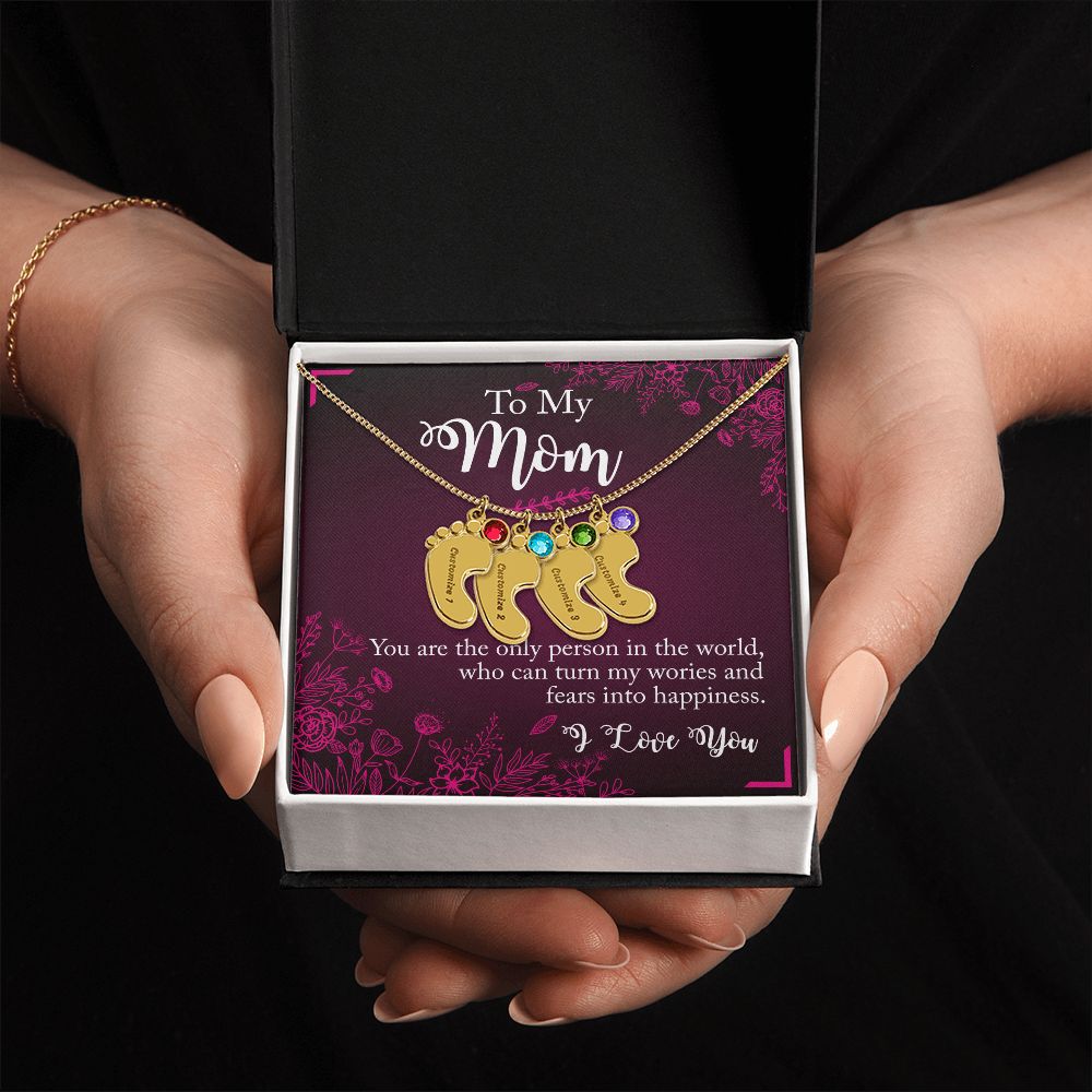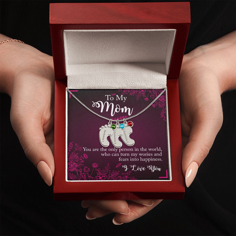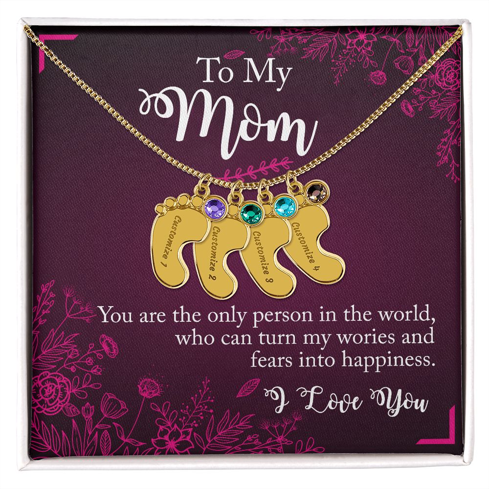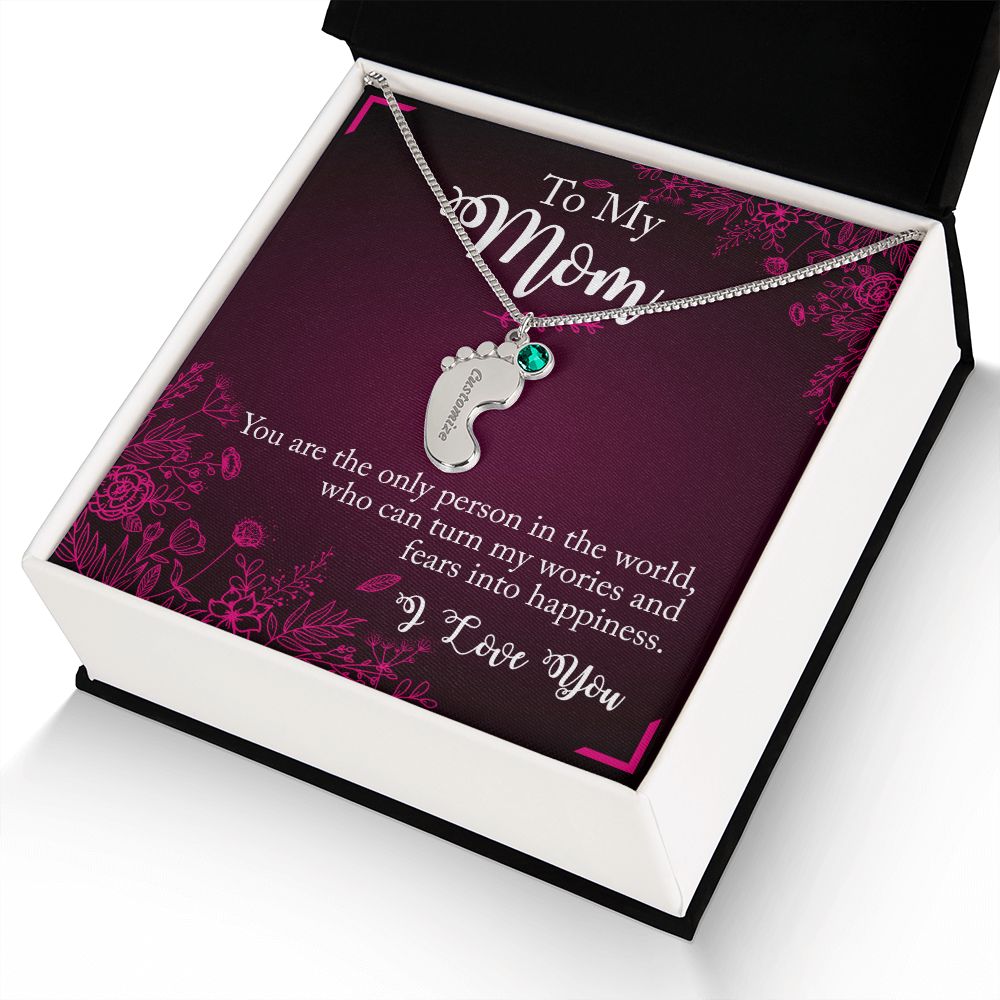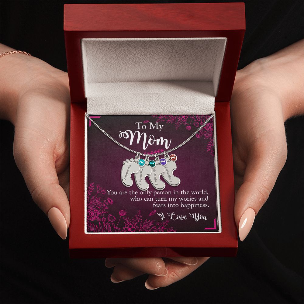 ENGRAVED BABY FEET WITH NAME AND BIRTHSTONE, NECKLACE GIFT FOR MOM WITH KIDS NAME, WITH MESSAGE CARD, BIRTHDAY/MOTHER'S DAY GIFT FOR MOM, FROM SON/DAUGHTER