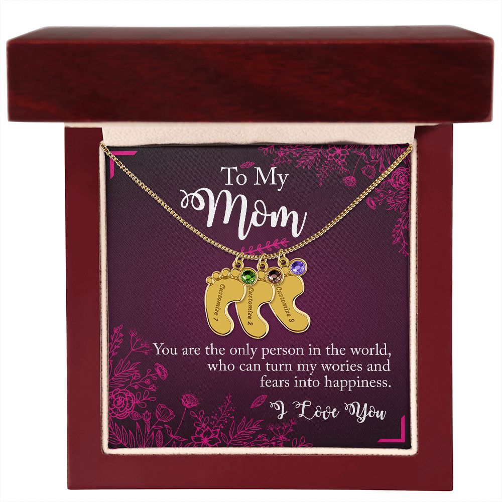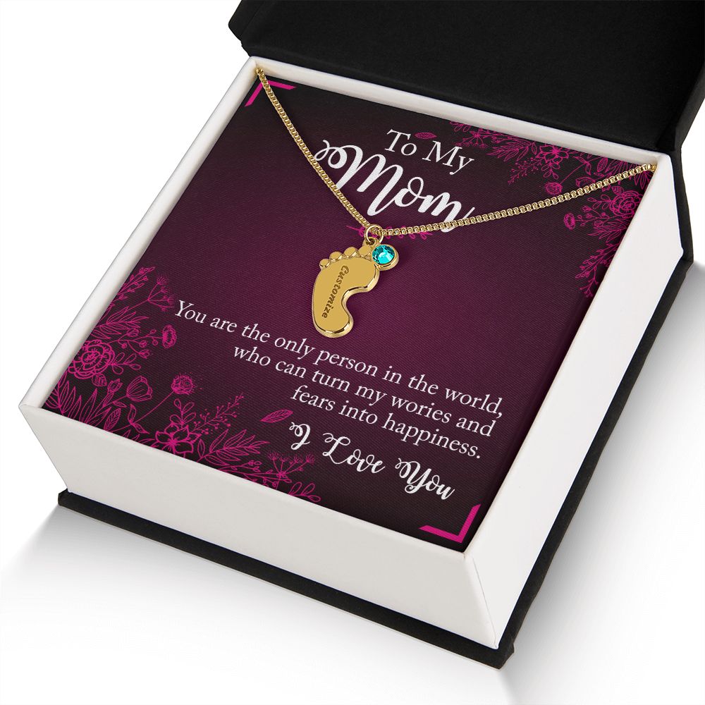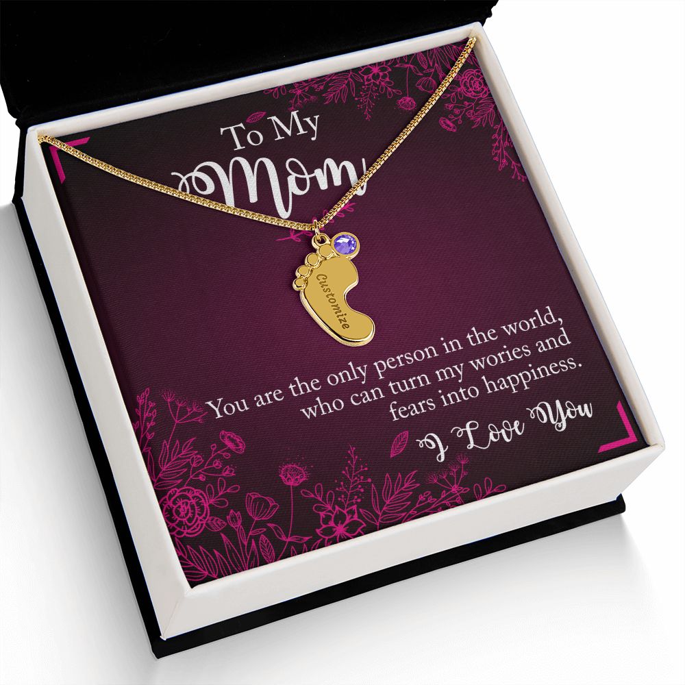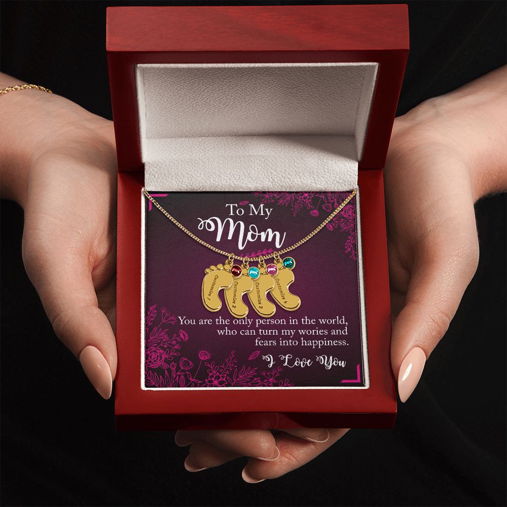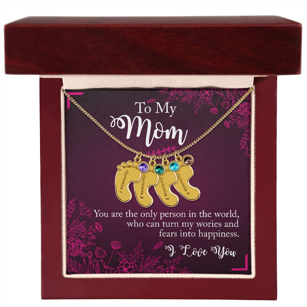 ENGRAVED BABY FEET WITH NAME AND BIRTHSTONE, NECKLACE GIFT FOR MOM WITH KIDS NAME, WITH MESSAGE CARD, BIRTHDAY/MOTHER'S DAY GIFT FOR MOM, FROM SON/DAUGHTER