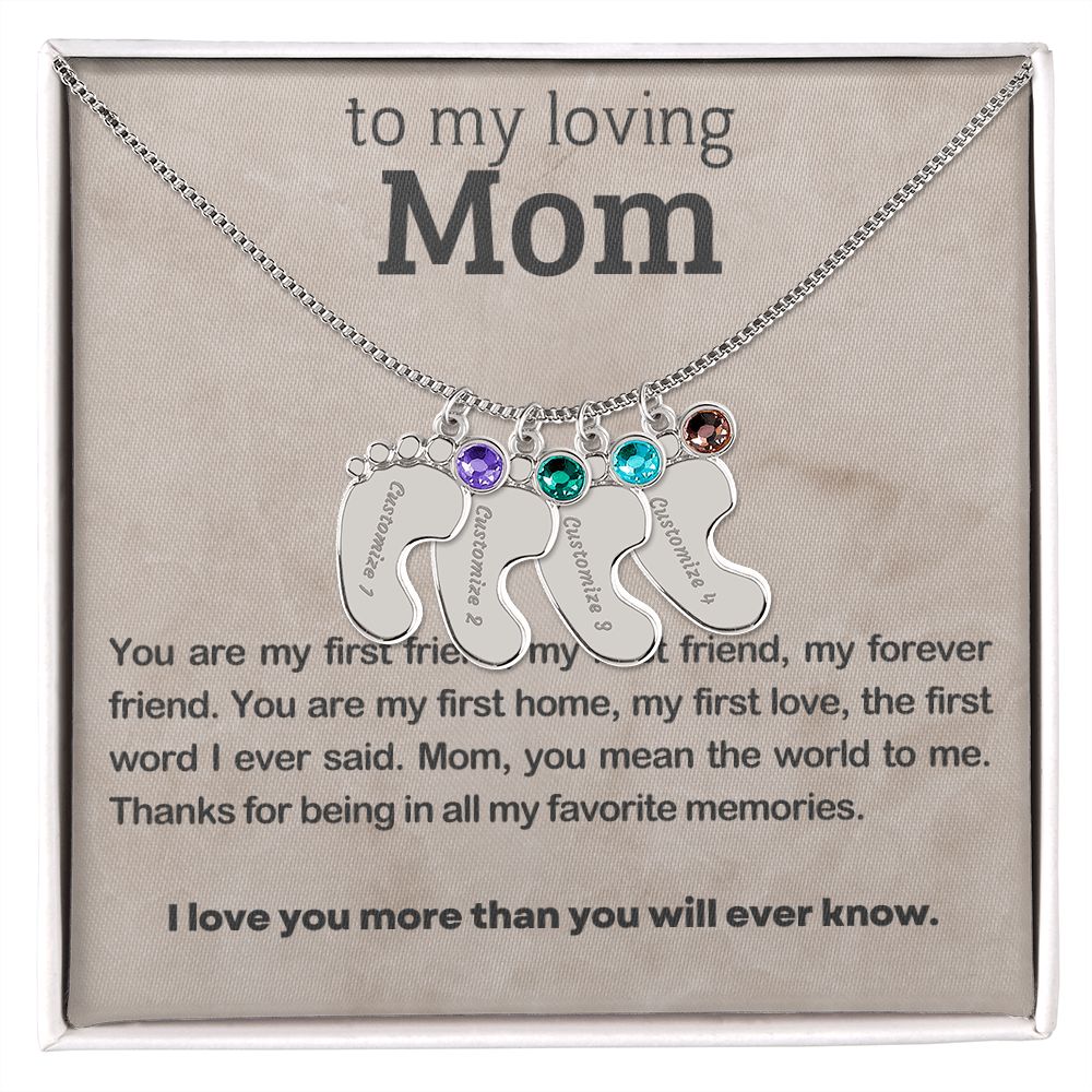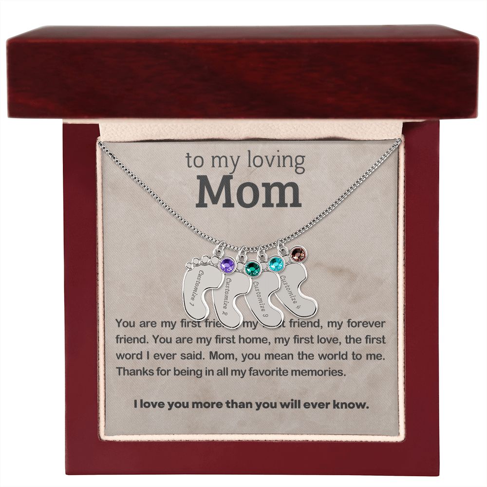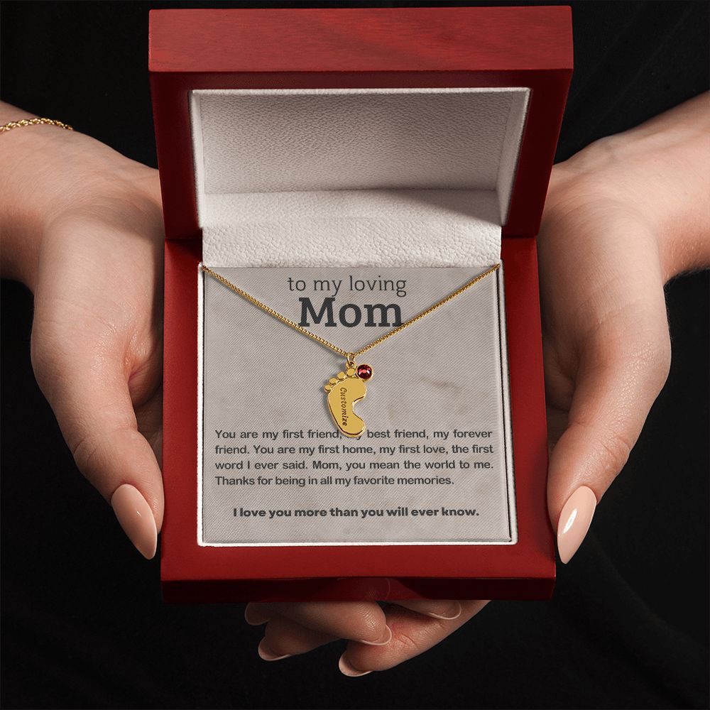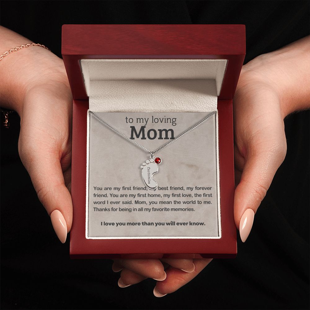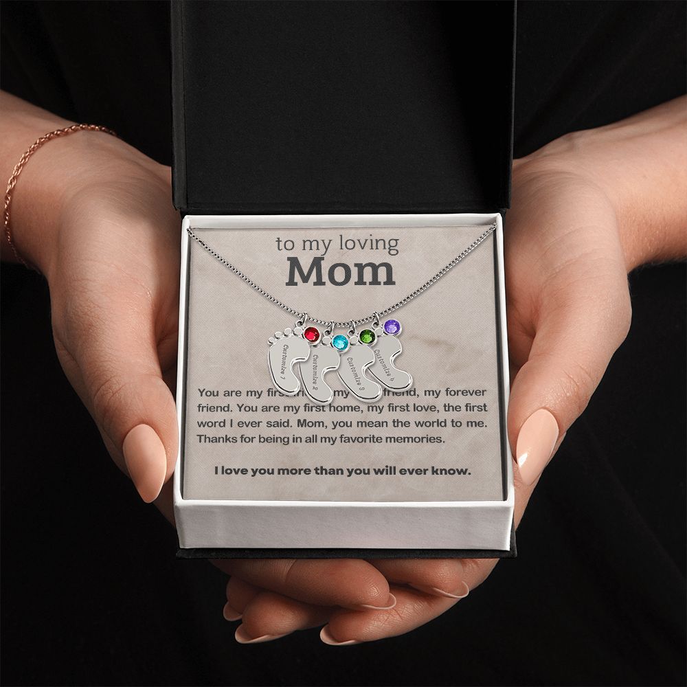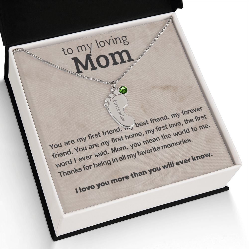 ENGRAVED BABY FEET WITH NAME AND BIRTHSTONE, NECKLACE GIFT FOR MOM WITH KIDS NAME, WITH MESSAGE CARD, BIRTHDAY/MOTHER'S DAY GIFT FOR MOM, FROM SON/DAUGHTER