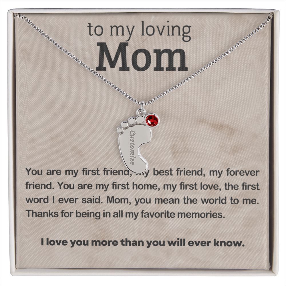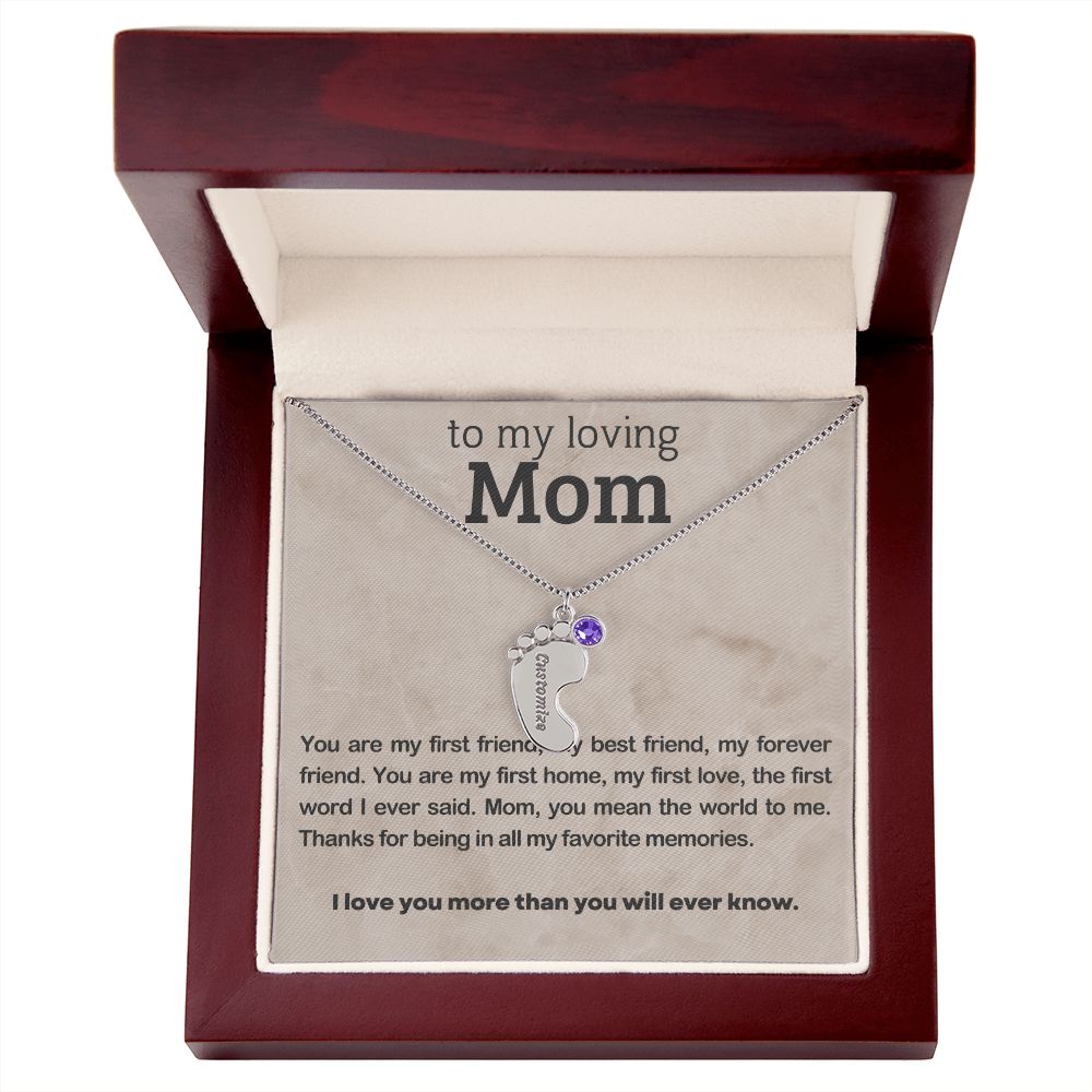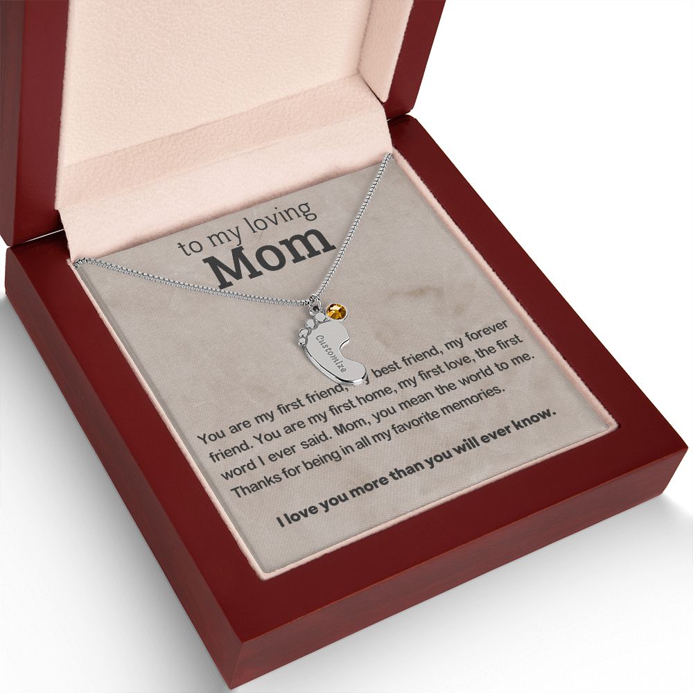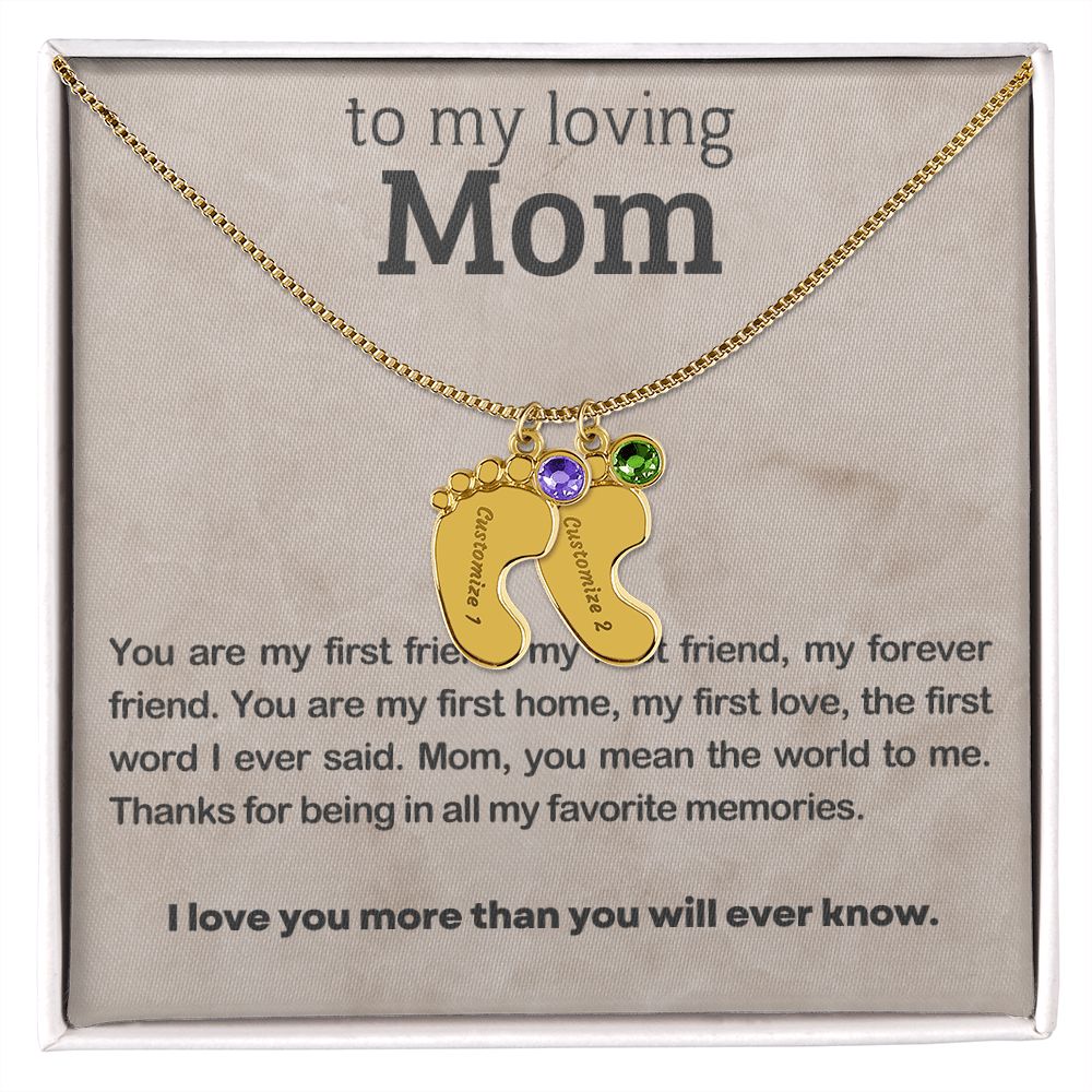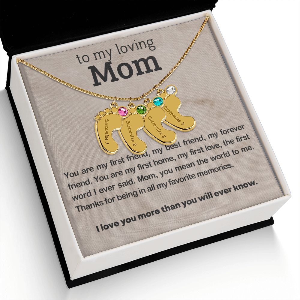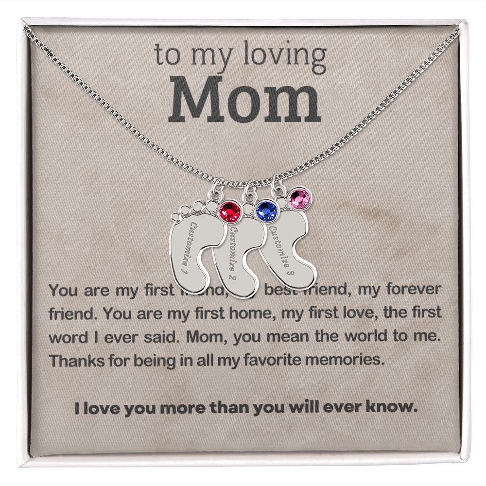 ENGRAVED BABY FEET WITH NAME AND BIRTHSTONE, NECKLACE GIFT FOR MOM WITH KIDS NAME, WITH MESSAGE CARD, BIRTHDAY/MOTHER'S DAY GIFT FOR MOM, FROM SON/DAUGHTER