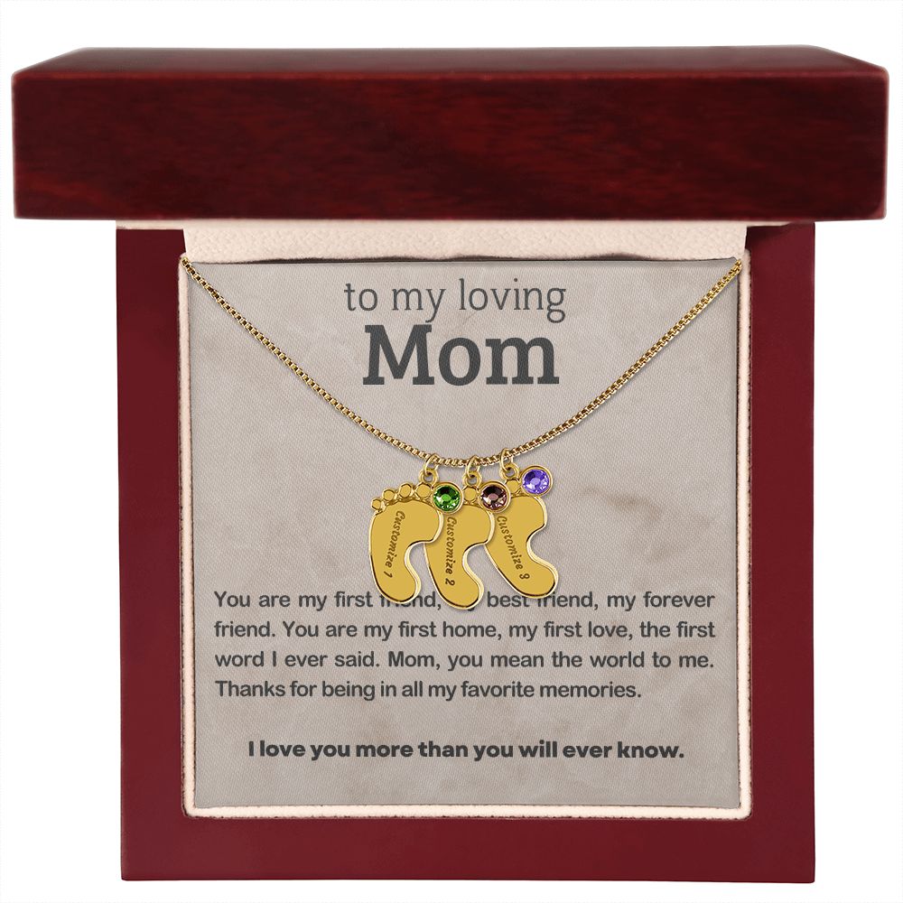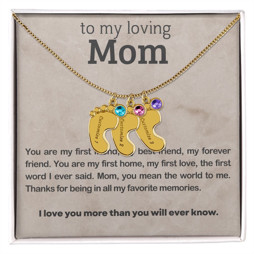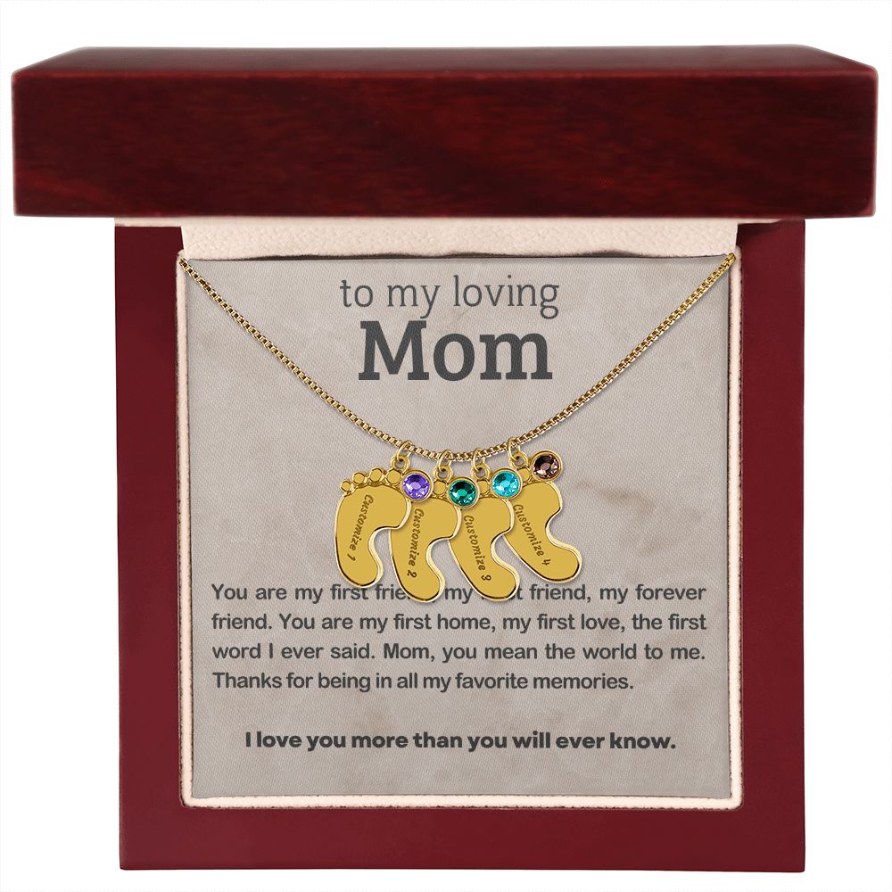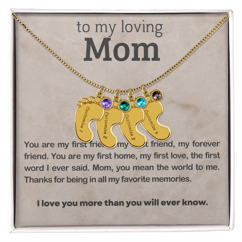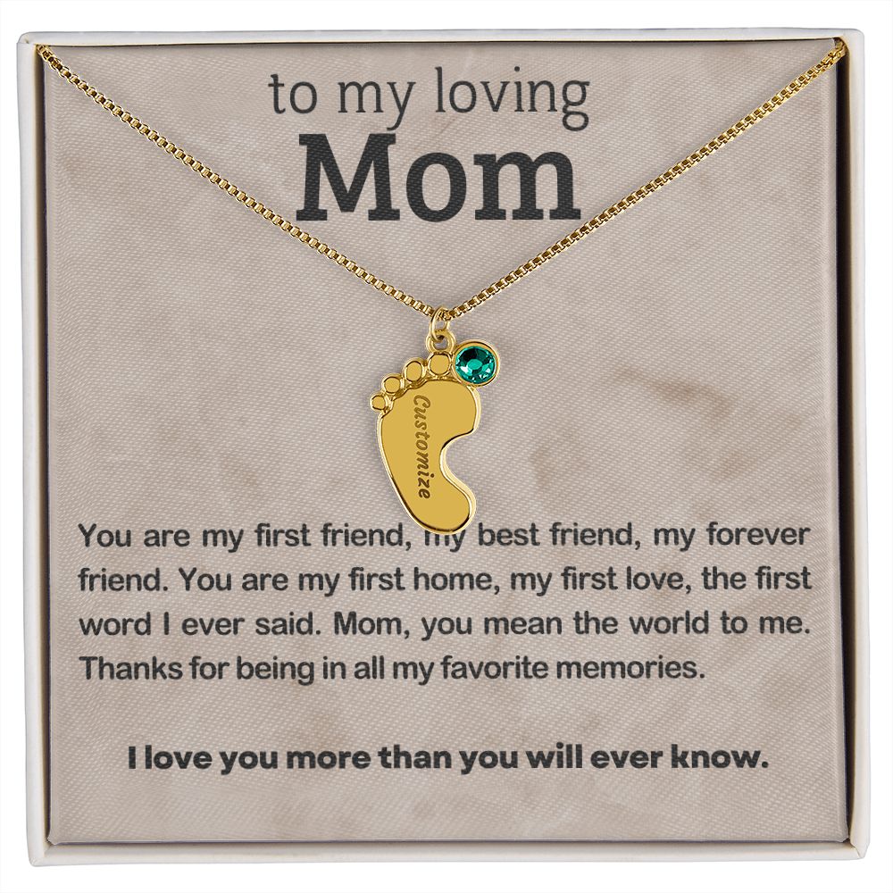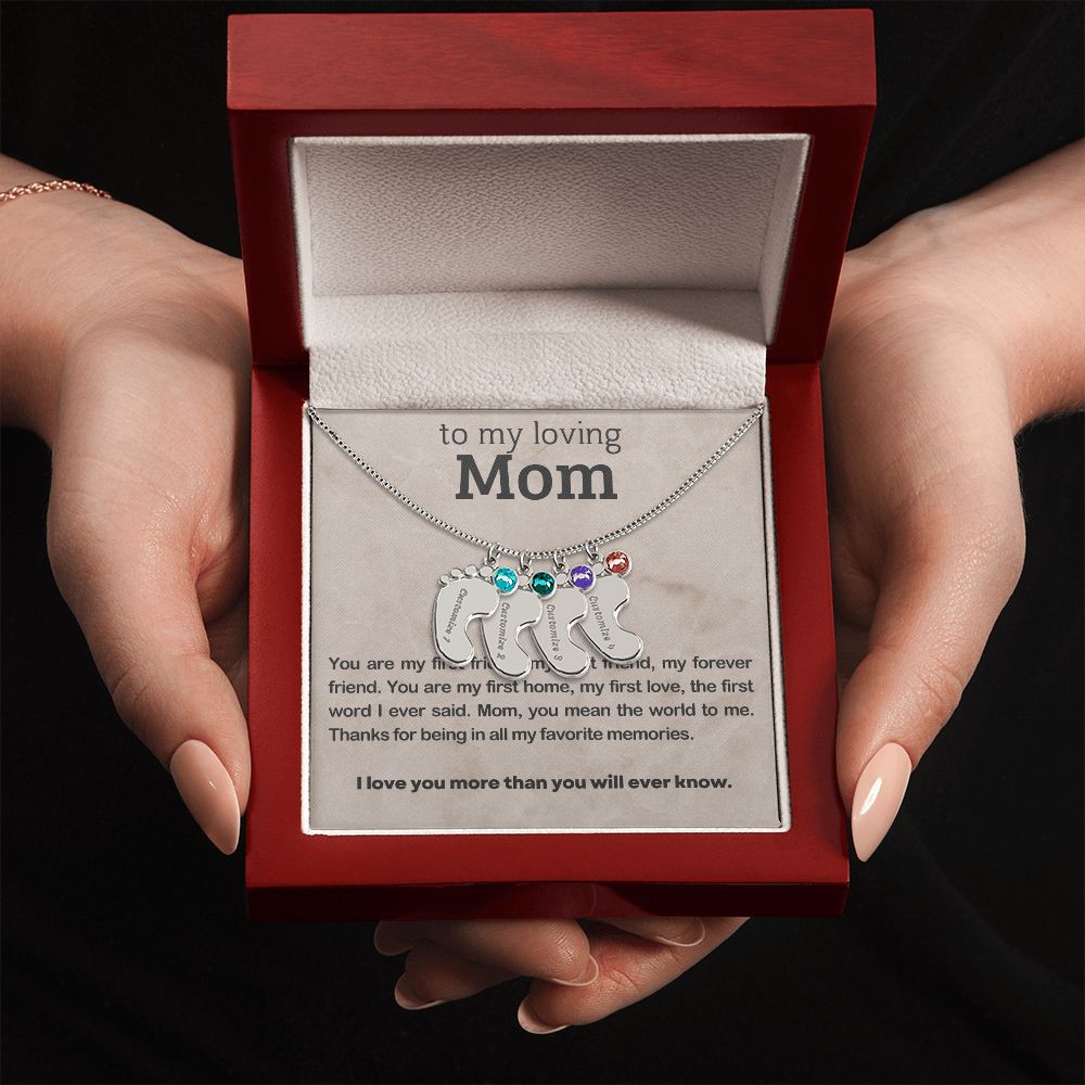 ENGRAVED BABY FEET WITH NAME AND BIRTHSTONE, NECKLACE GIFT FOR MOM WITH KIDS NAME, WITH MESSAGE CARD, BIRTHDAY/MOTHER'S DAY GIFT FOR MOM, FROM SON/DAUGHTER