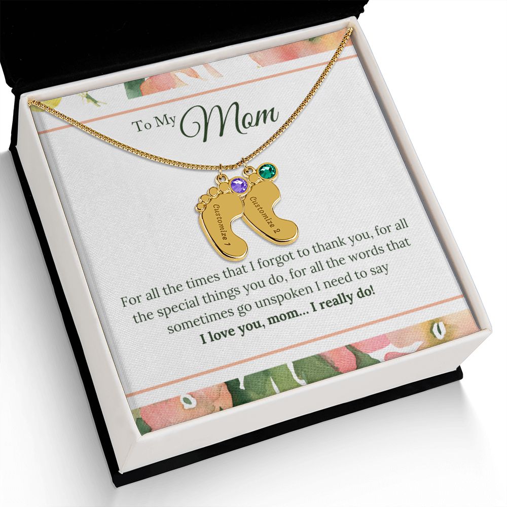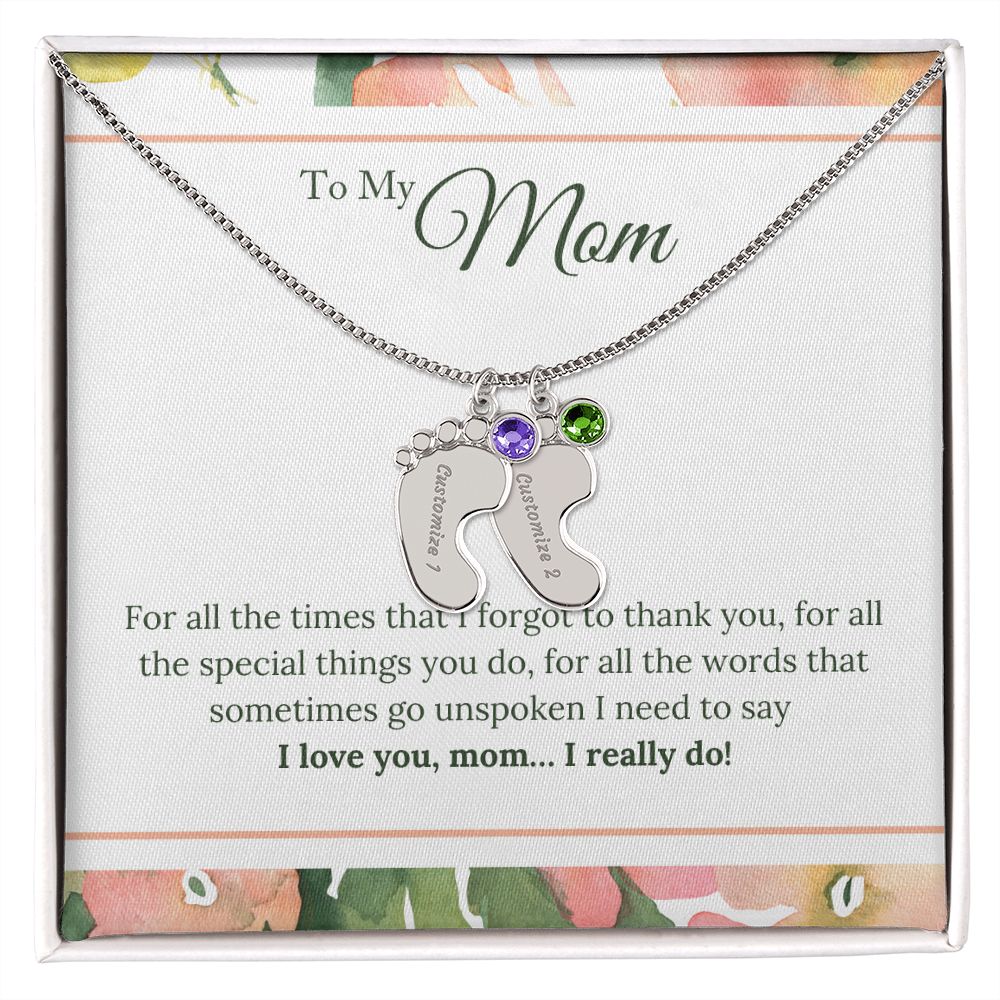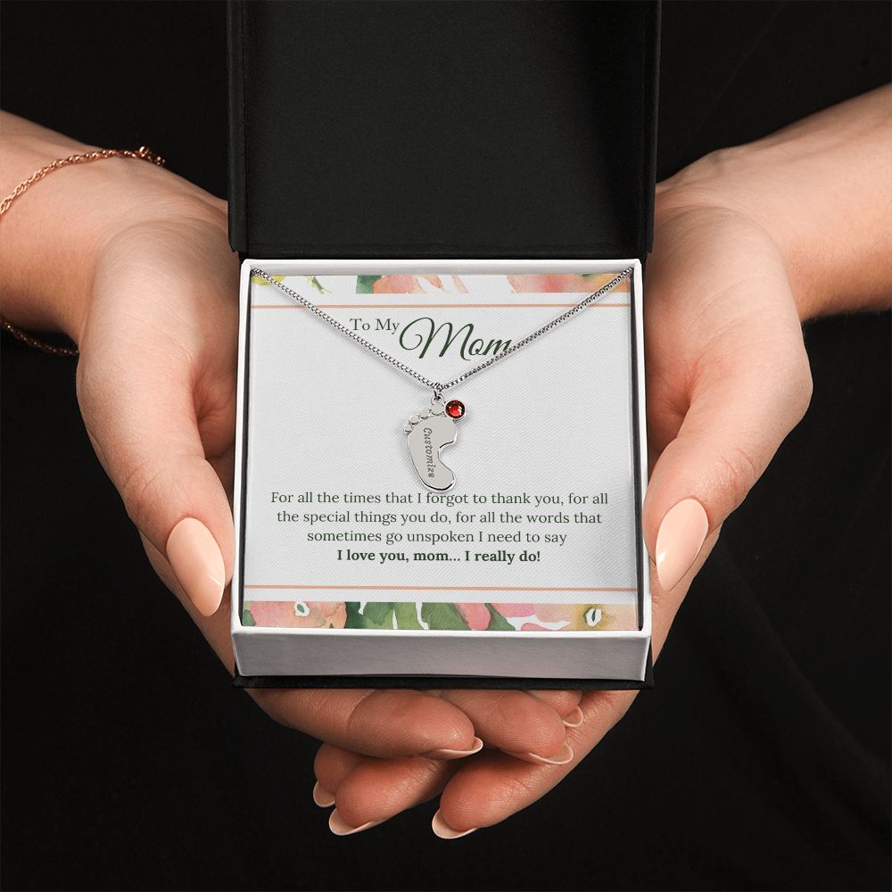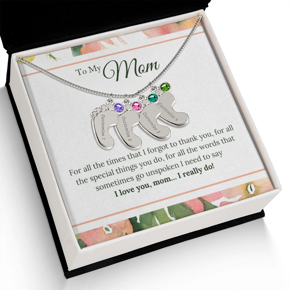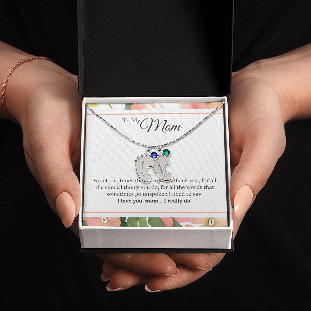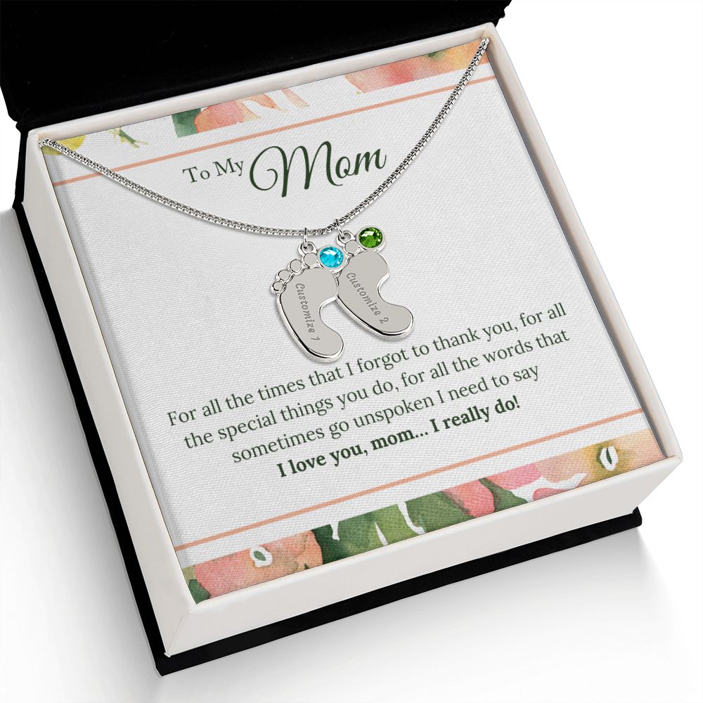 ENGRAVED BABY FEET WITH NAME AND BIRTHSTONE, NECKLACE GIFT FOR MOM WITH KIDS NAME, WITH MESSAGE CARD, HAPPY MOTHER'S DAY GIFT FOR MOM FROM SON/DAUGHTER