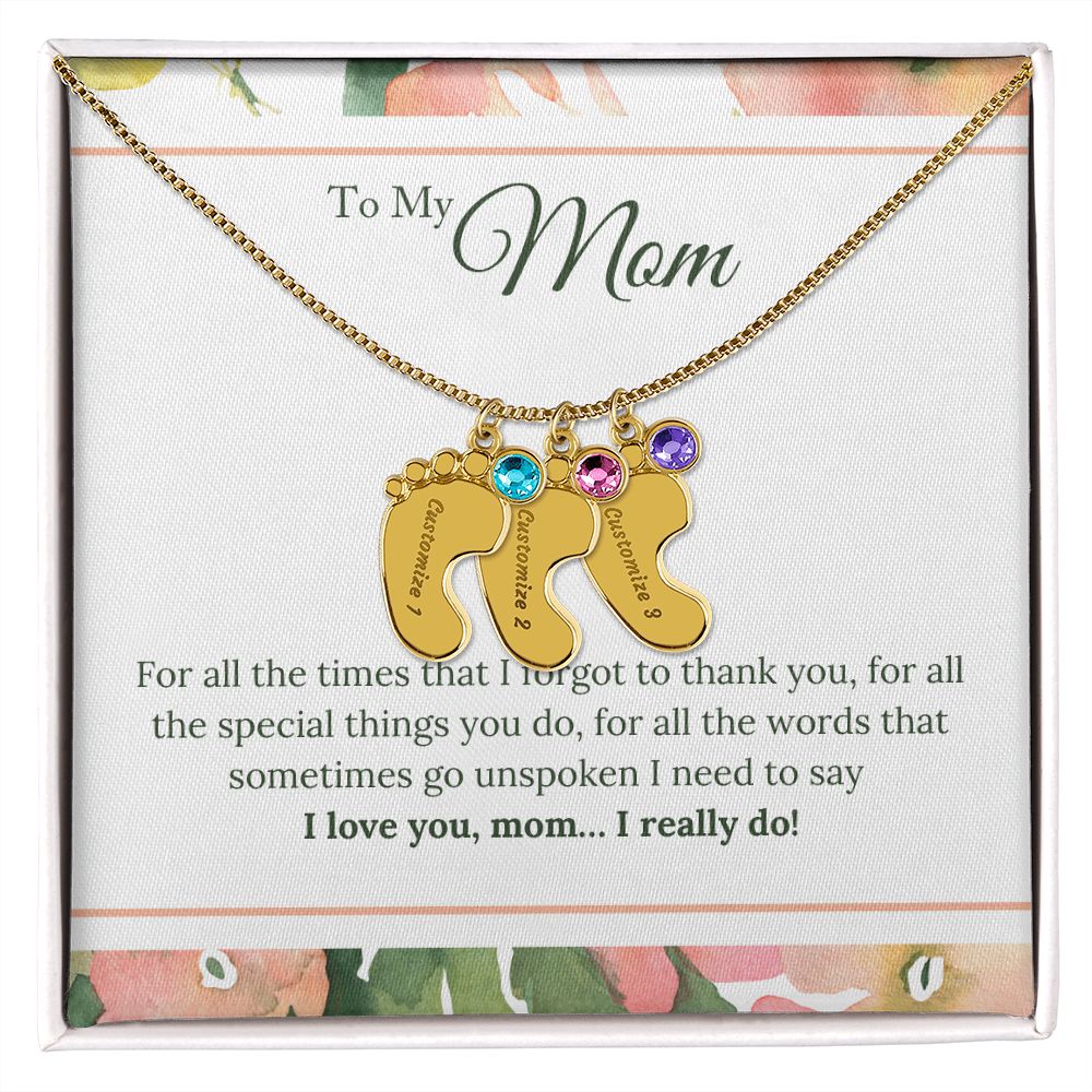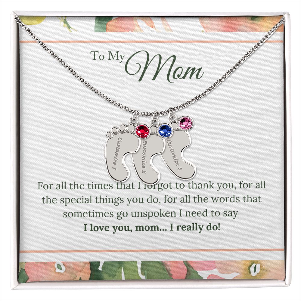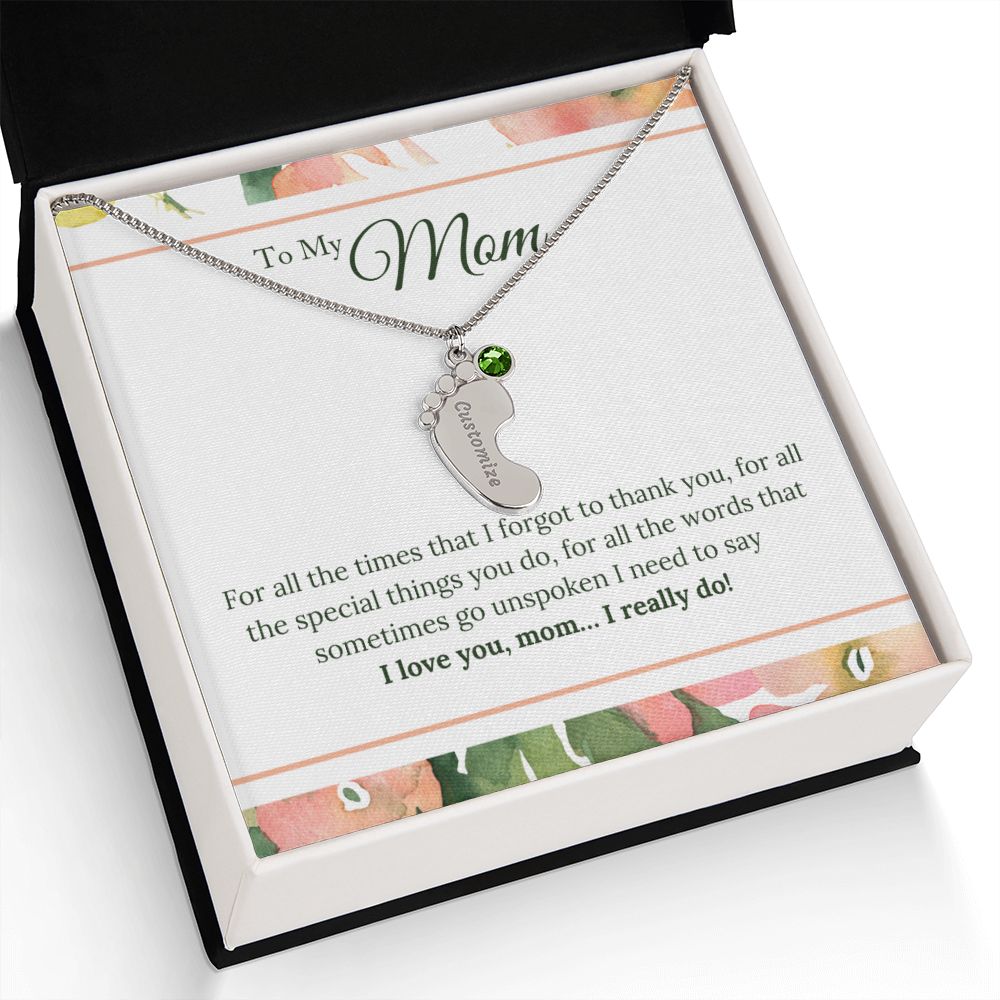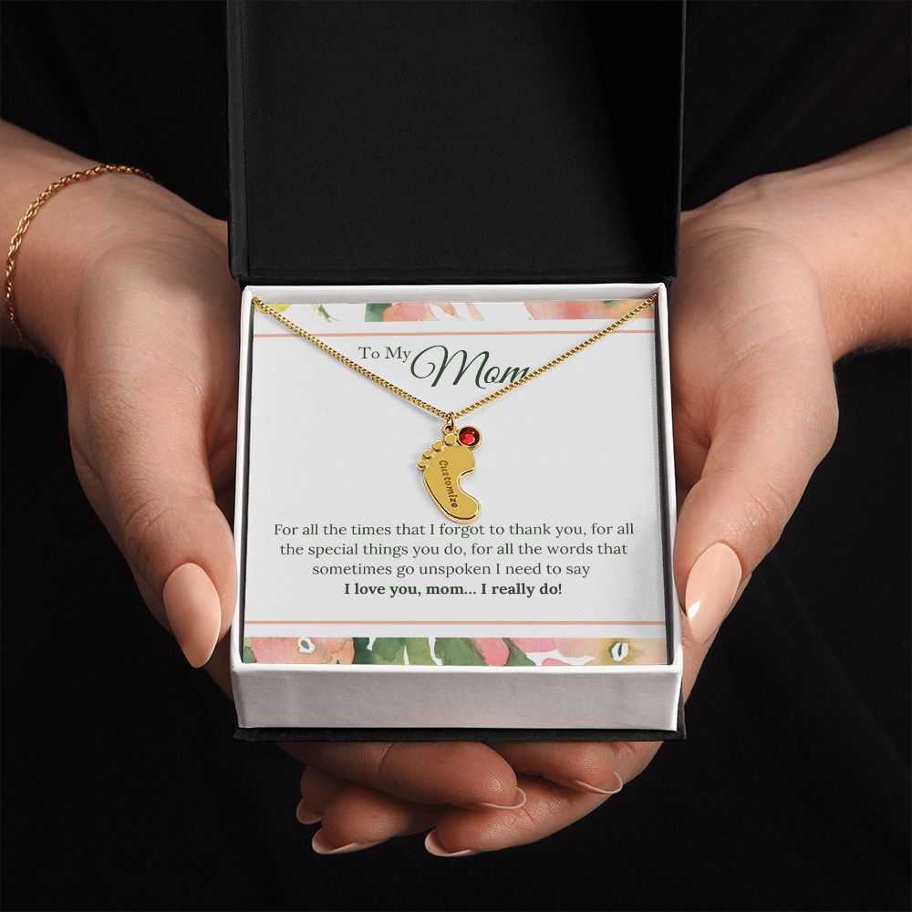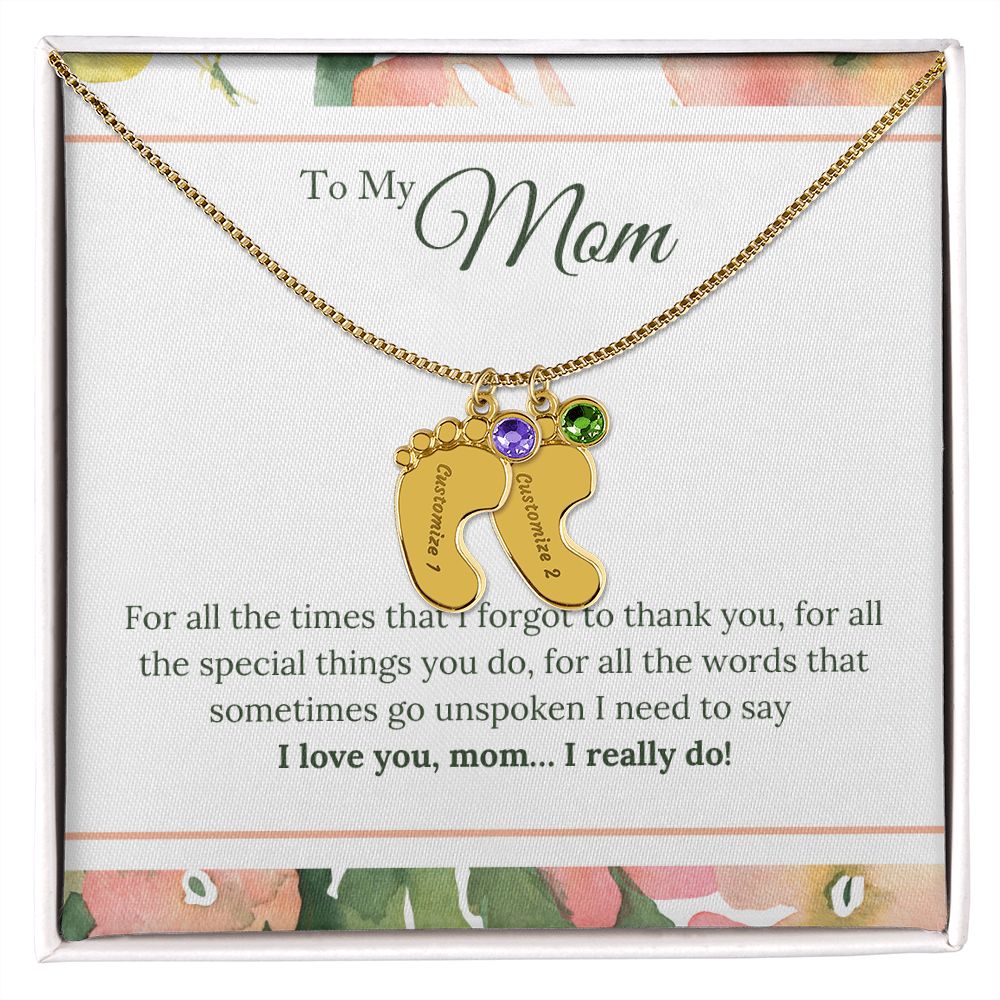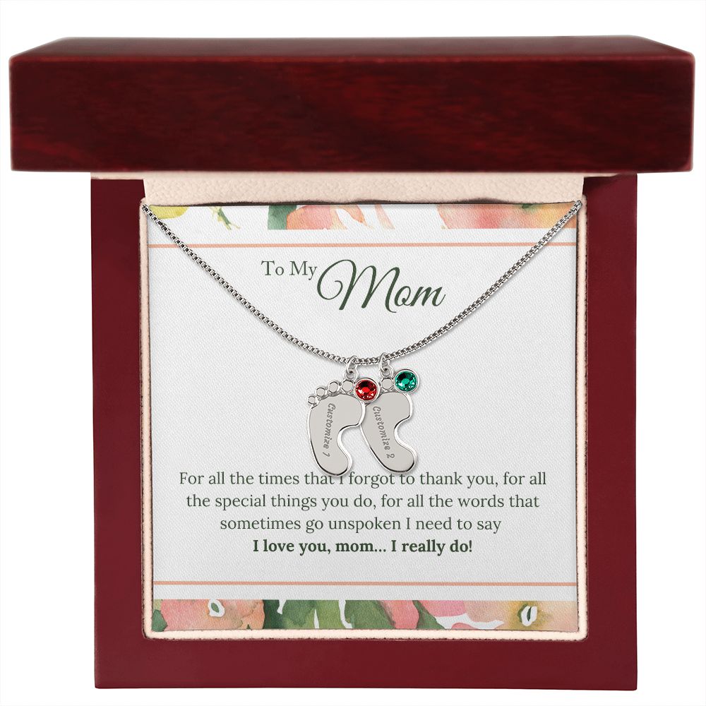 ENGRAVED BABY FEET WITH NAME AND BIRTHSTONE, NECKLACE GIFT FOR MOM WITH KIDS NAME, WITH MESSAGE CARD, HAPPY MOTHER'S DAY GIFT FOR MOM FROM SON/DAUGHTER