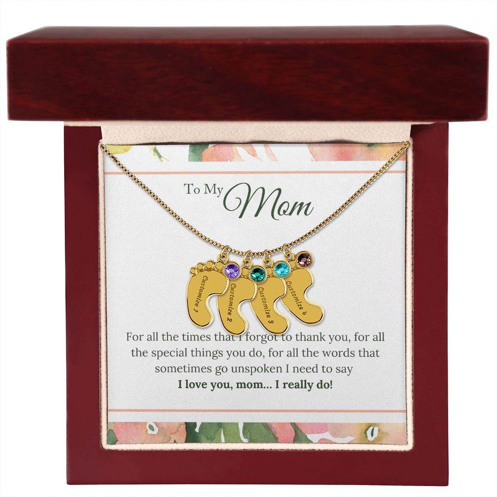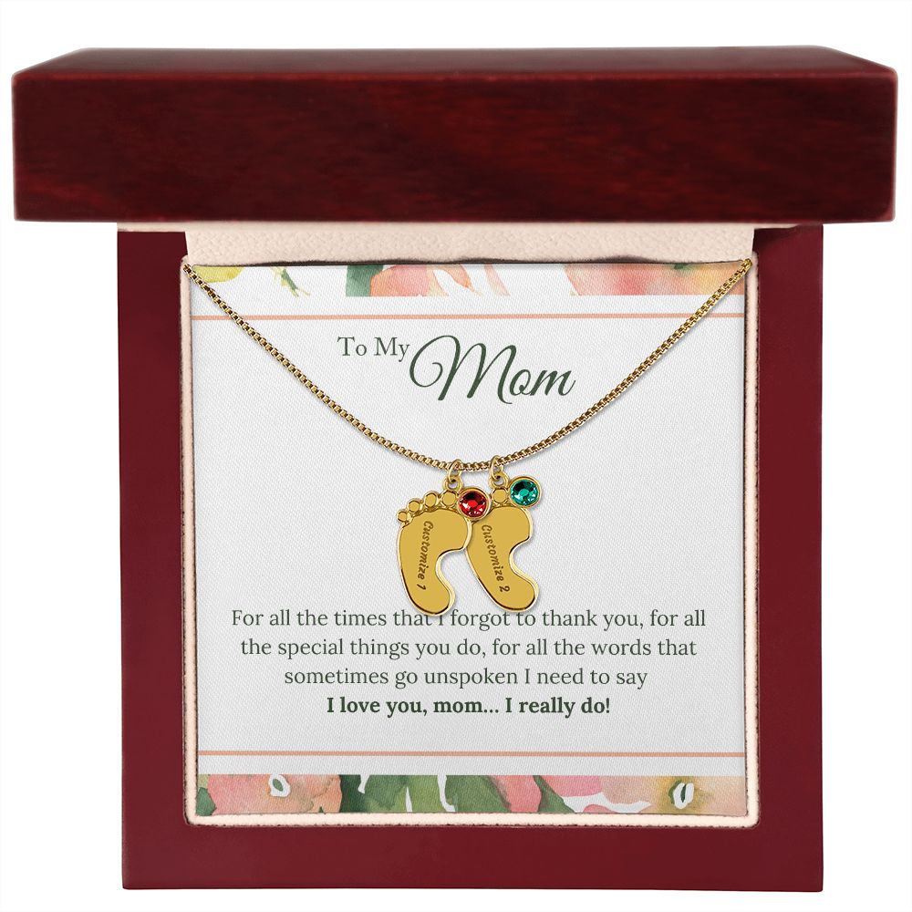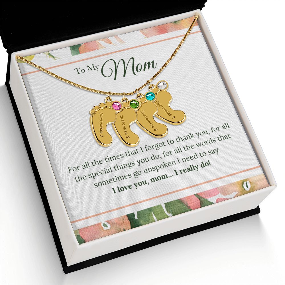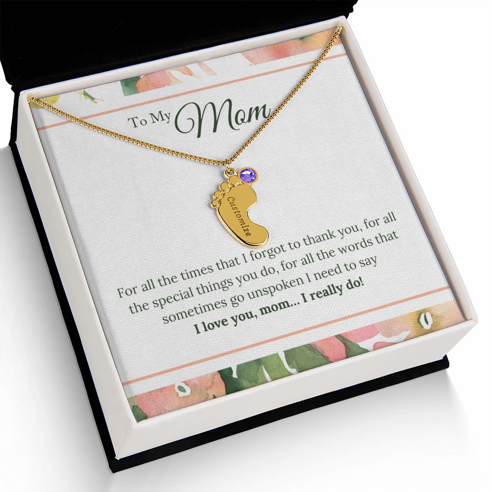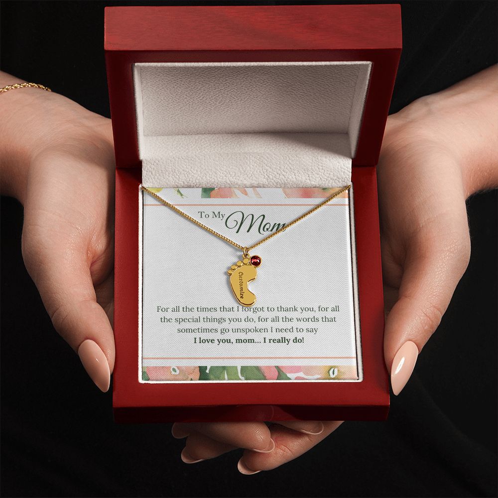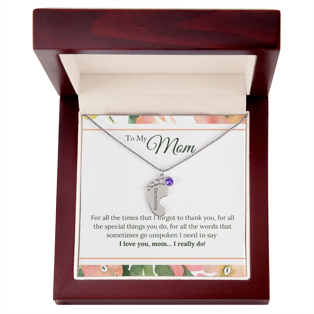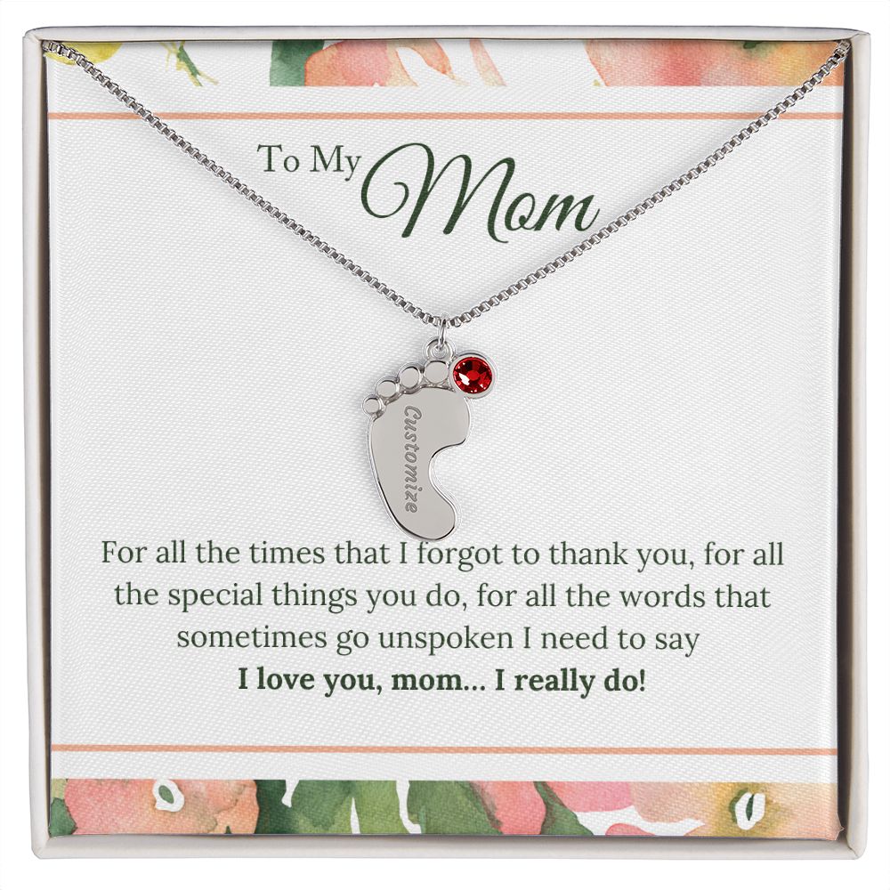 ENGRAVED BABY FEET WITH NAME AND BIRTHSTONE, NECKLACE GIFT FOR MOM WITH KIDS NAME, WITH MESSAGE CARD, HAPPY MOTHER'S DAY GIFT FOR MOM FROM SON/DAUGHTER