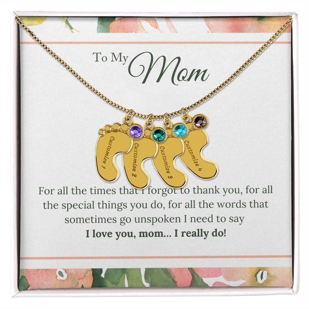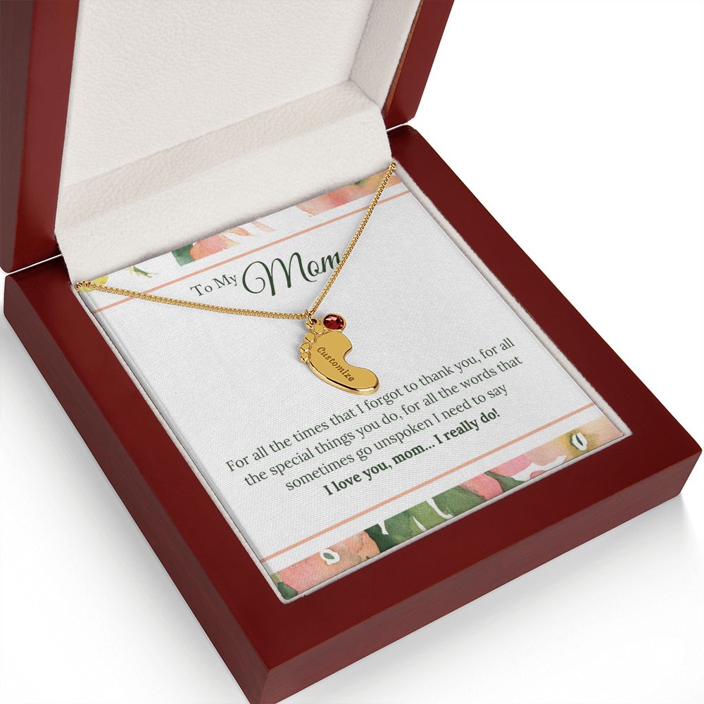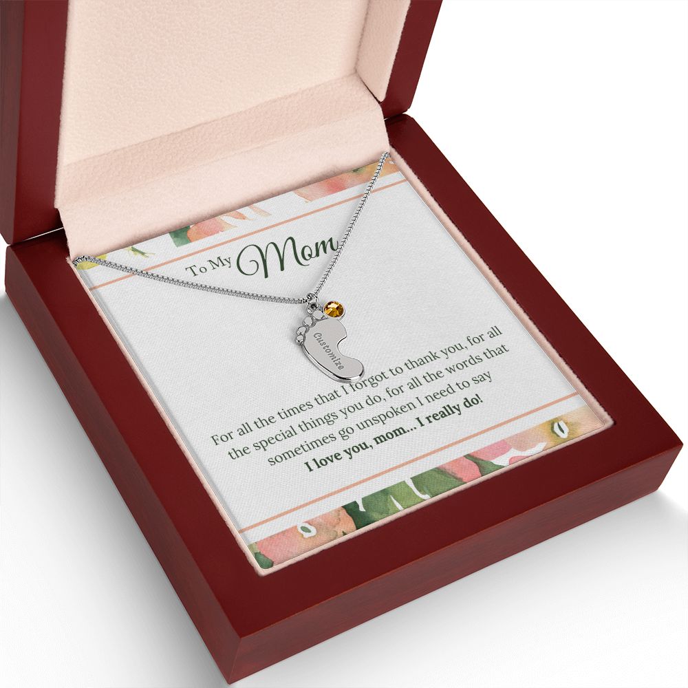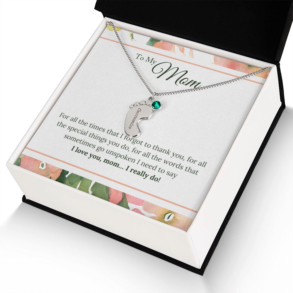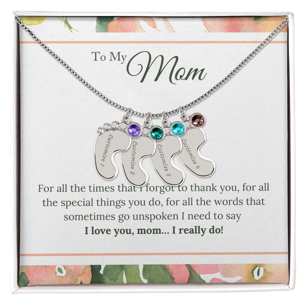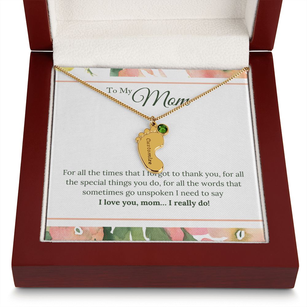 ENGRAVED BABY FEET WITH NAME AND BIRTHSTONE, NECKLACE GIFT FOR MOM WITH KIDS NAME, WITH MESSAGE CARD, HAPPY MOTHER'S DAY GIFT FOR MOM FROM SON/DAUGHTER