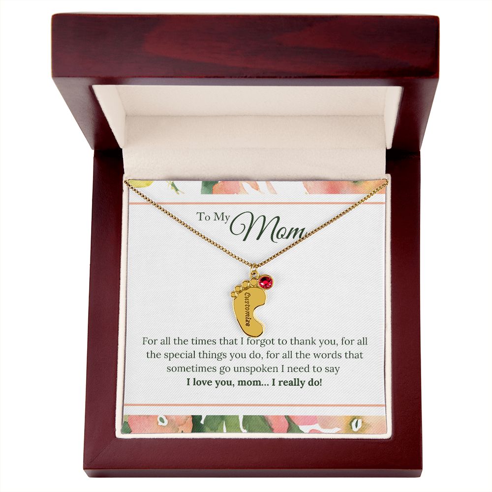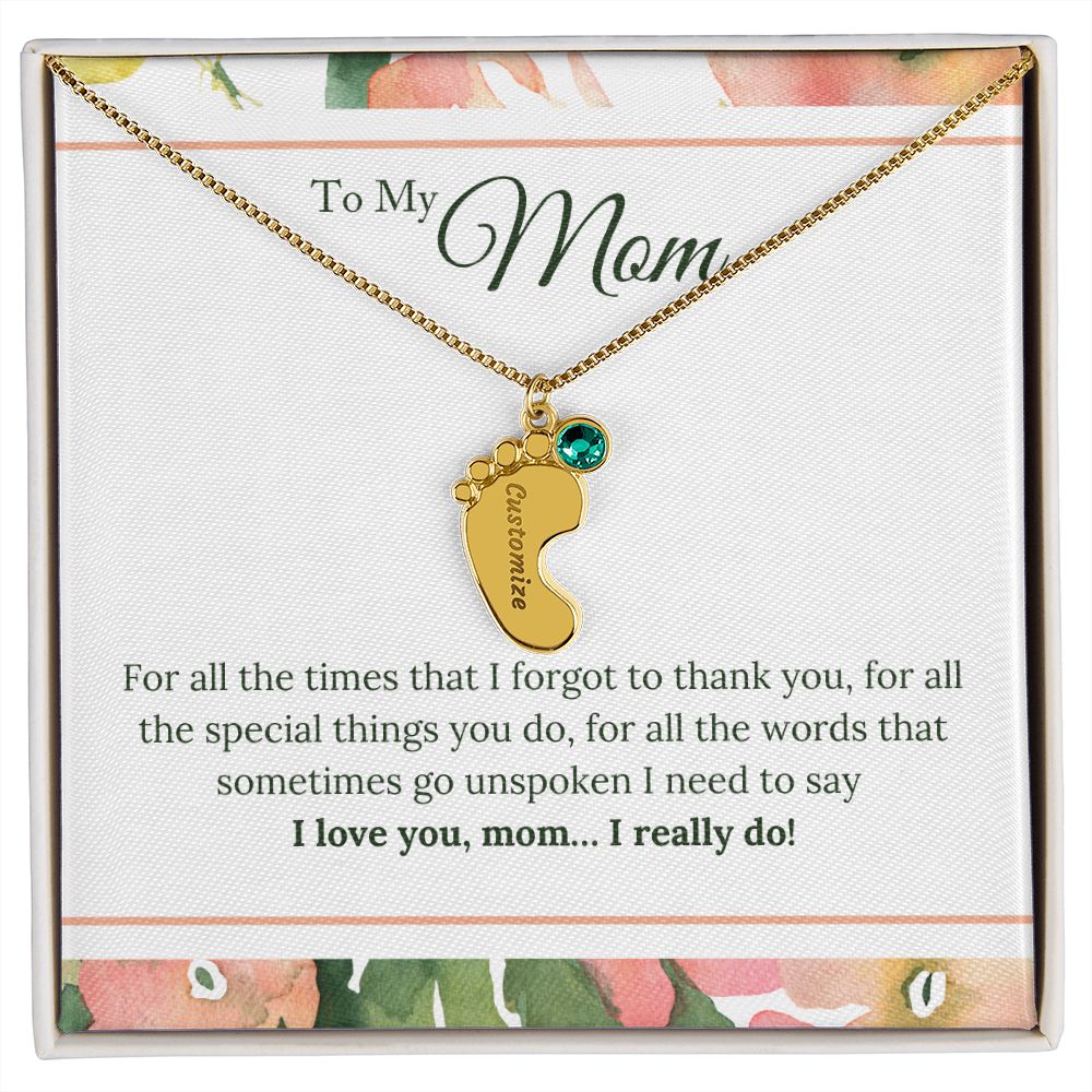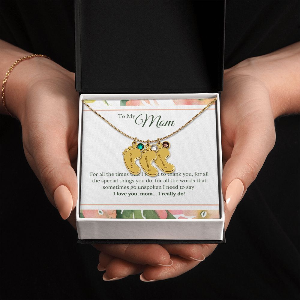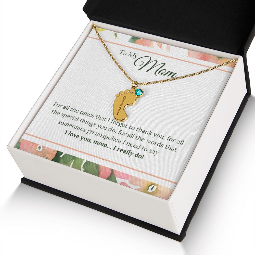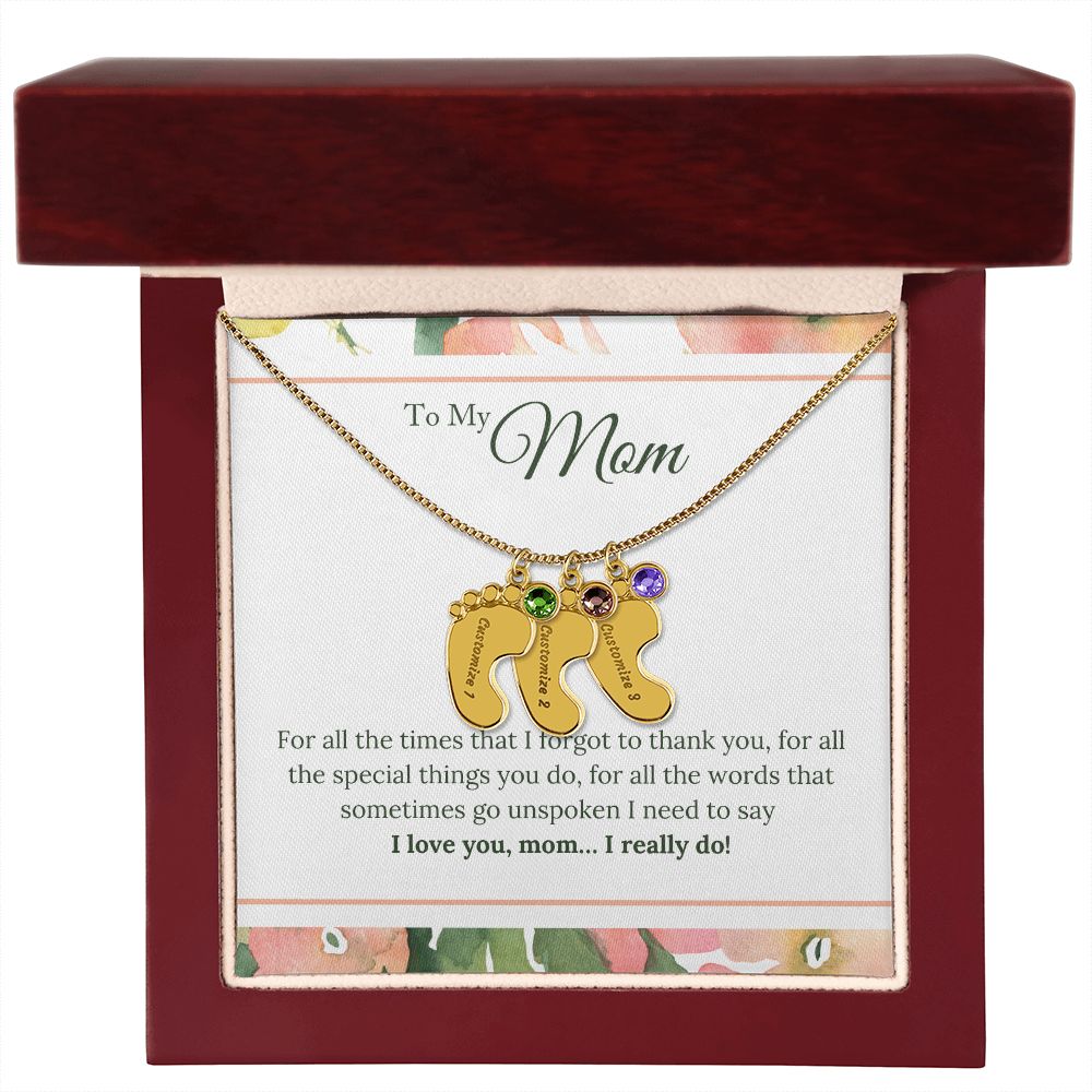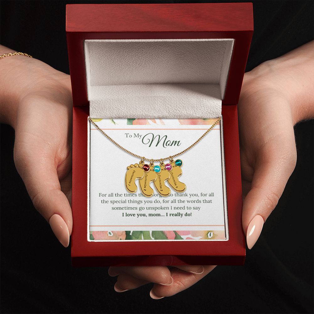 ENGRAVED BABY FEET WITH NAME AND BIRTHSTONE, NECKLACE GIFT FOR MOM WITH KIDS NAME, WITH MESSAGE CARD, HAPPY MOTHER'S DAY GIFT FOR MOM FROM SON/DAUGHTER