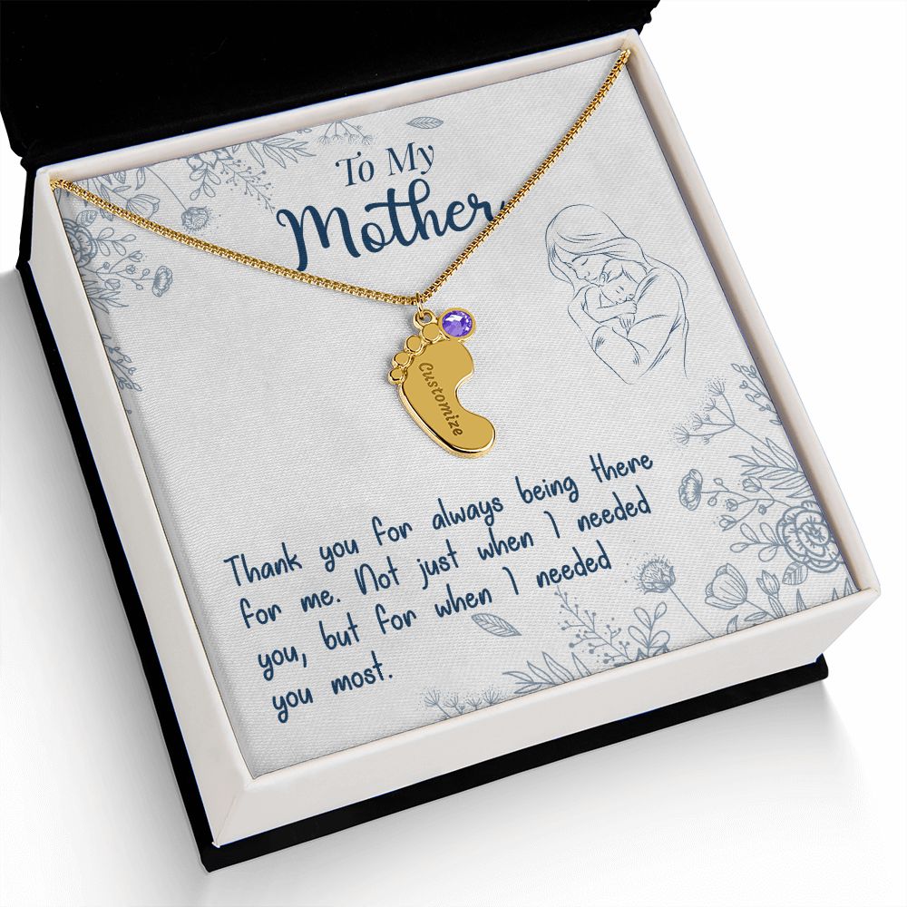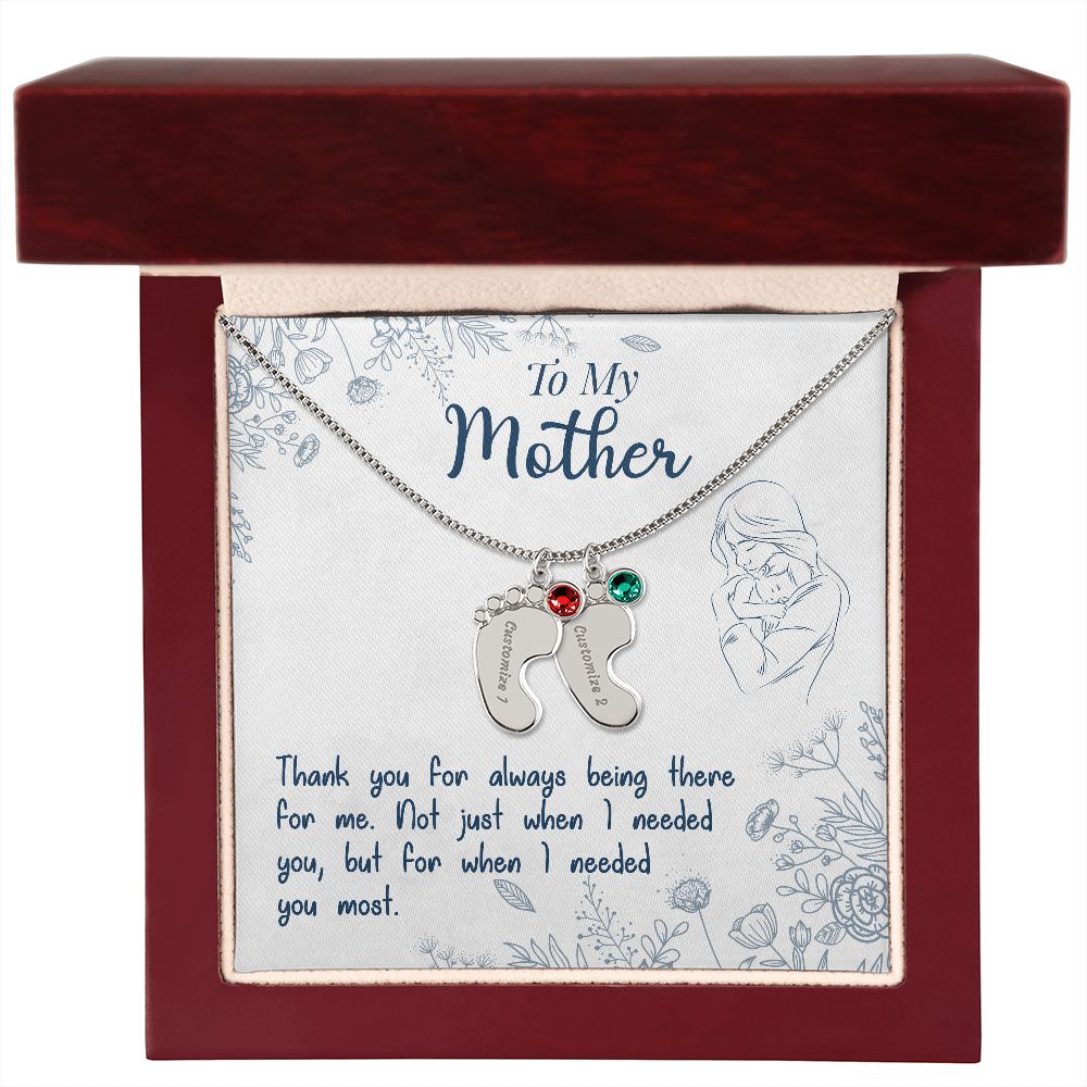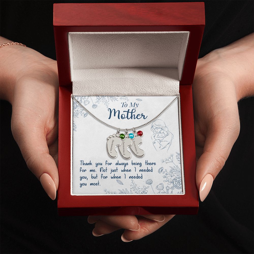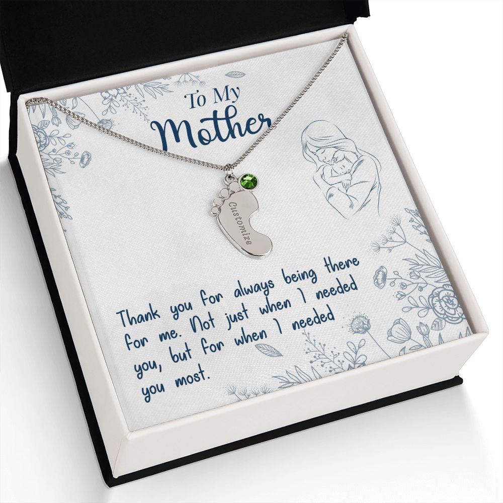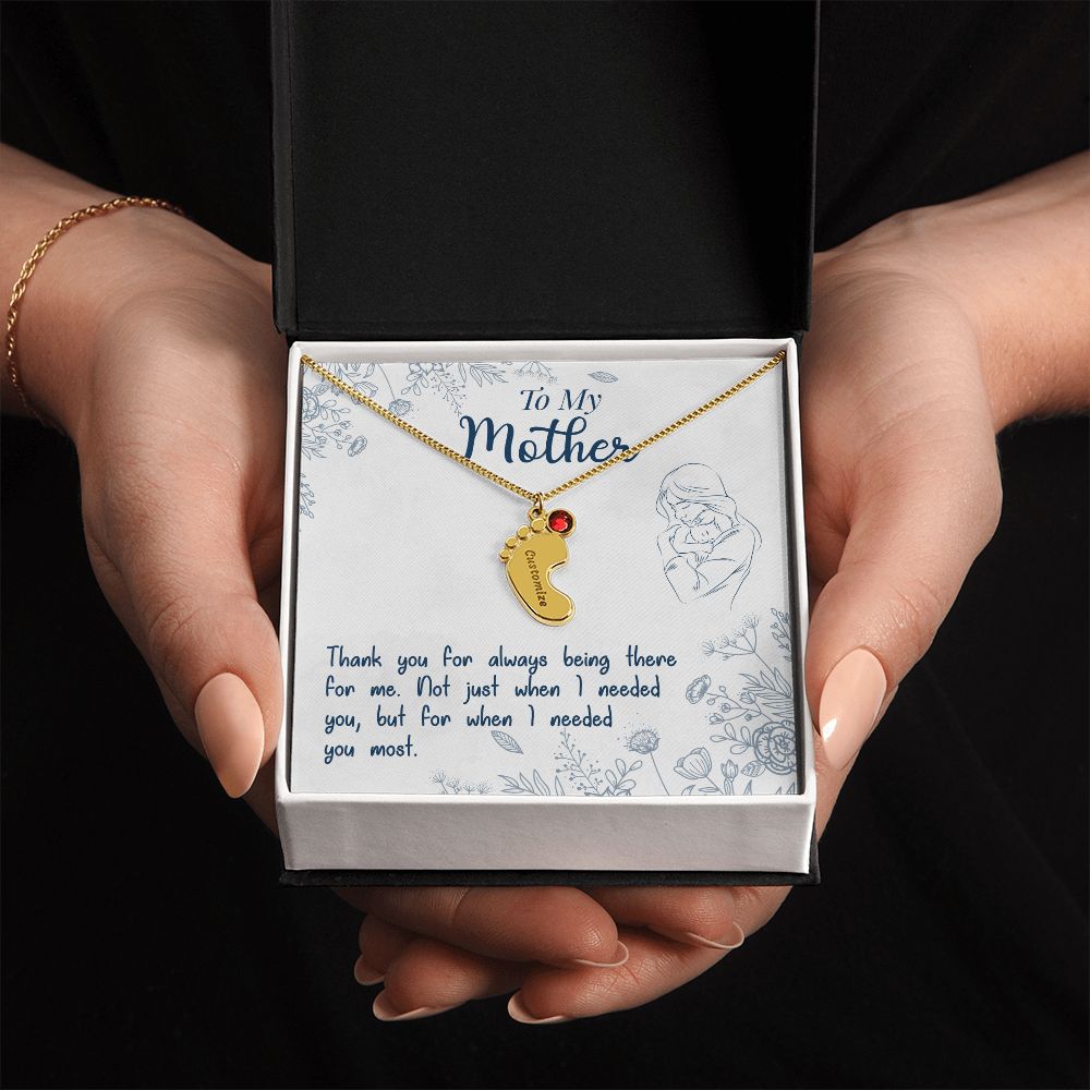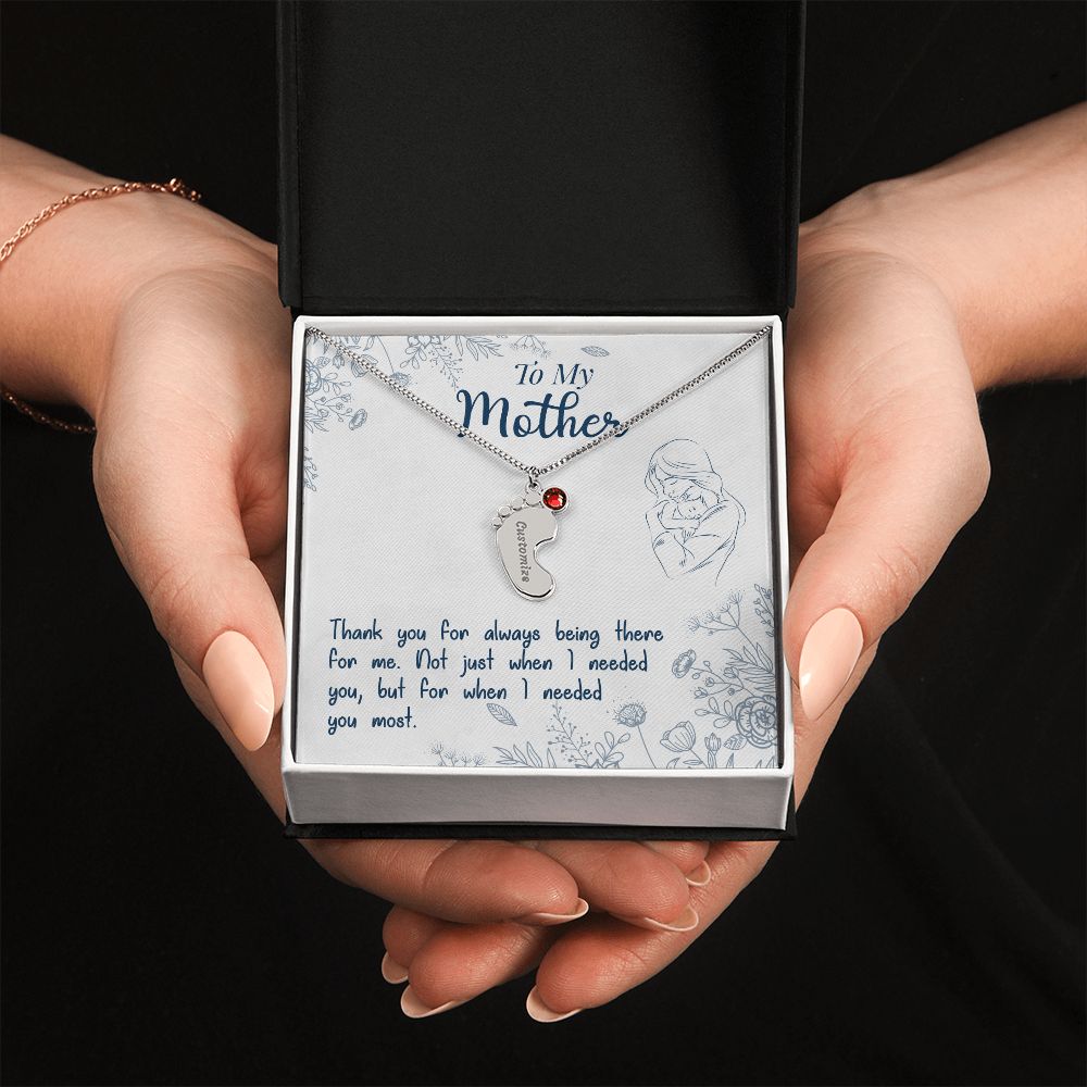 ENGRAVED BABY FEET WITH NAME AND BIRTHSTONE, NECKLACE GIFT FOR MOM WITH KIDS NAME, WITH MESSAGE CARD, MOTHER'S DAY GIFT, FOR MOM FROM SON/DAUGHTER
