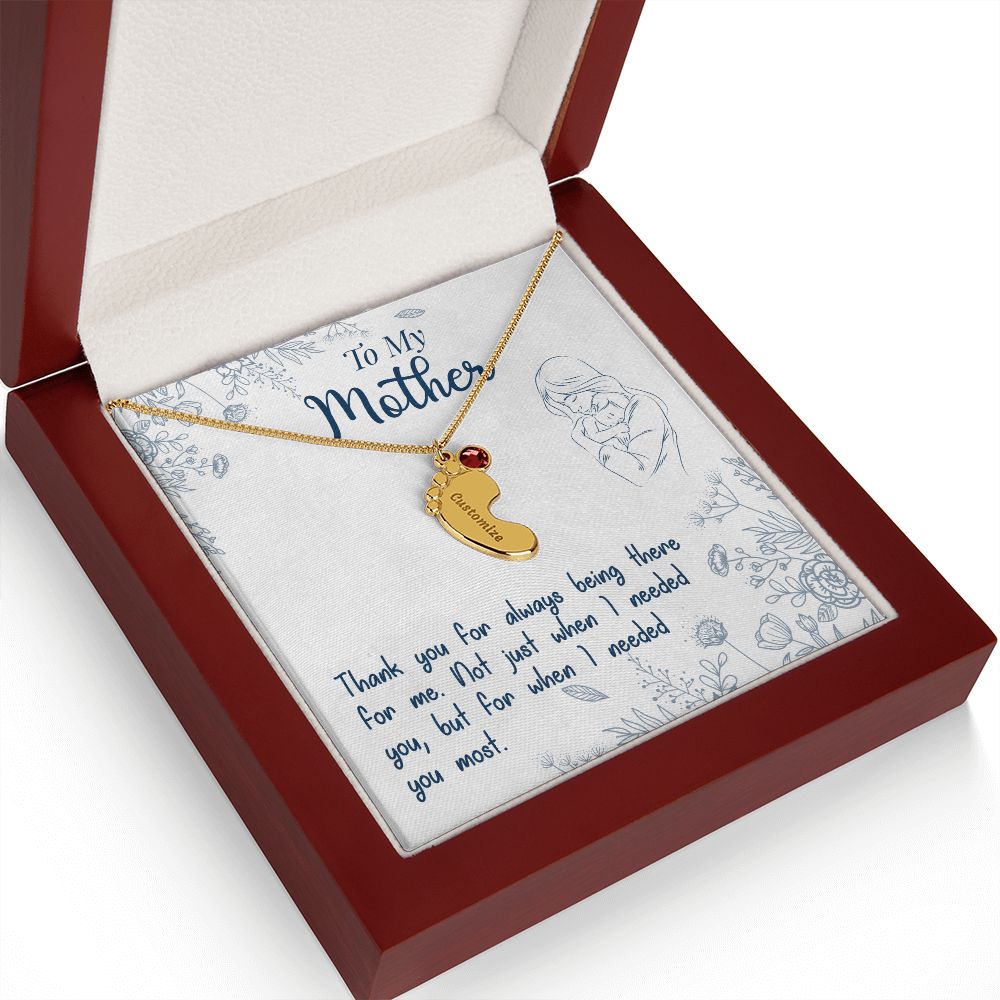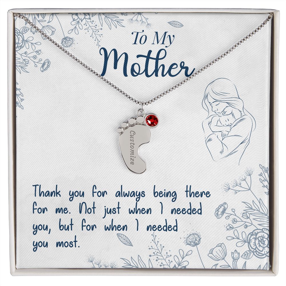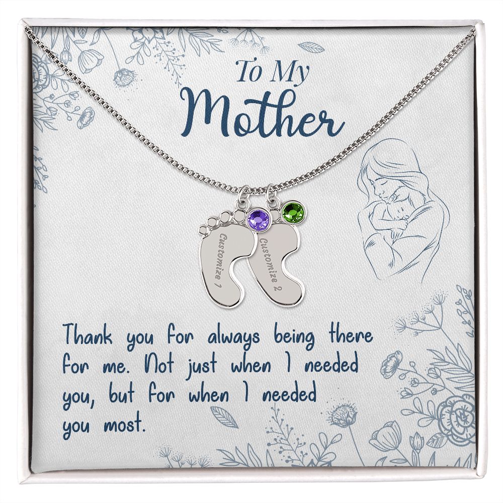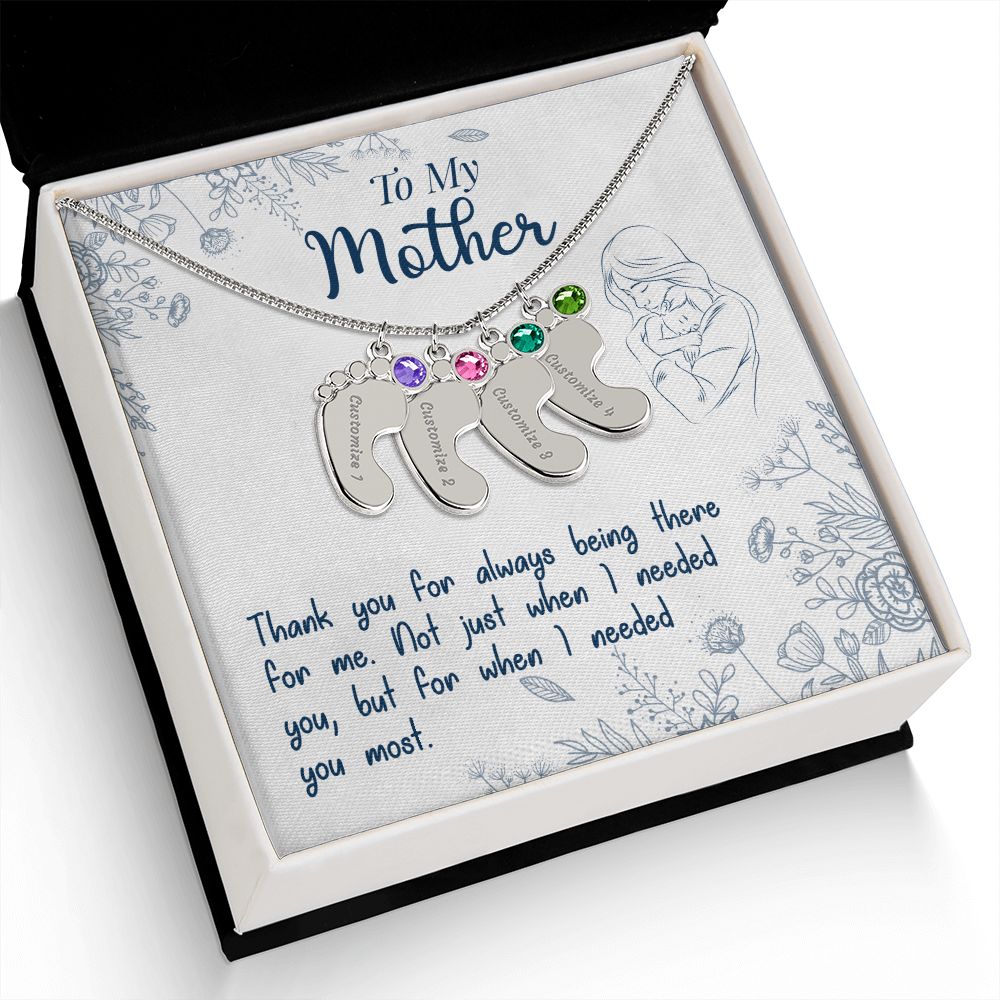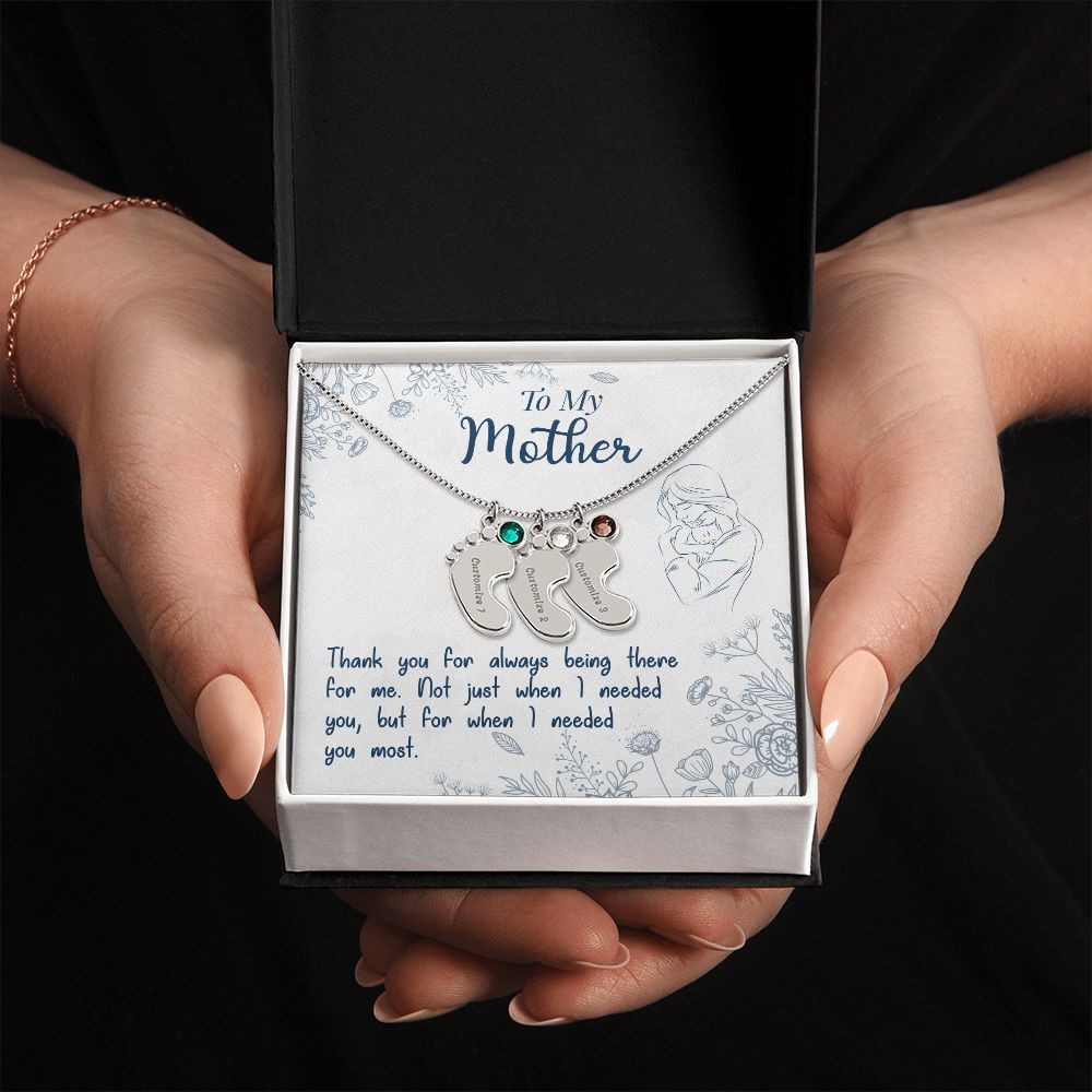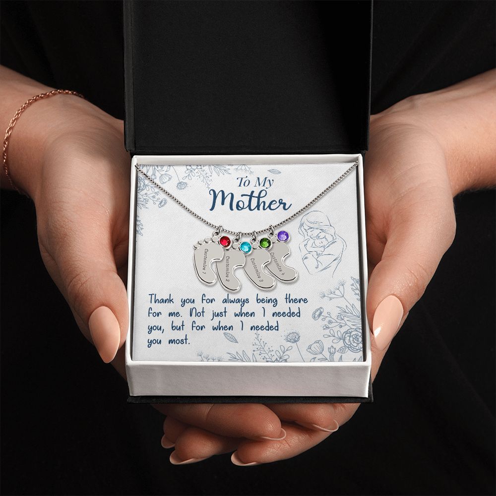 ENGRAVED BABY FEET WITH NAME AND BIRTHSTONE, NECKLACE GIFT FOR MOM WITH KIDS NAME, WITH MESSAGE CARD, MOTHER'S DAY GIFT, FOR MOM FROM SON/DAUGHTER