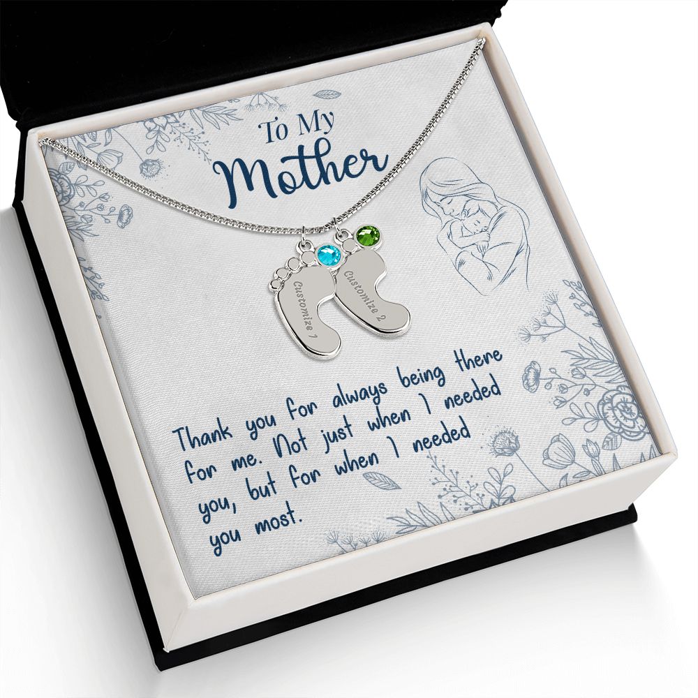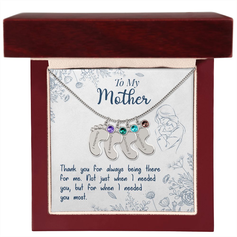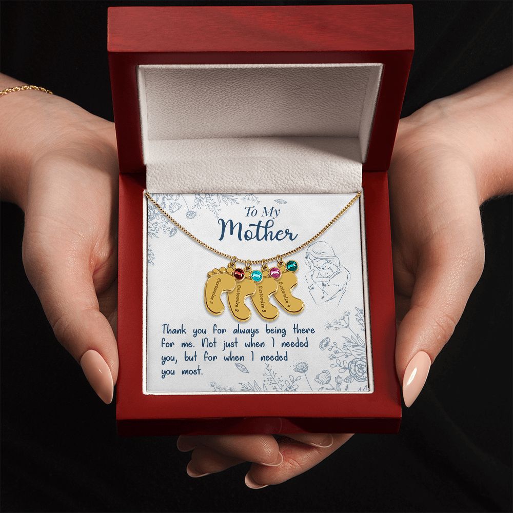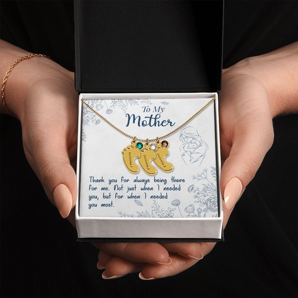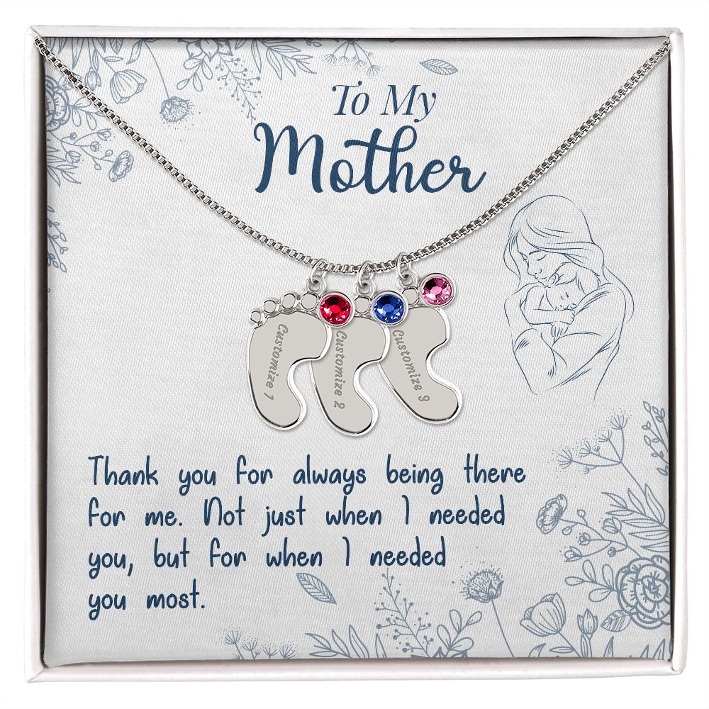 ENGRAVED BABY FEET WITH NAME AND BIRTHSTONE, NECKLACE GIFT FOR MOM WITH KIDS NAME, WITH MESSAGE CARD, MOTHER'S DAY GIFT, FOR MOM FROM SON/DAUGHTER