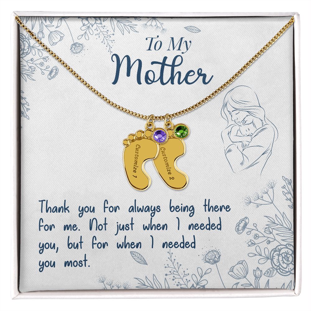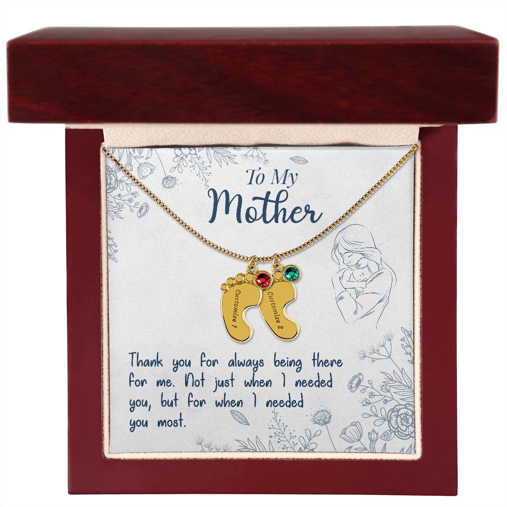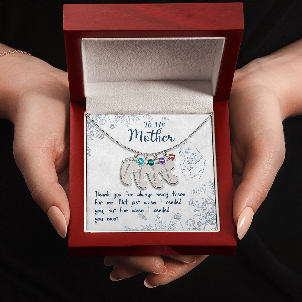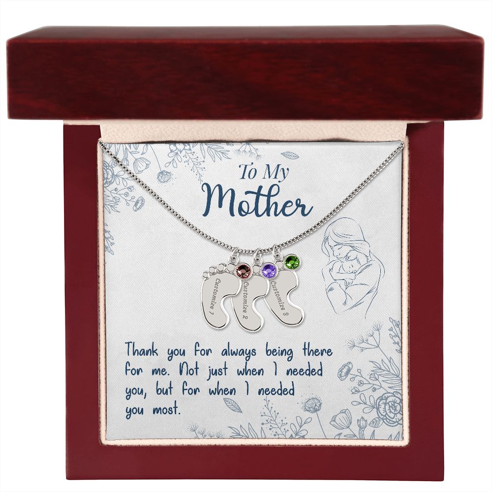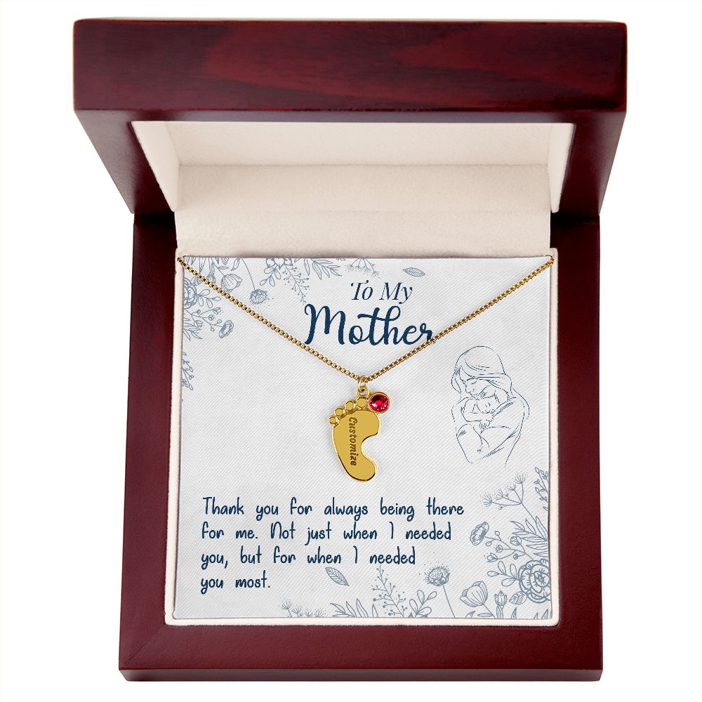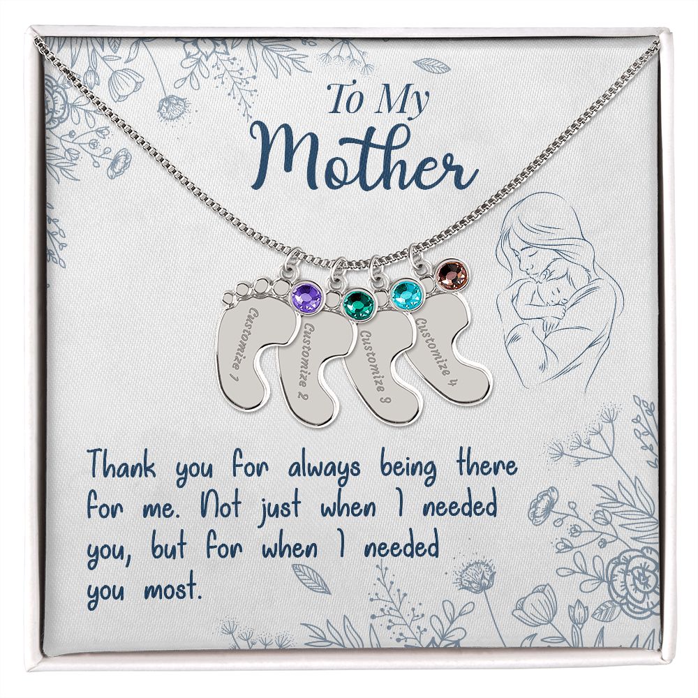 ENGRAVED BABY FEET WITH NAME AND BIRTHSTONE, NECKLACE GIFT FOR MOM WITH KIDS NAME, WITH MESSAGE CARD, MOTHER'S DAY GIFT, FOR MOM FROM SON/DAUGHTER