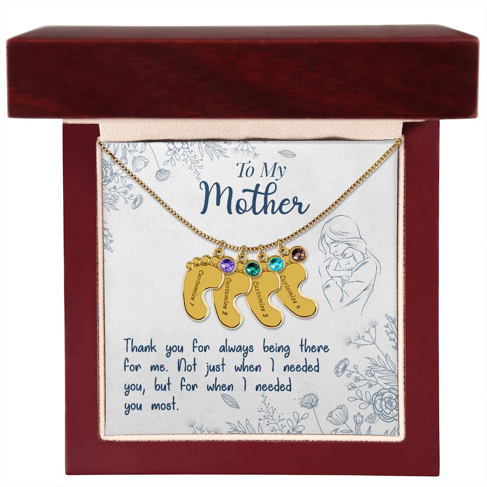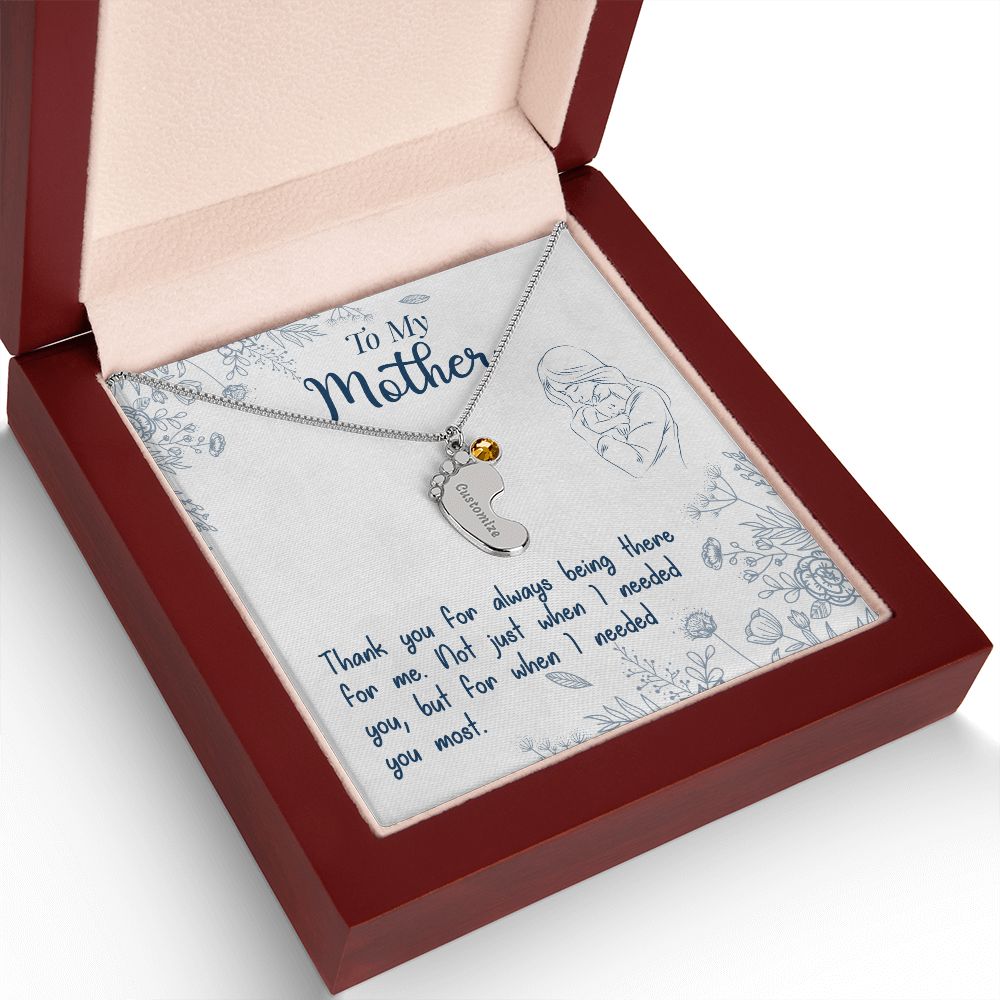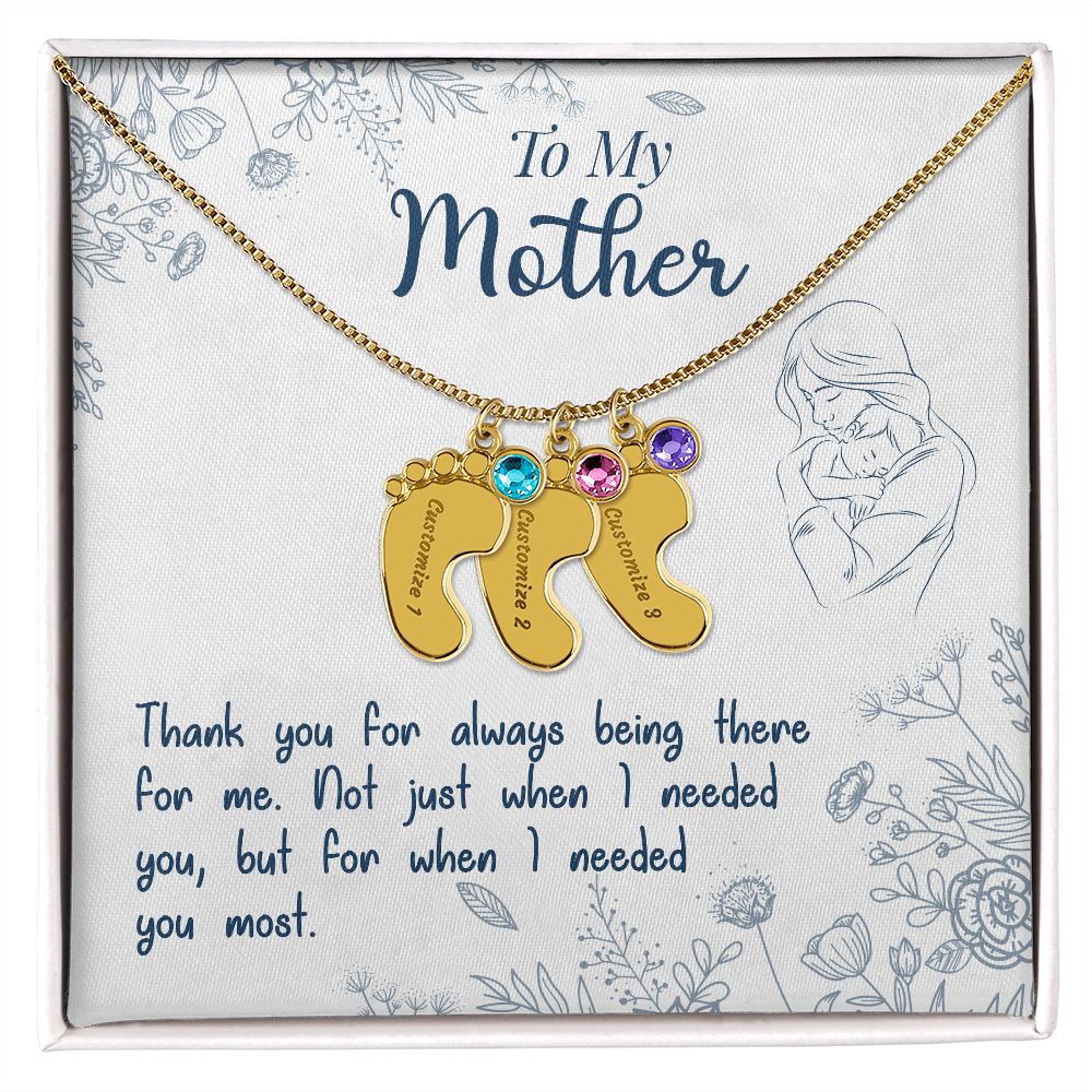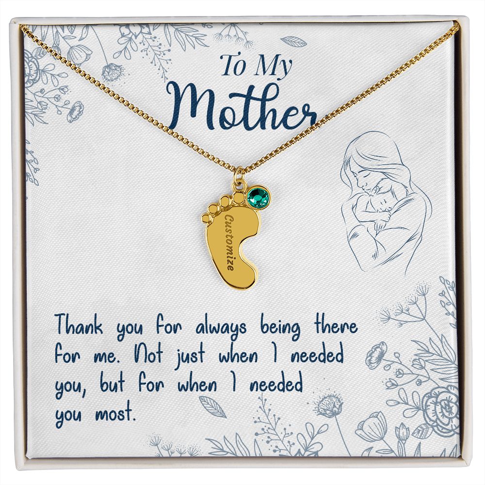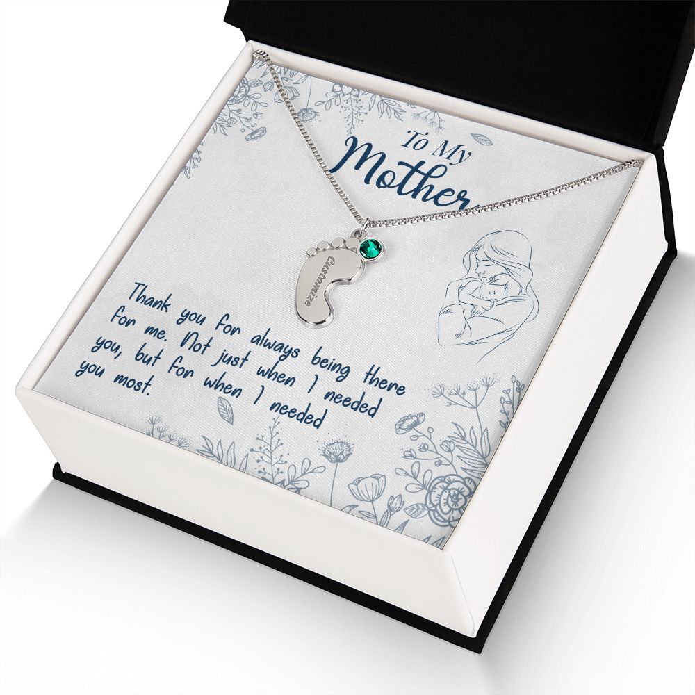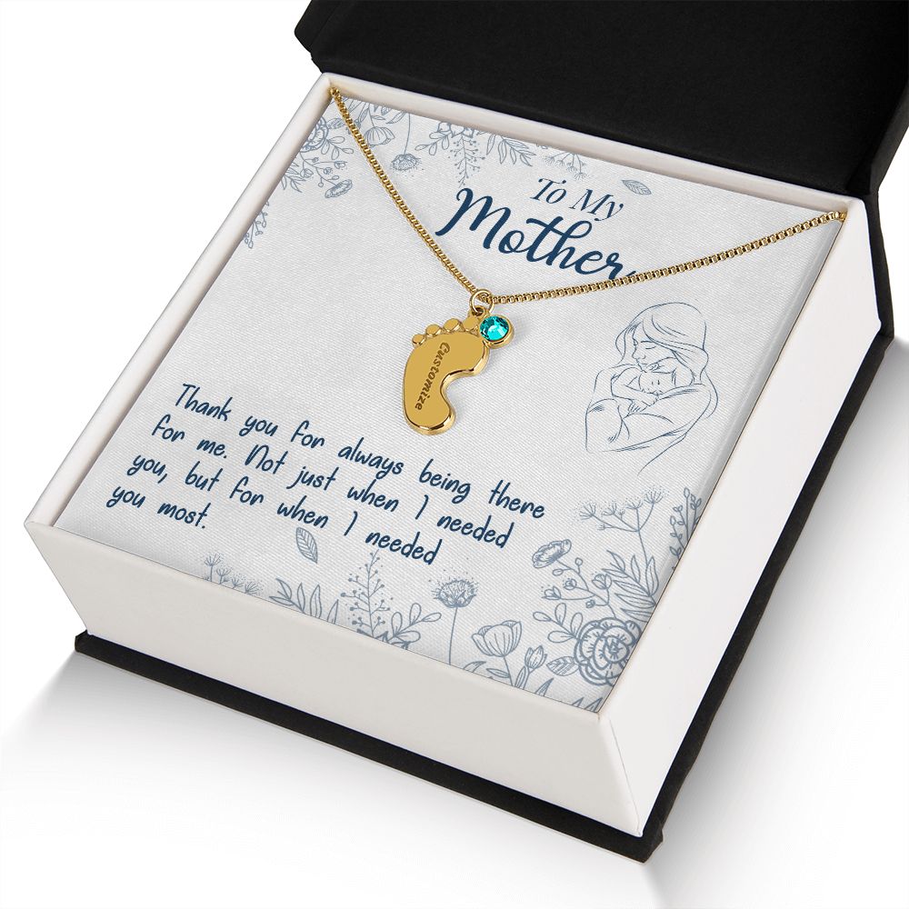 ENGRAVED BABY FEET WITH NAME AND BIRTHSTONE, NECKLACE GIFT FOR MOM WITH KIDS NAME, WITH MESSAGE CARD, MOTHER'S DAY GIFT, FOR MOM FROM SON/DAUGHTER