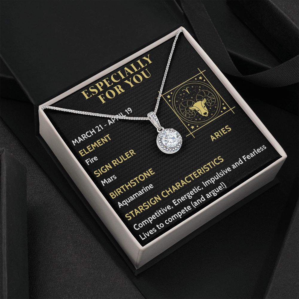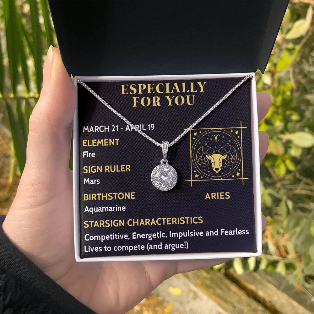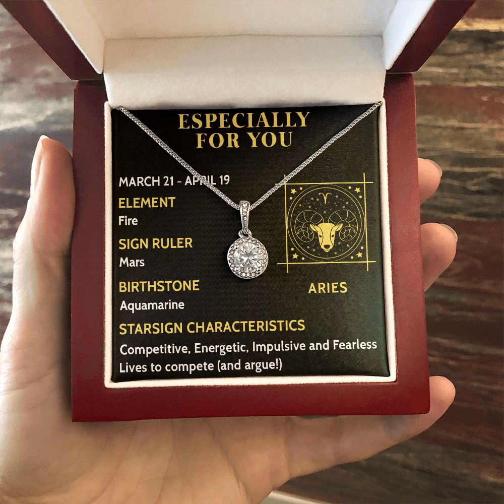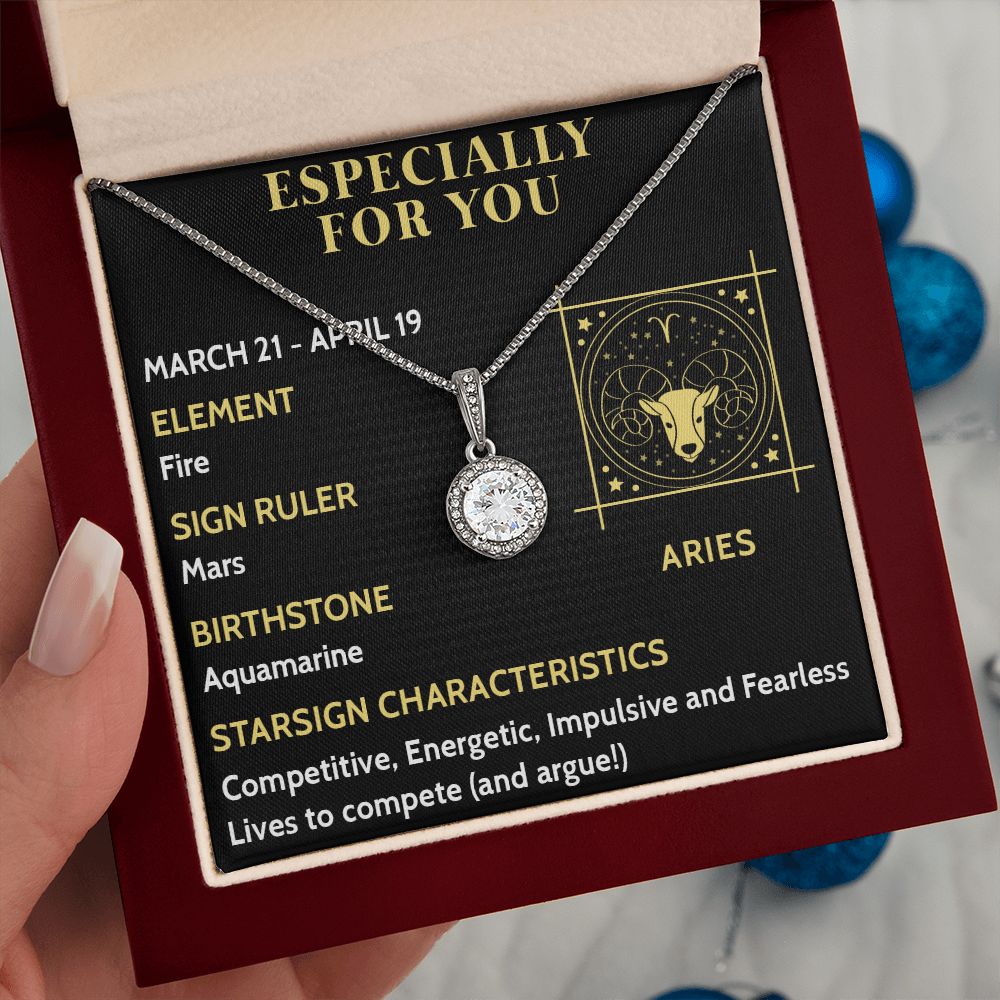 ESPECIALLY FOR YOU, ARIES MESSAGE CARD WITH ETERNAL HOPE NECKLACE, ZODIAC MESSAGE CARD, GIFT FOR HER