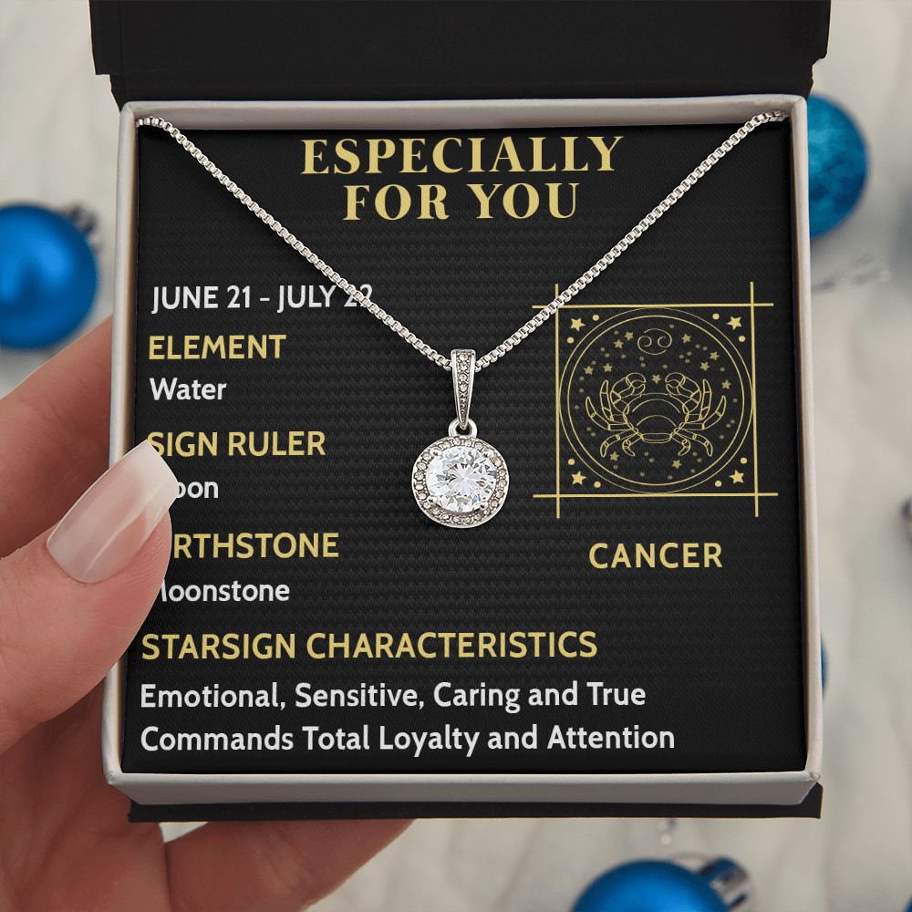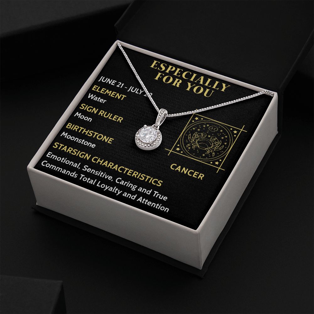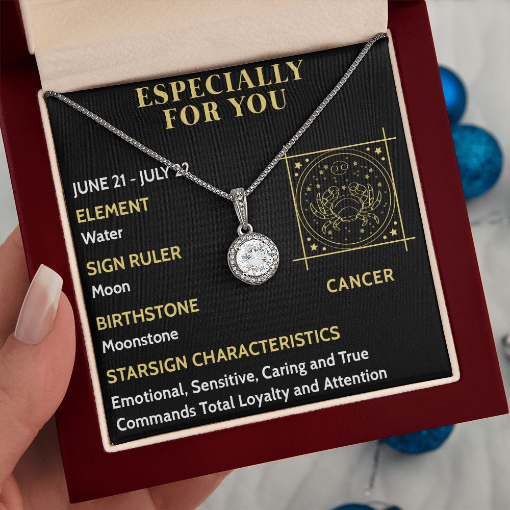 ESPECIALLY FOR YOU, CANCER MESSAGE CARD WITH ETERNAL HOPE NECKLACE, ZODIAC MESSAGE CARD, GIFT FOR HER
