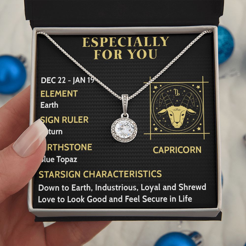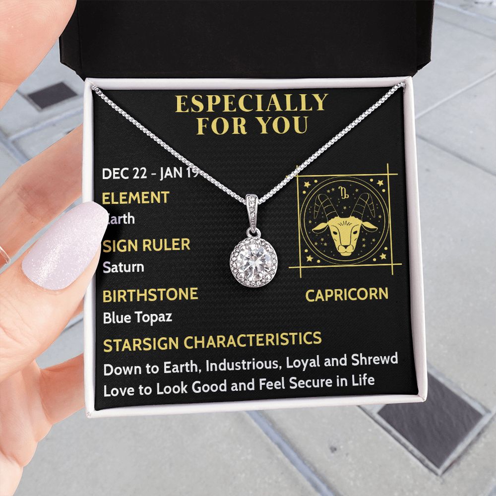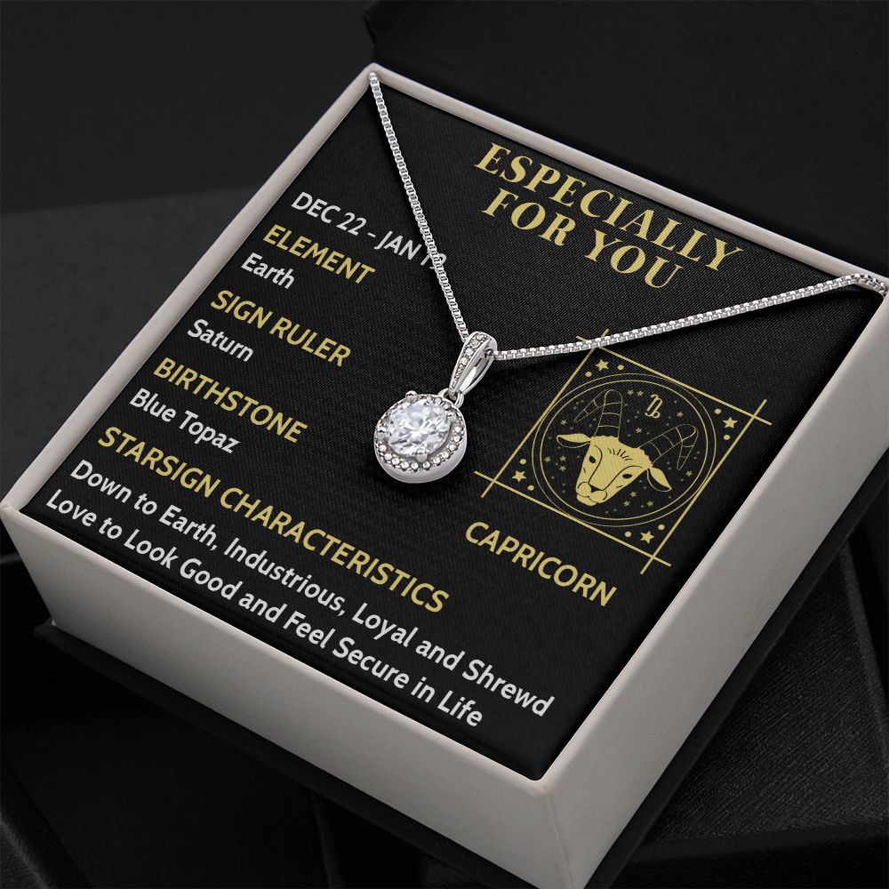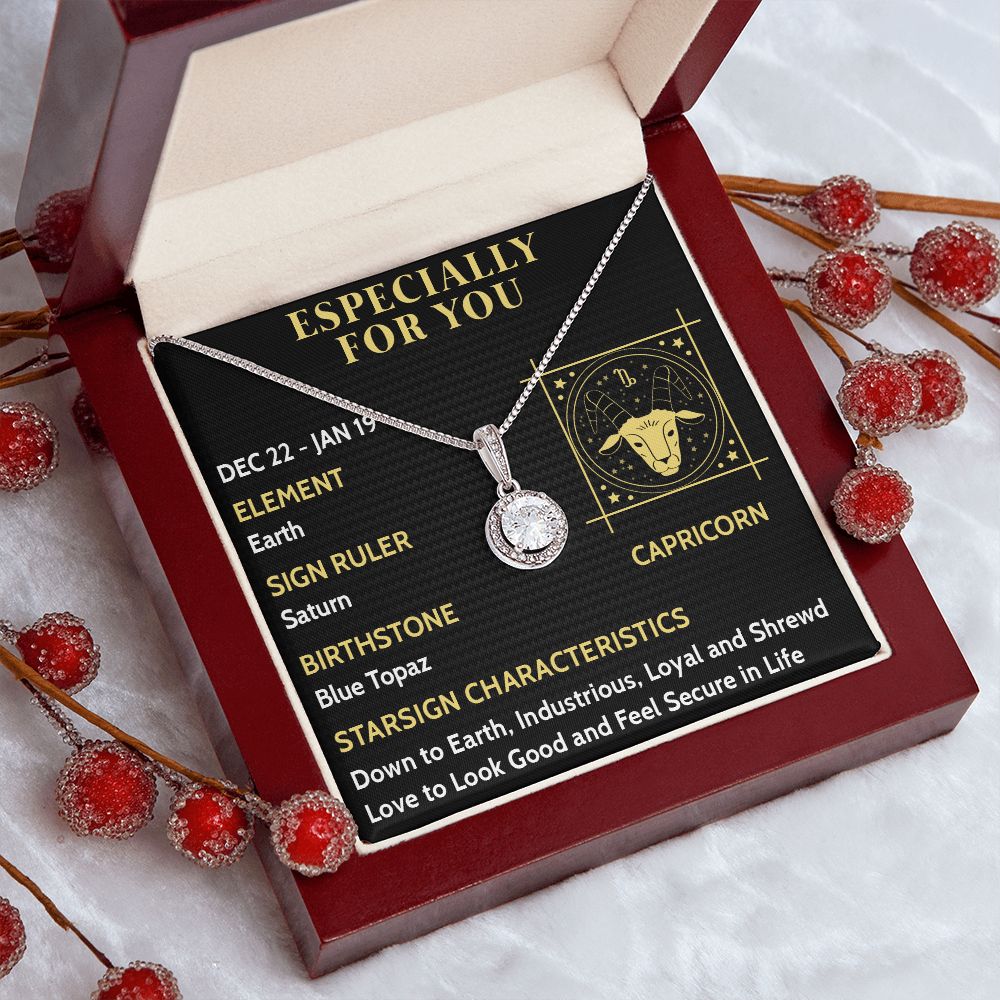 ESPECIALLY FOR YOU, CAPRICORN MESSAGE CARD WITH ETERNAL HOPE NECKLACE, ZODIAC MESSAGE CARD, GIFT FOR HER