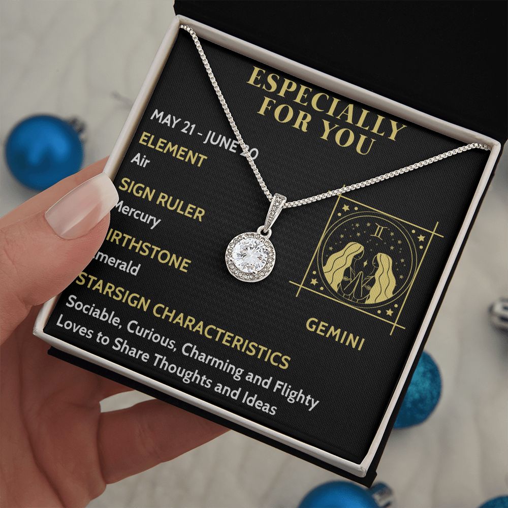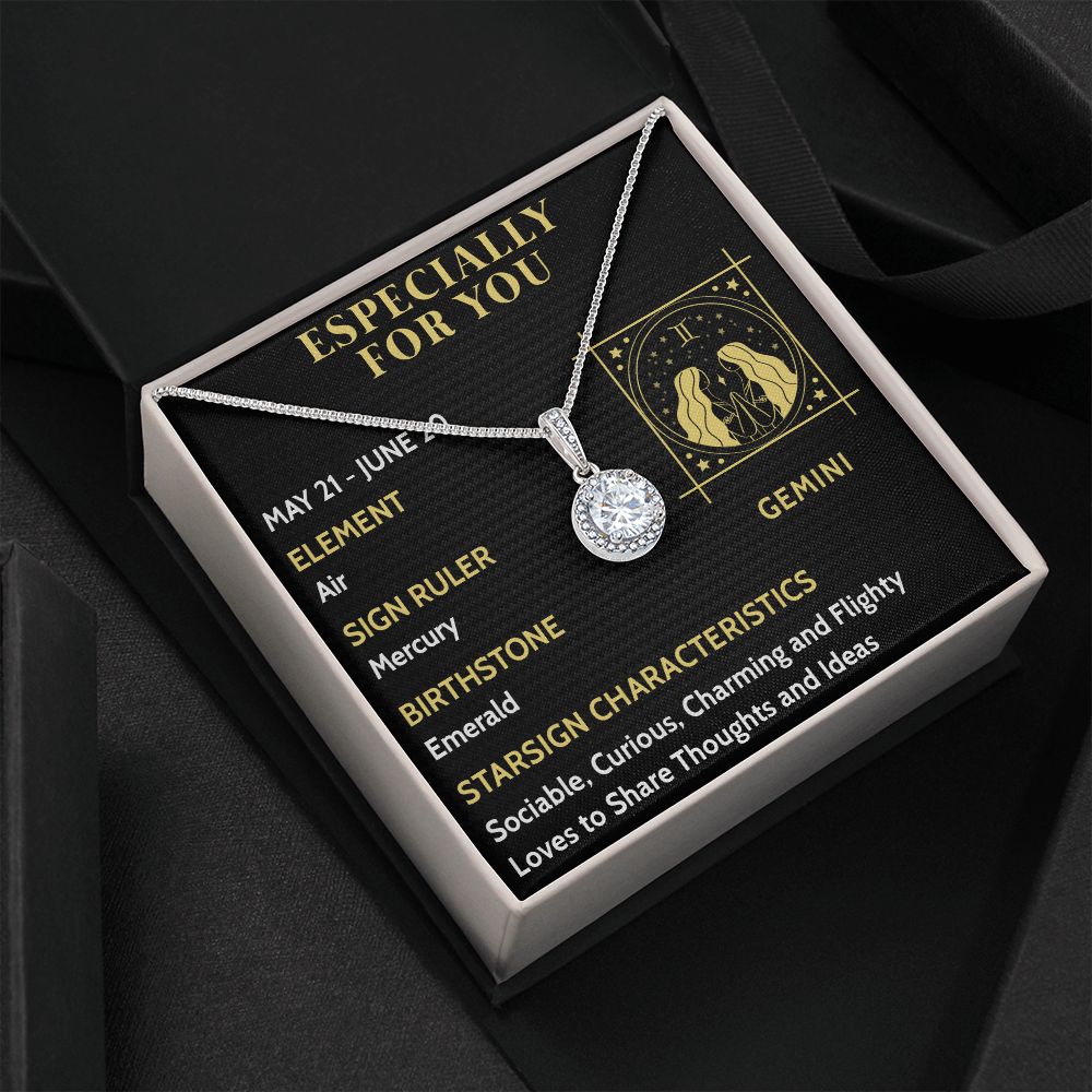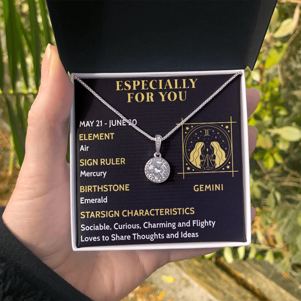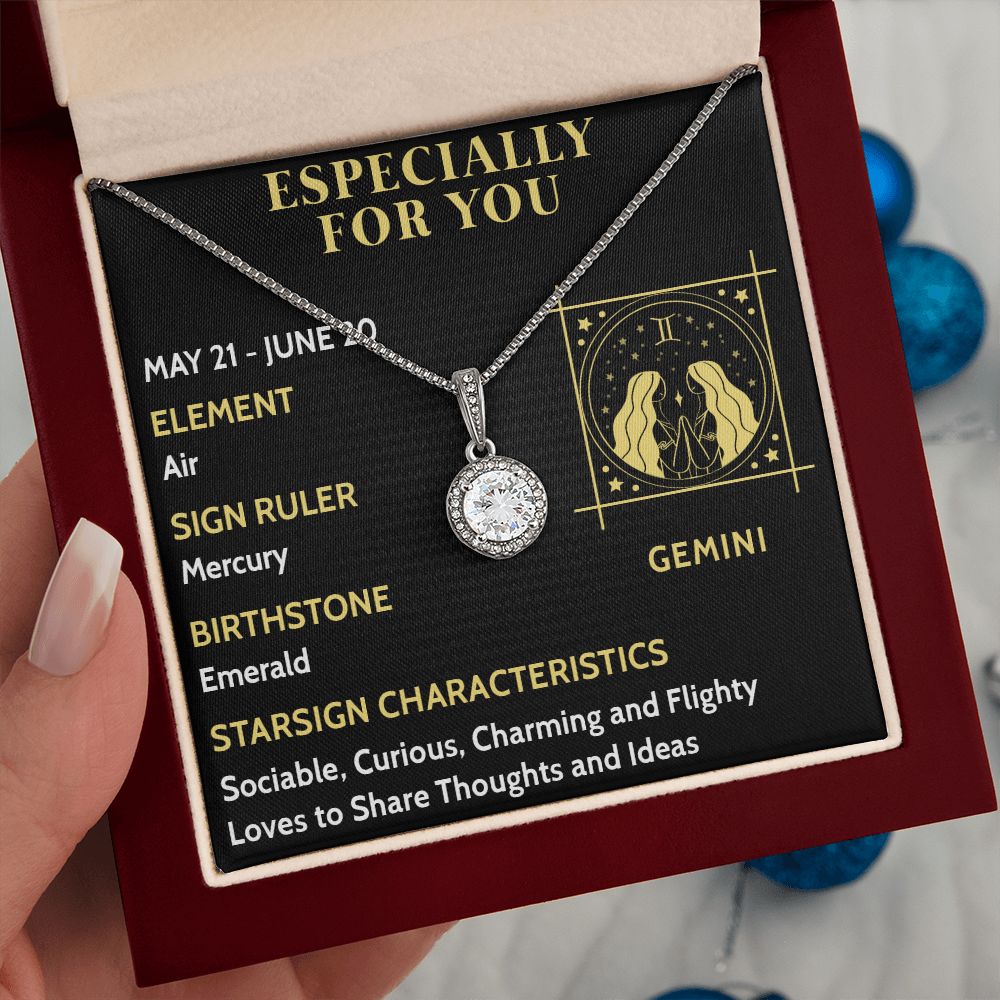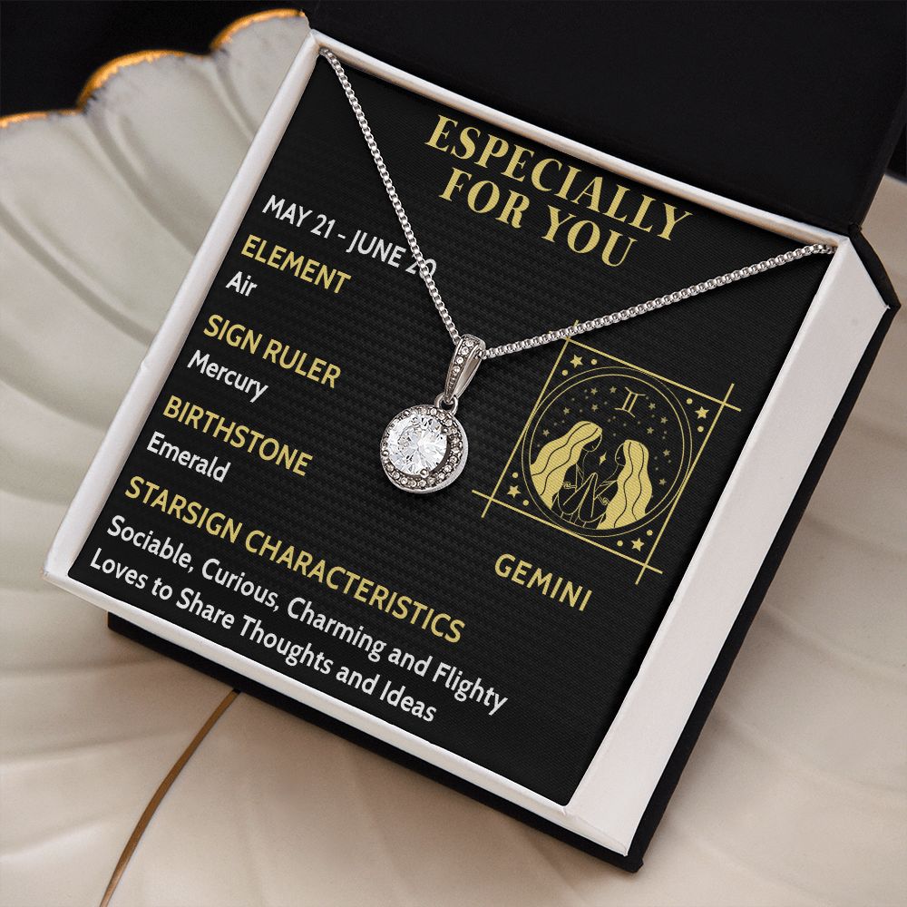 ESPECIALLY FOR YOU, GEMINI MESSAGE CARD WITH ETERNAL HOPE NECKLACE, ZODIAC MESSAGE CARD, GIFT FOR HER