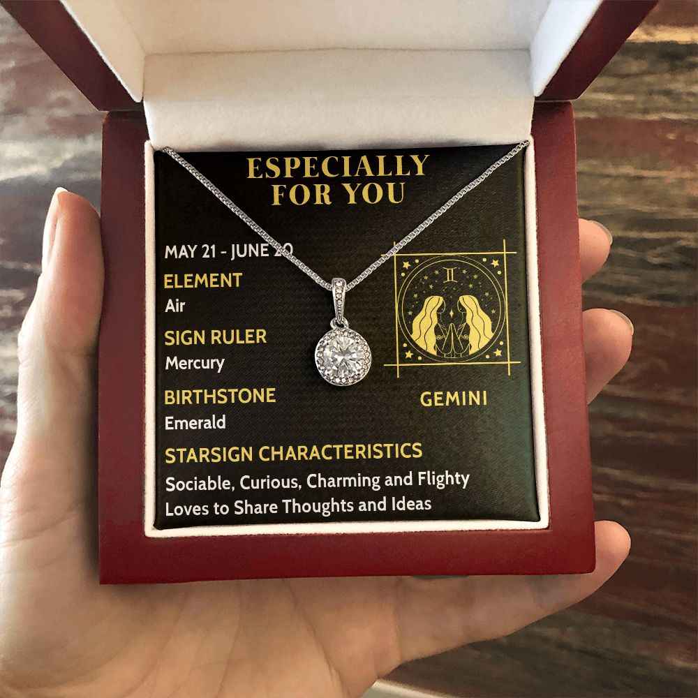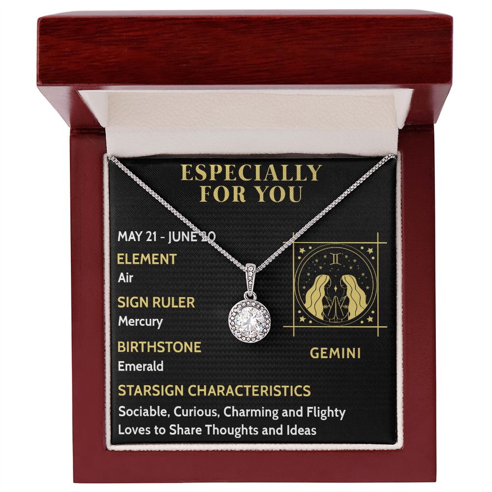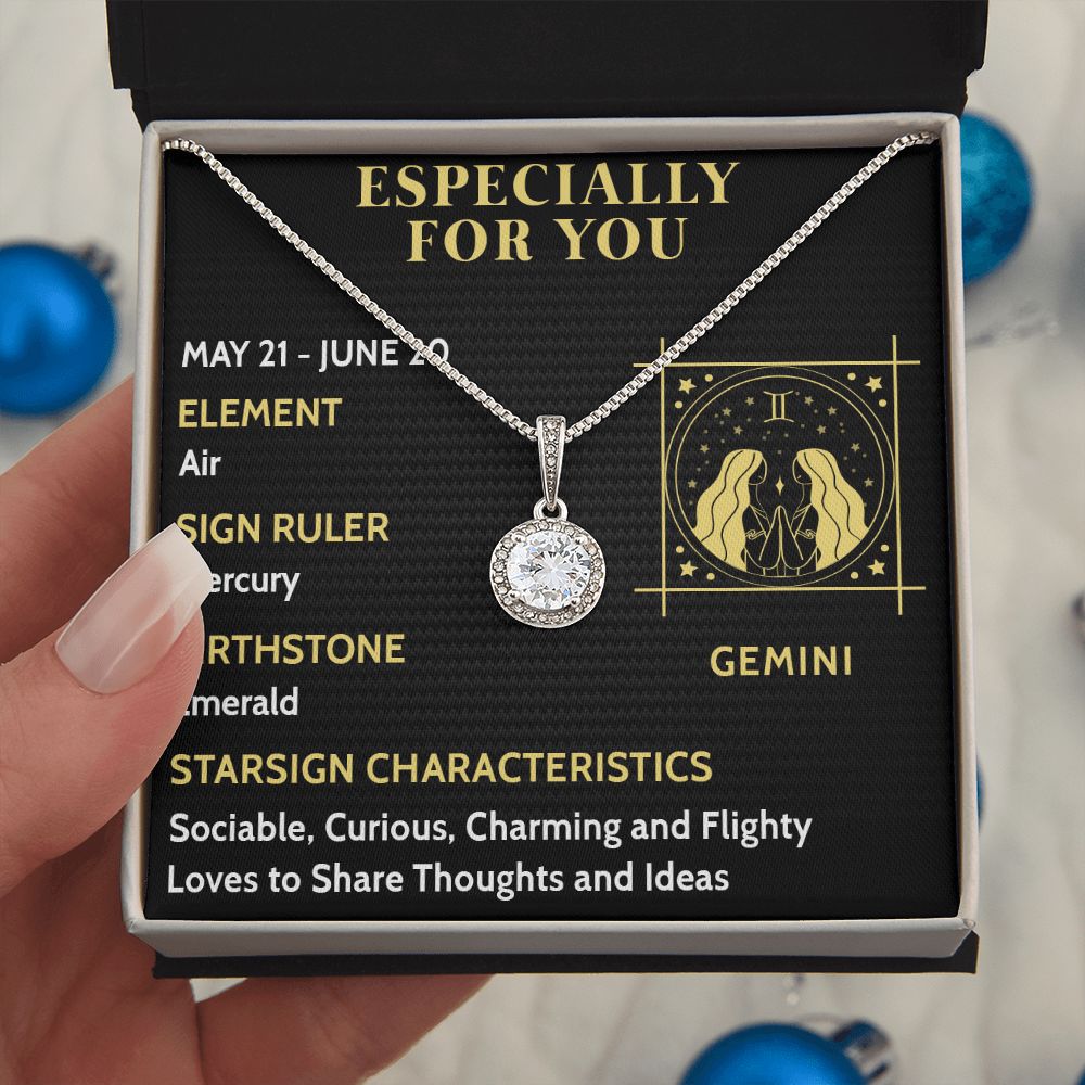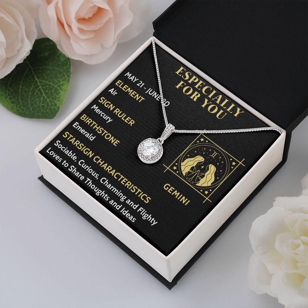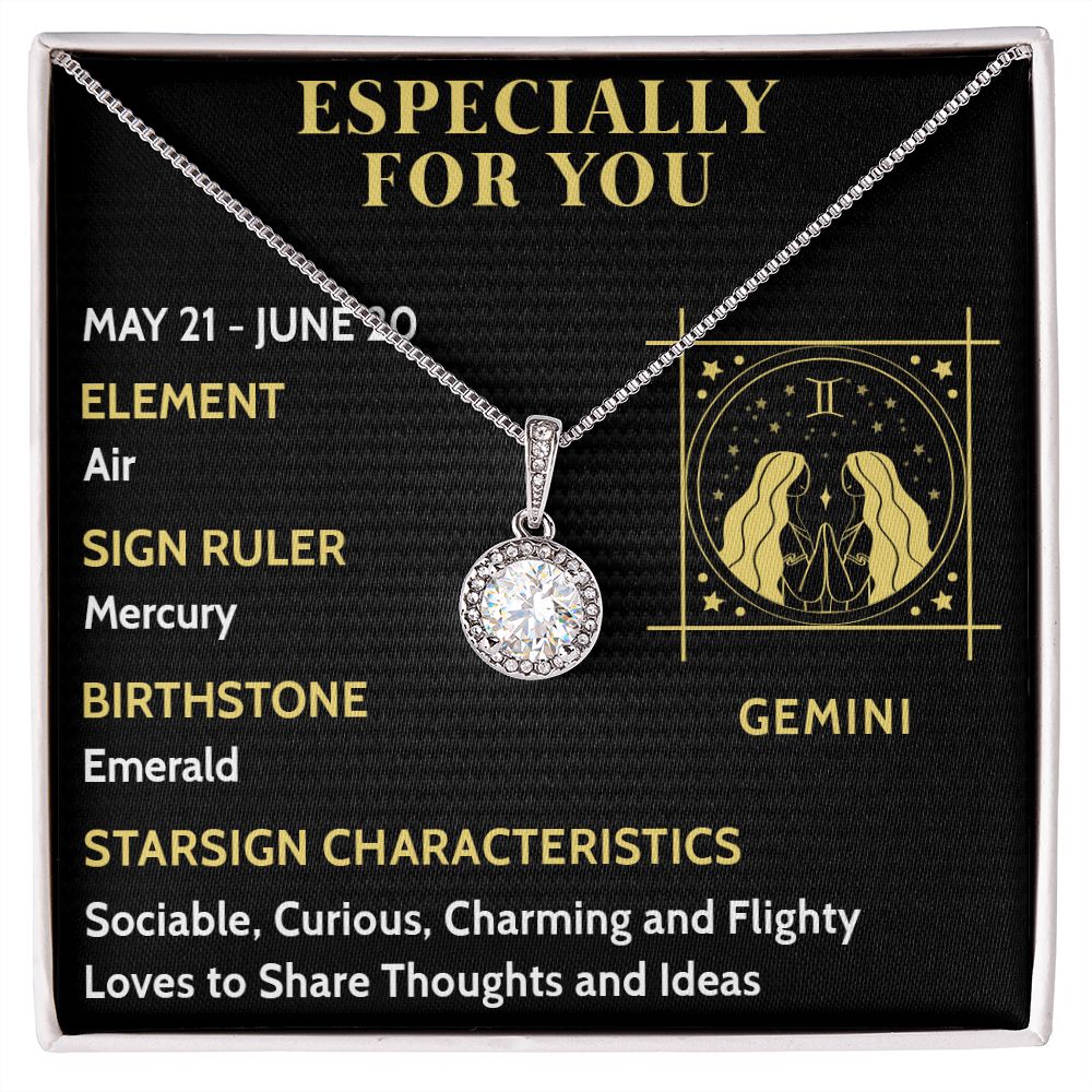 ESPECIALLY FOR YOU, GEMINI MESSAGE CARD WITH ETERNAL HOPE NECKLACE, ZODIAC MESSAGE CARD, GIFT FOR HER