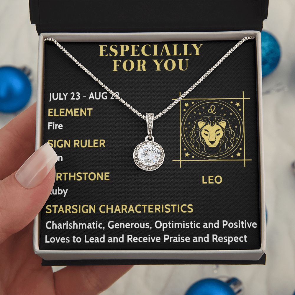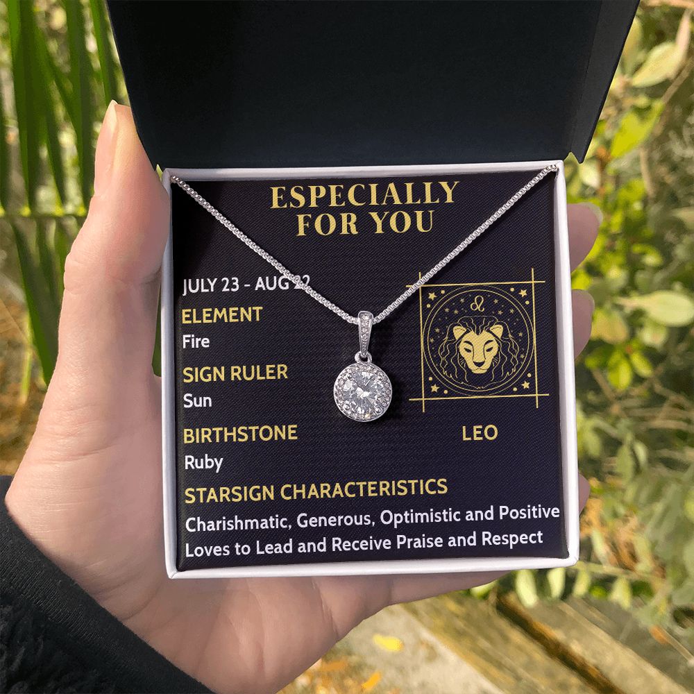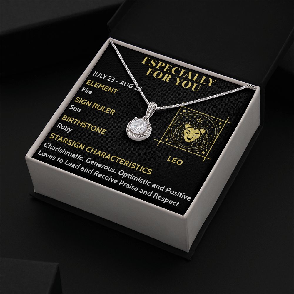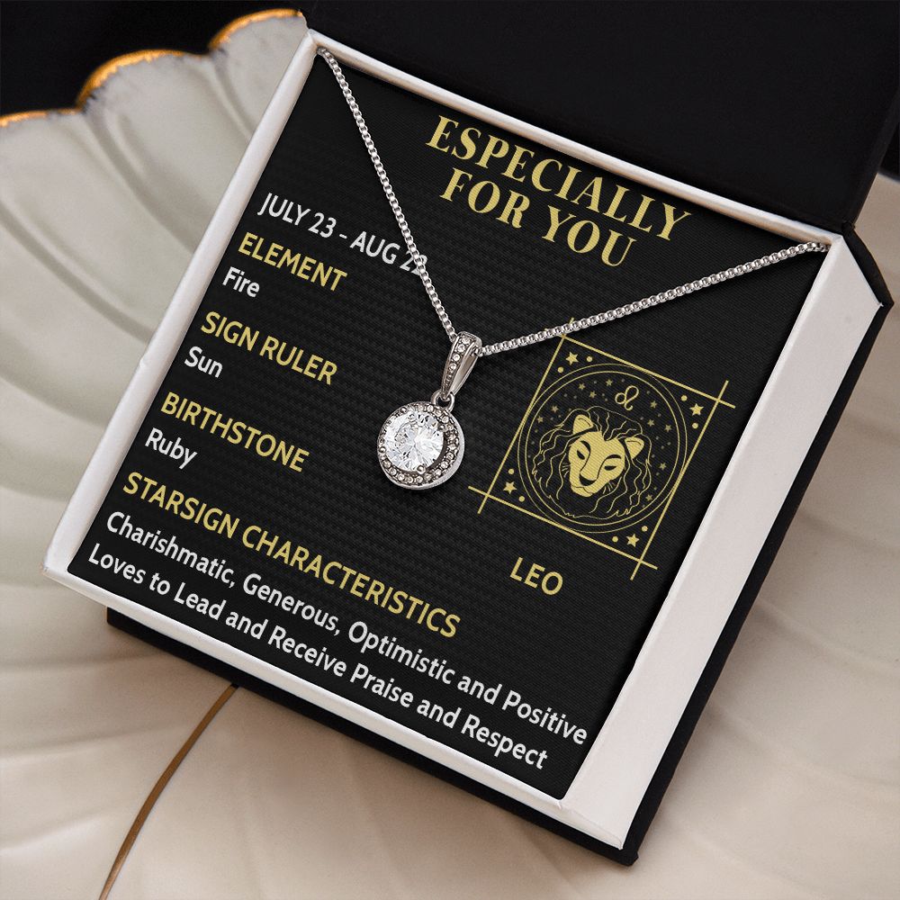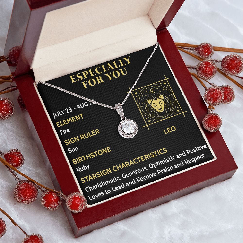 ESPECIALLY FOR YOU, LEO MESSAGE CARD WITH ETERNAL HOPE NECKLACE, ZODIAC MESSAGE CARD, GIFT FOR HER