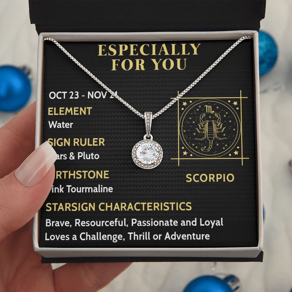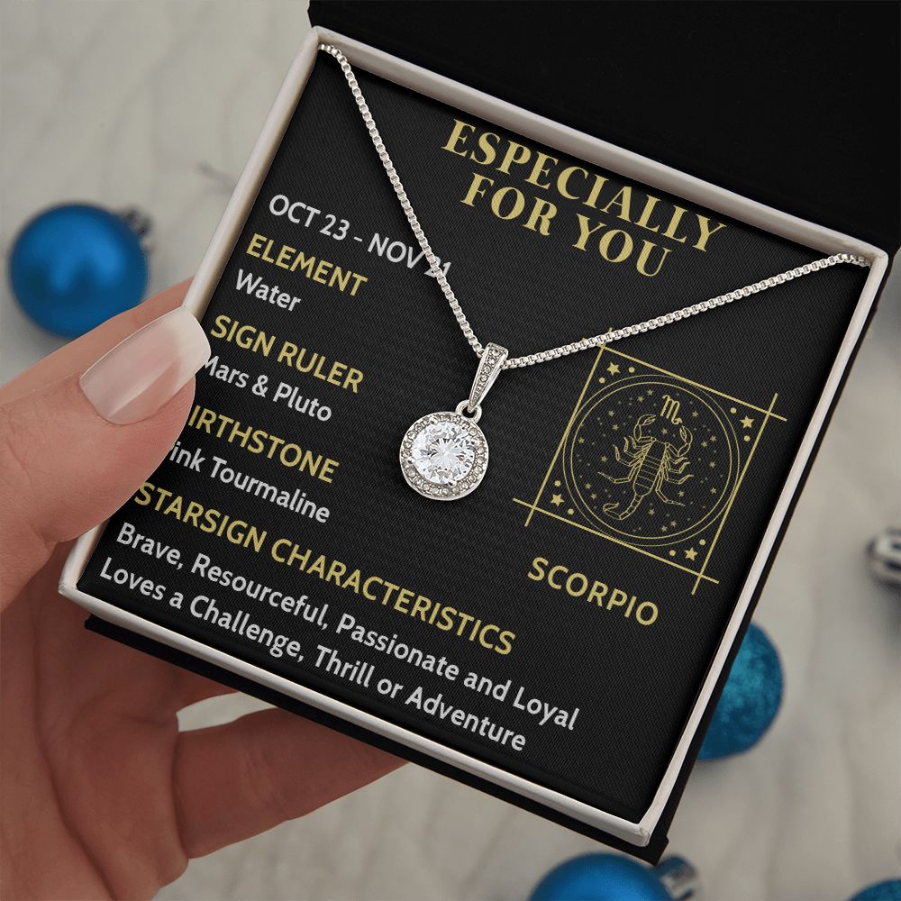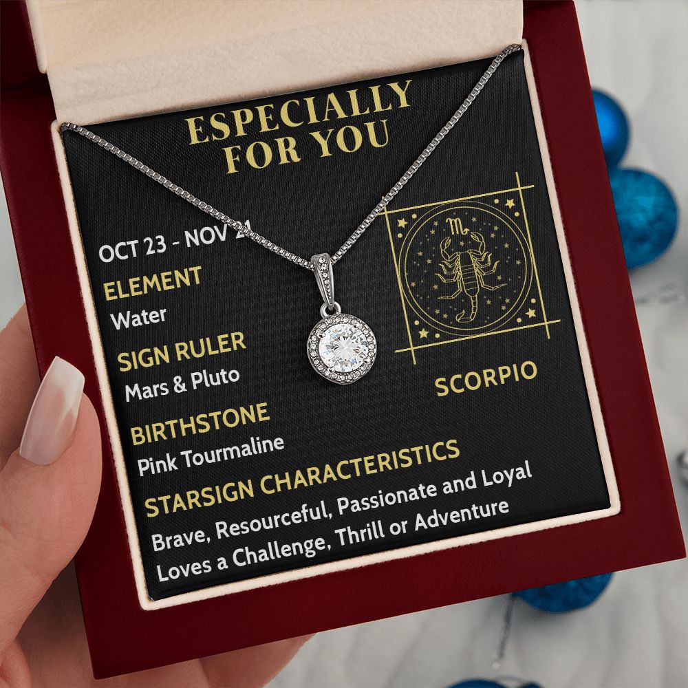 ESPECIALLY FOR YOU, SCORPIO MESSAGE CARD WITH ETERNAL HOPE NECKLACE, ZODIAC MESSAGE CARD, GIFT FOR HER