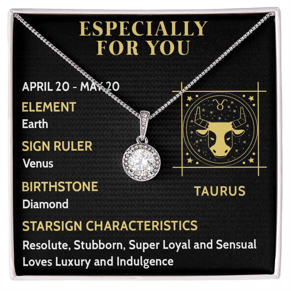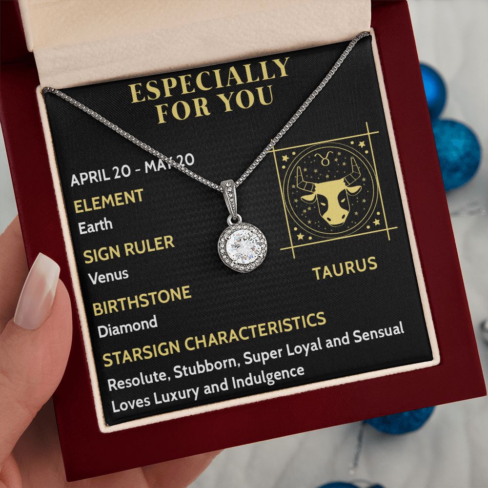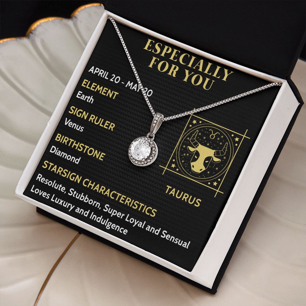 ESPECIALLY FOR YOU, TAURUS MESSAGE CARD WITH ETERNAL HOPE NECKLACE, ZODIAC MESSAGE CARD, GIFT FOR HER