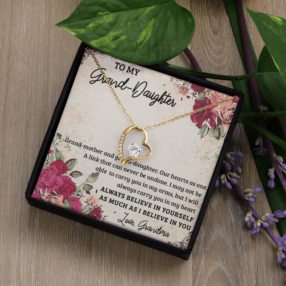 GRANDMOTHER AND GRANDDAUGHTER, FOREVER LOVE NECKLACE WITH MESSAGE CARD FOR GRANDDAUGHTER, BIRTHDAY GIFT FOR HER, FROM GRANDMA