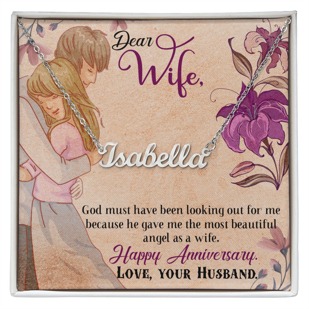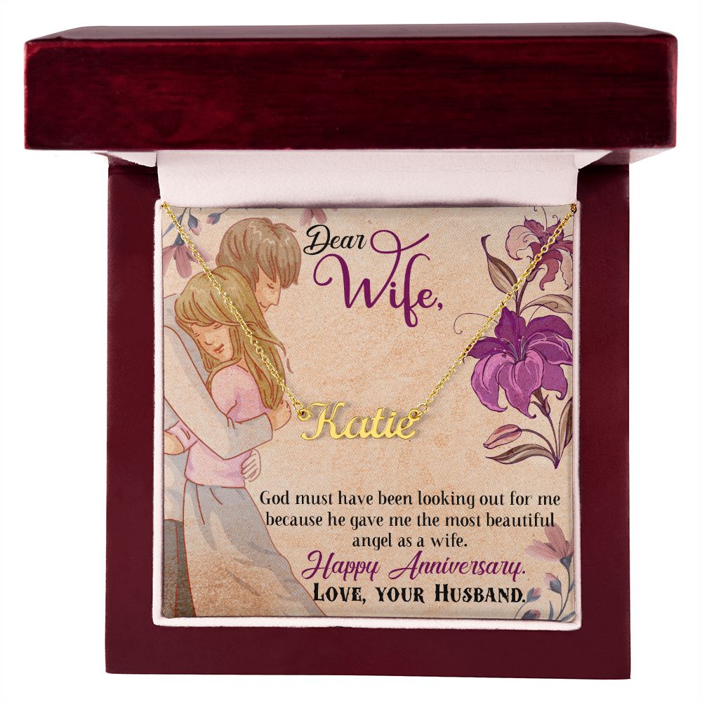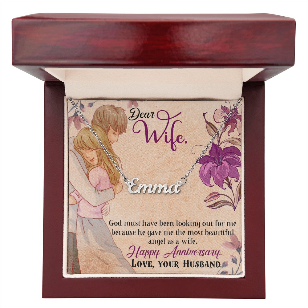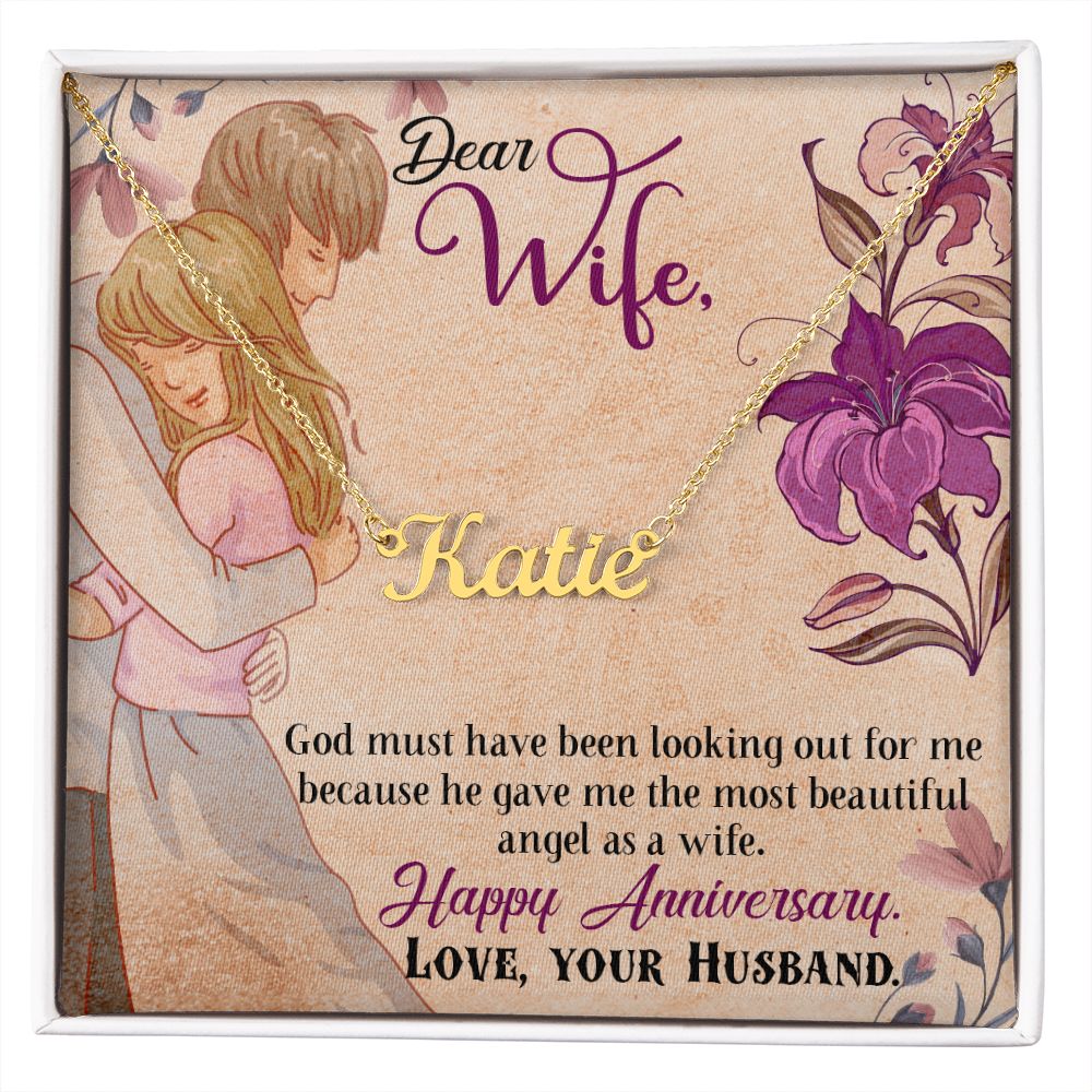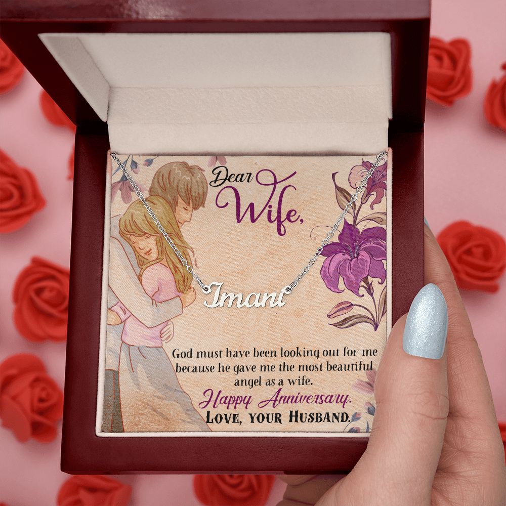 HAPPY ANNIVERSARY, CUSTOM NAME NECKLACE, GIFT FOR HER, NECKLACE PENDANT WITH MESSAGE CARD, FOR WIFE FROM HUSBAND