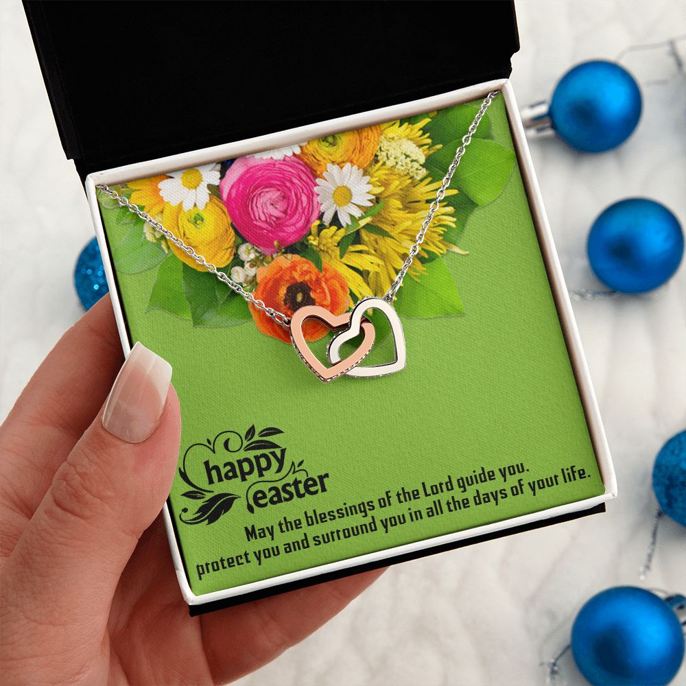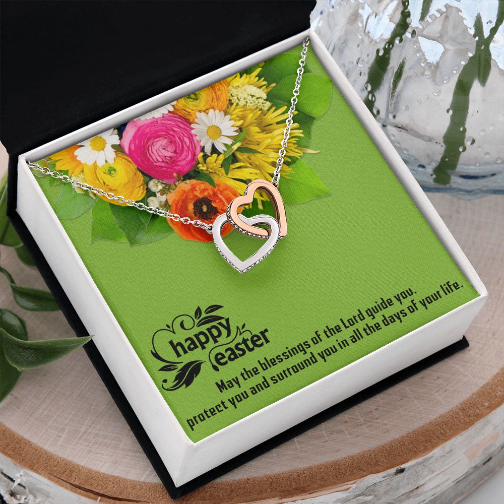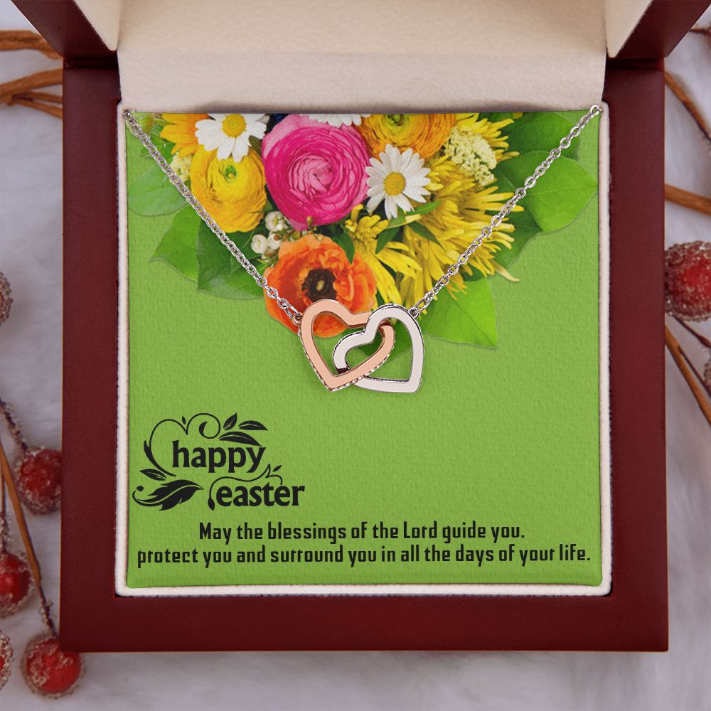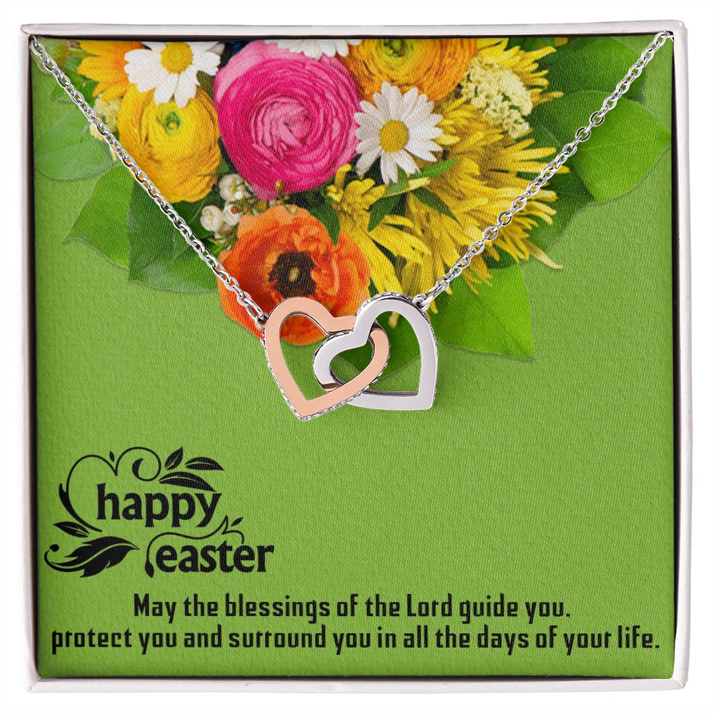 HAPPY EASTER, INTERLOCKING HEART NECKLACE WITH MESSAGE CARD, EASTER DAY GIFT FOR FAMILY AND FRIENDS