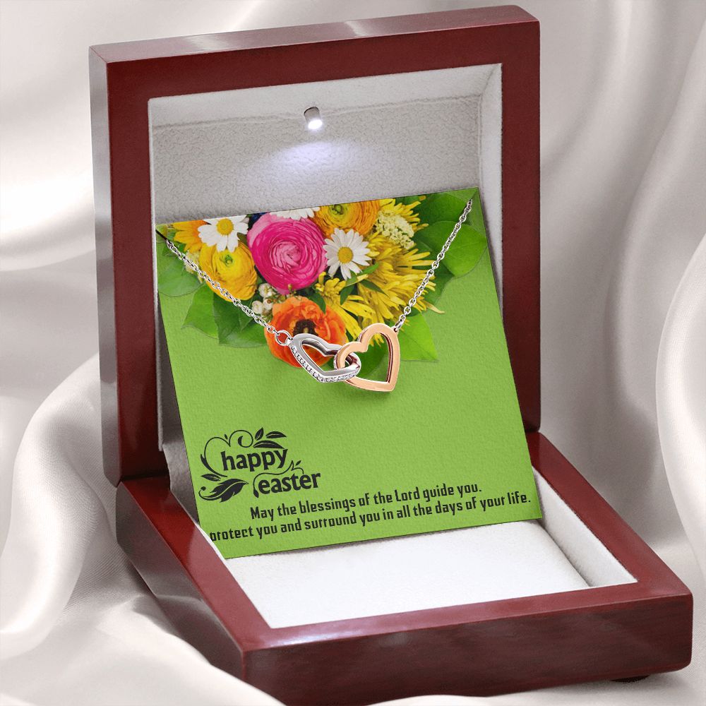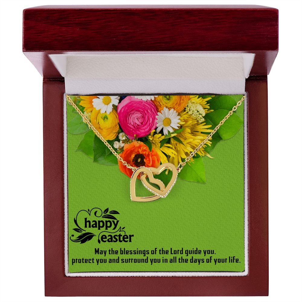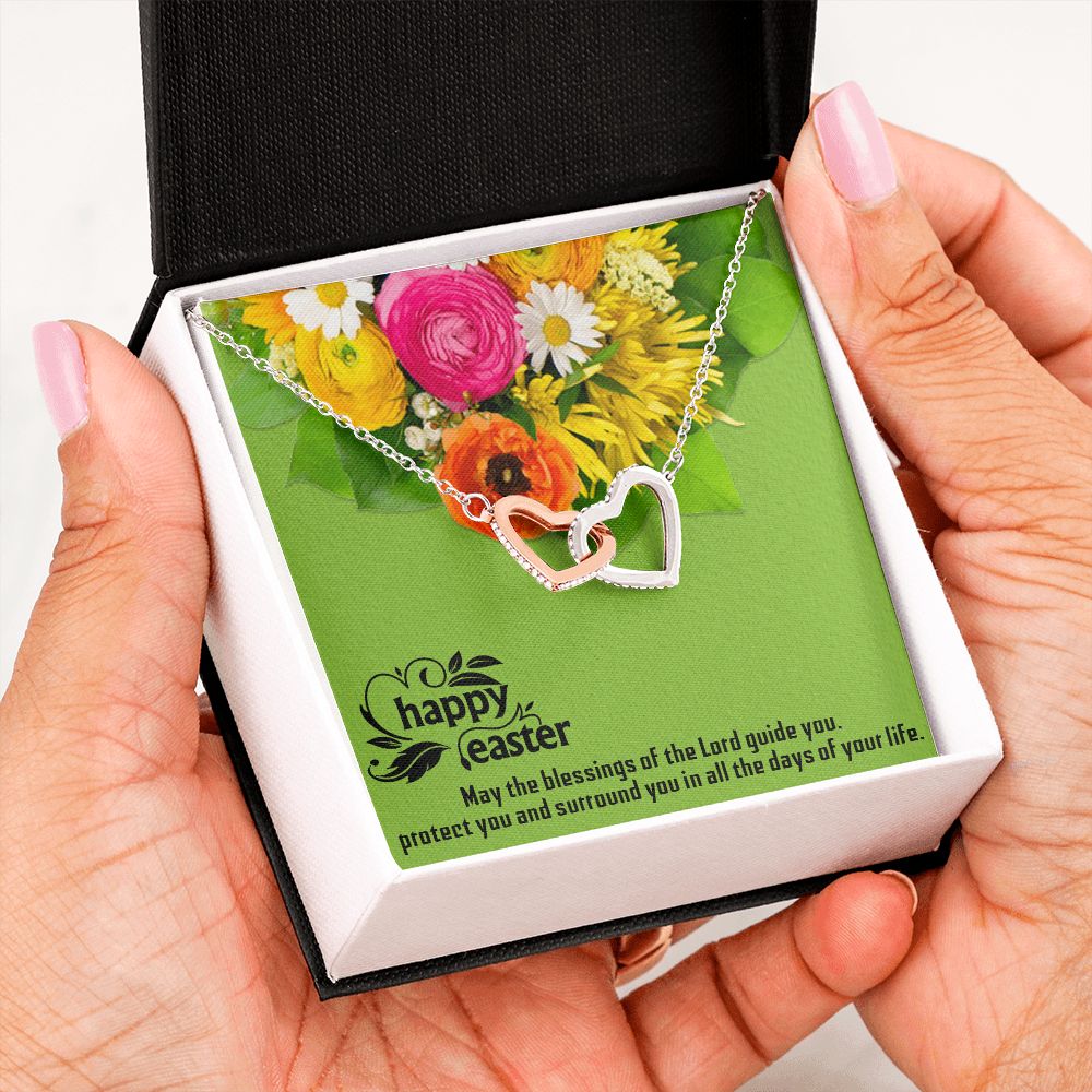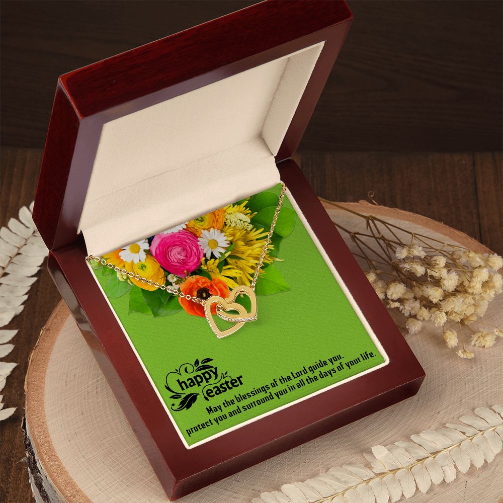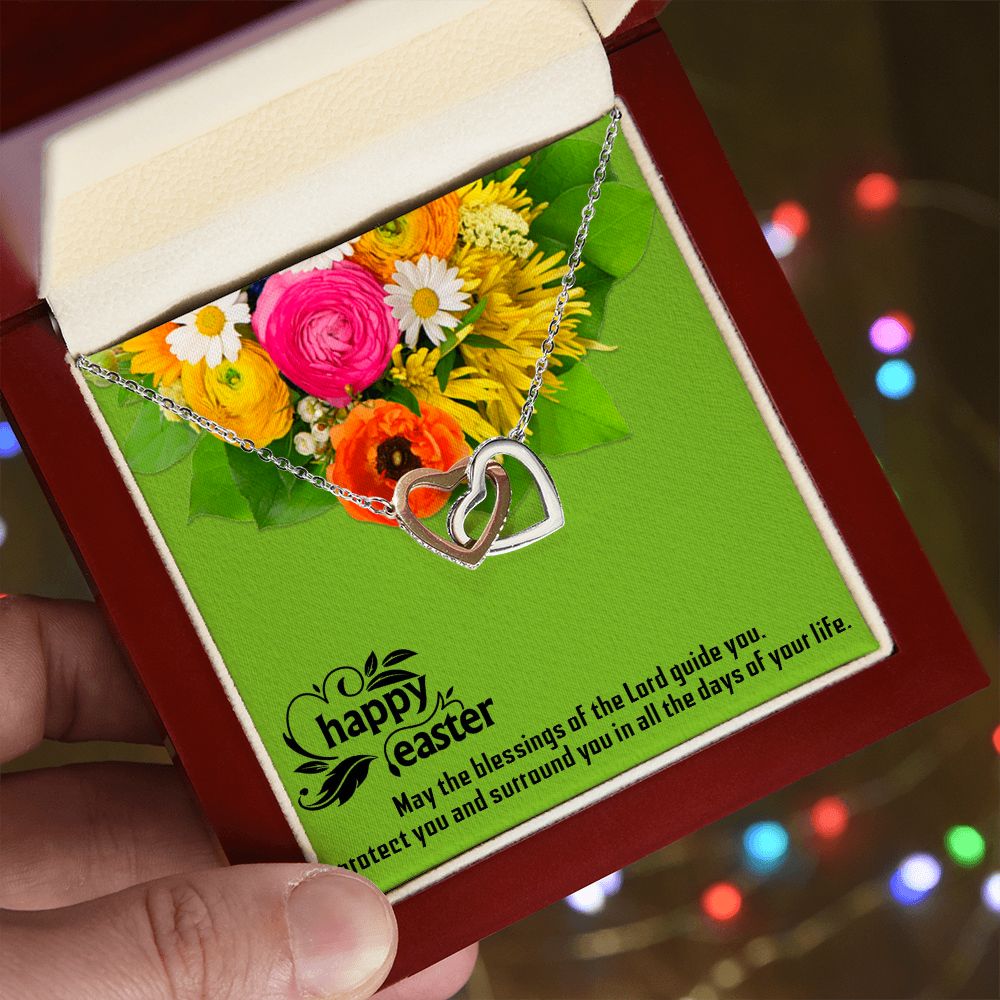 HAPPY EASTER, INTERLOCKING HEART NECKLACE WITH MESSAGE CARD, EASTER DAY GIFT FOR FAMILY AND FRIENDS