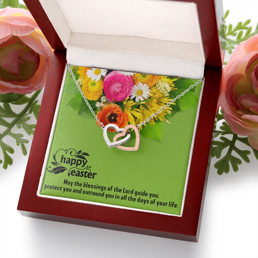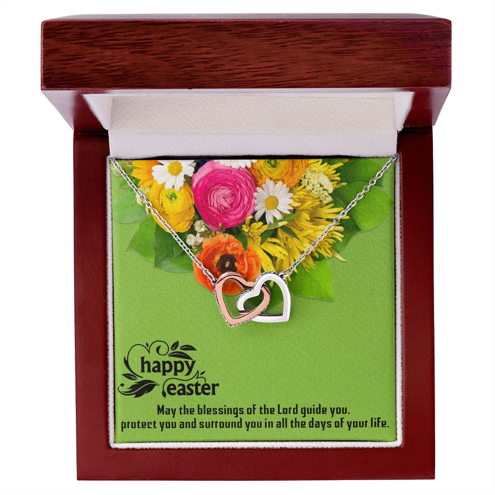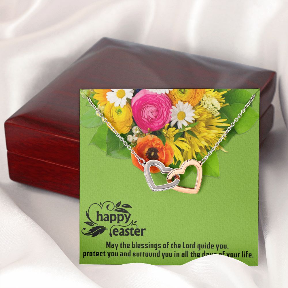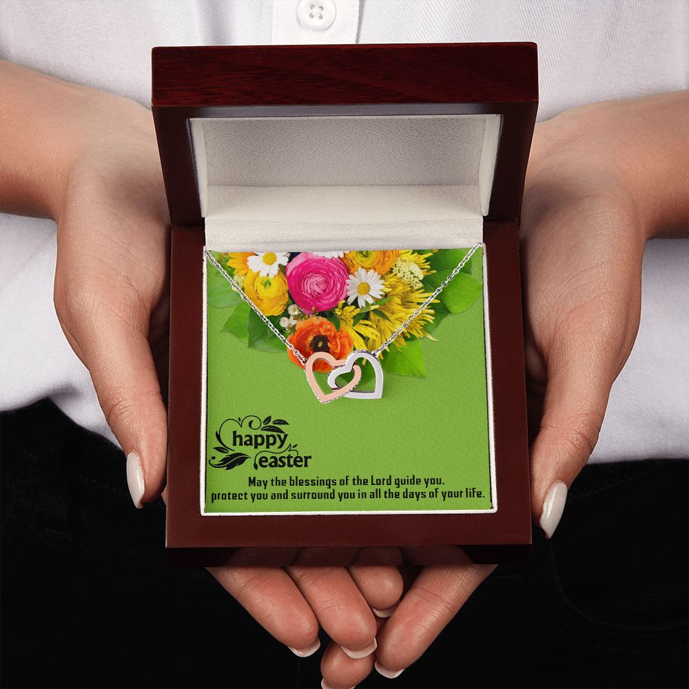 HAPPY EASTER, INTERLOCKING HEART NECKLACE WITH MESSAGE CARD, EASTER DAY GIFT FOR FAMILY AND FRIENDS