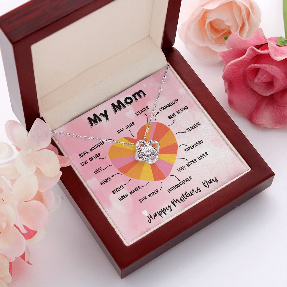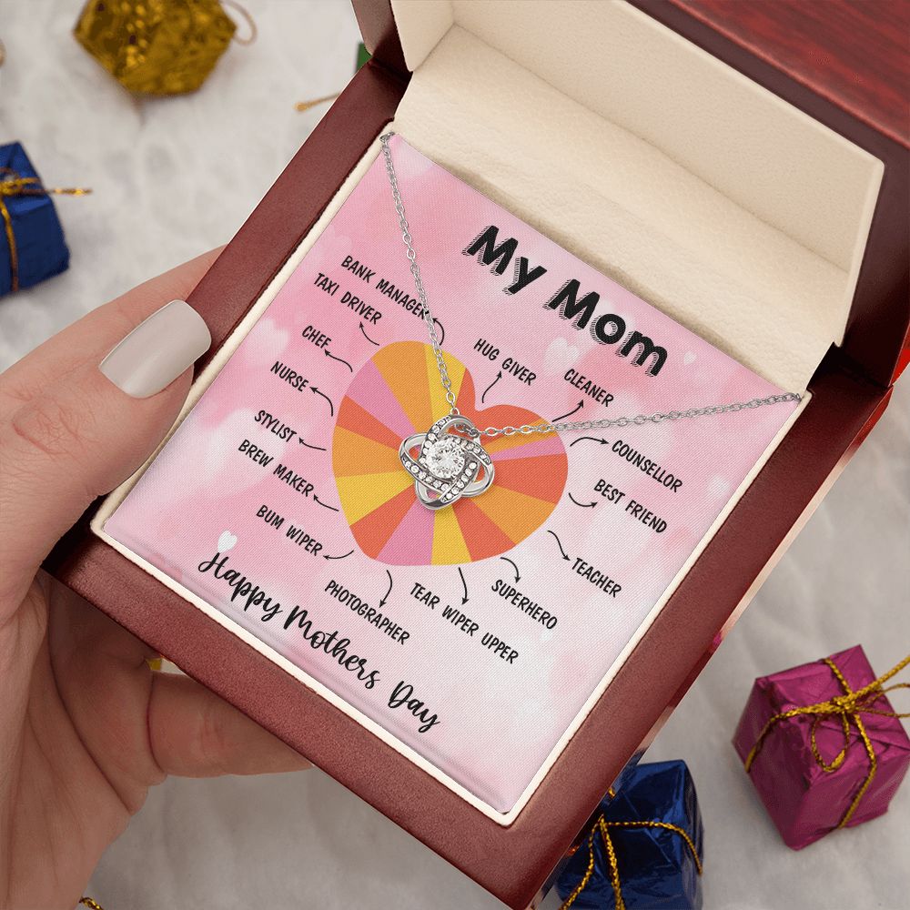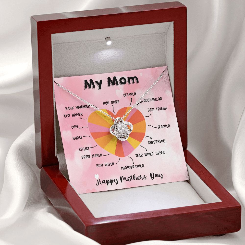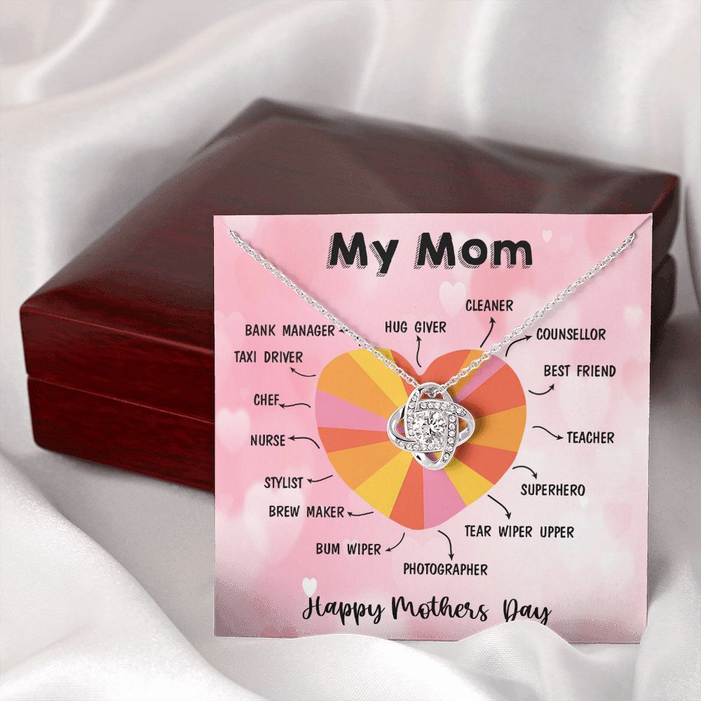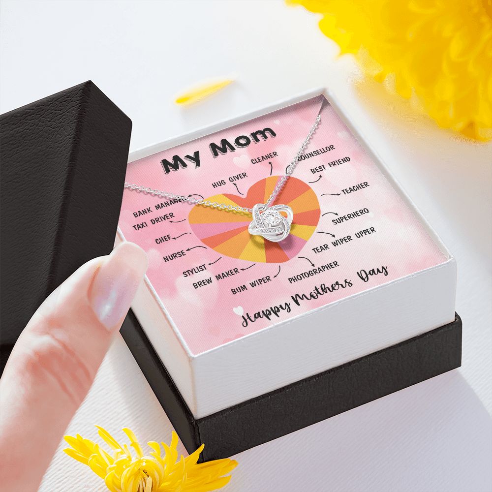 LOVE KNOT NECKLACE WITH MESSAGE CARD FOR MOM, MOTHER DAY GIFT, BIRTHDAY GIFT, FORM DAUGHTER/SON