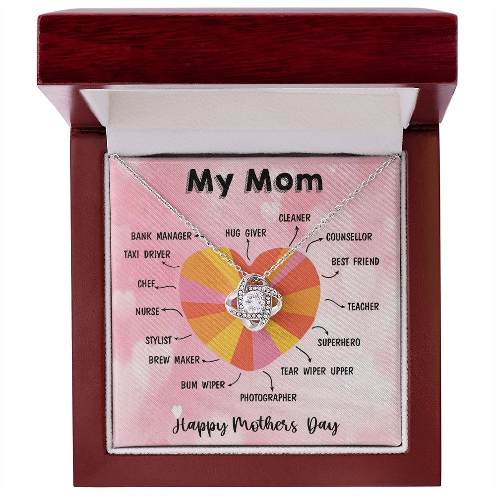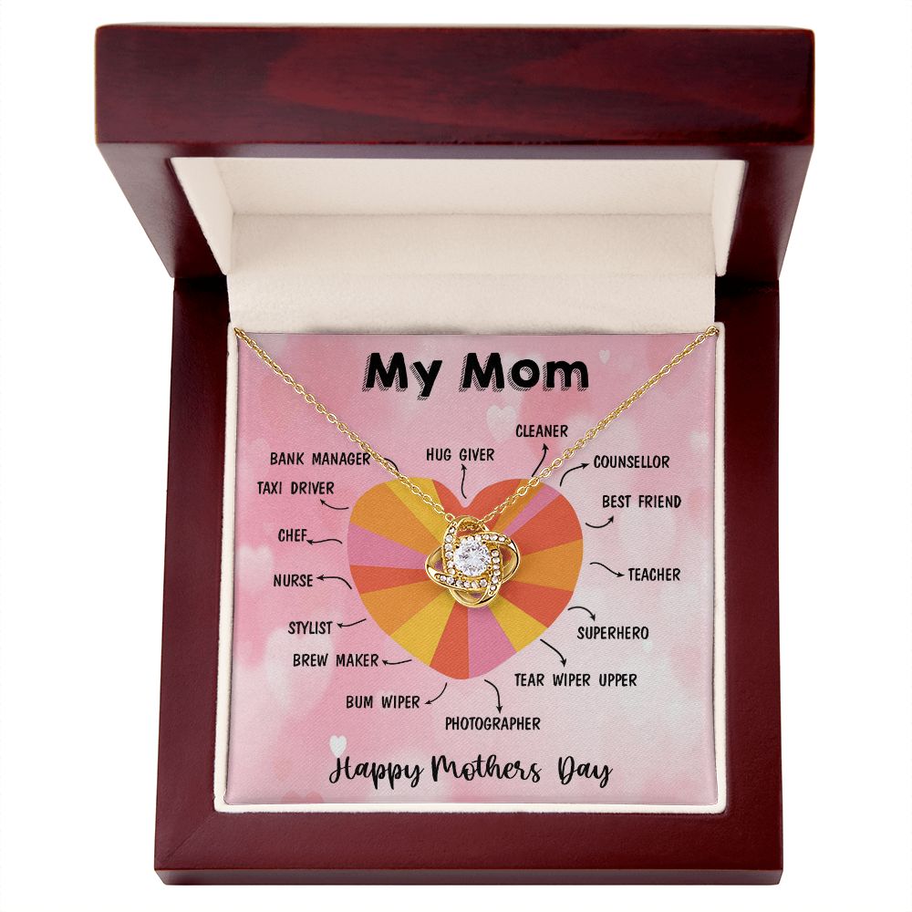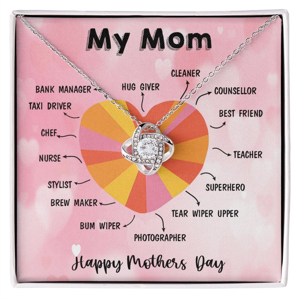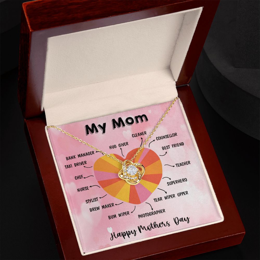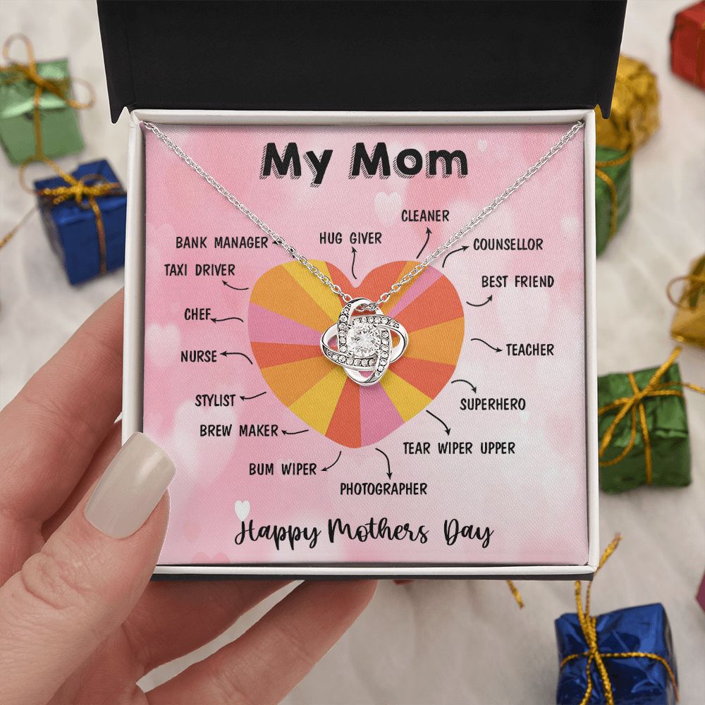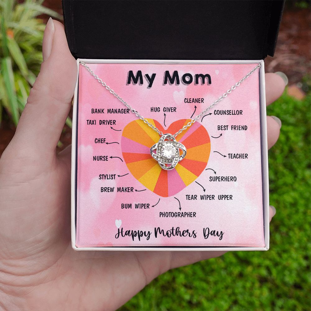 LOVE KNOT NECKLACE WITH MESSAGE CARD FOR MOM, MOTHER DAY GIFT, BIRTHDAY GIFT, FORM DAUGHTER/SON