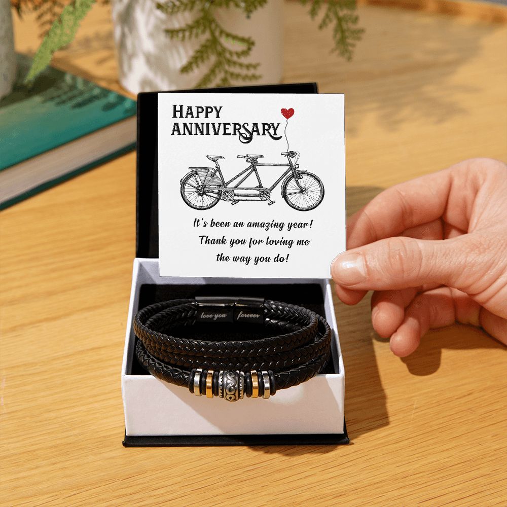 LOVE YOU FOREVER MEN'S BRACELET FOR HUSBAND, ANNIVERSARY GIFT FOR HIM, BRACELET WITH ENGRAVED MESSAGE AND MESSAGE CARD FOR YOUR HUSBAND