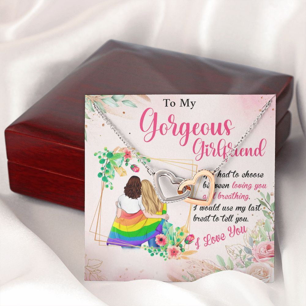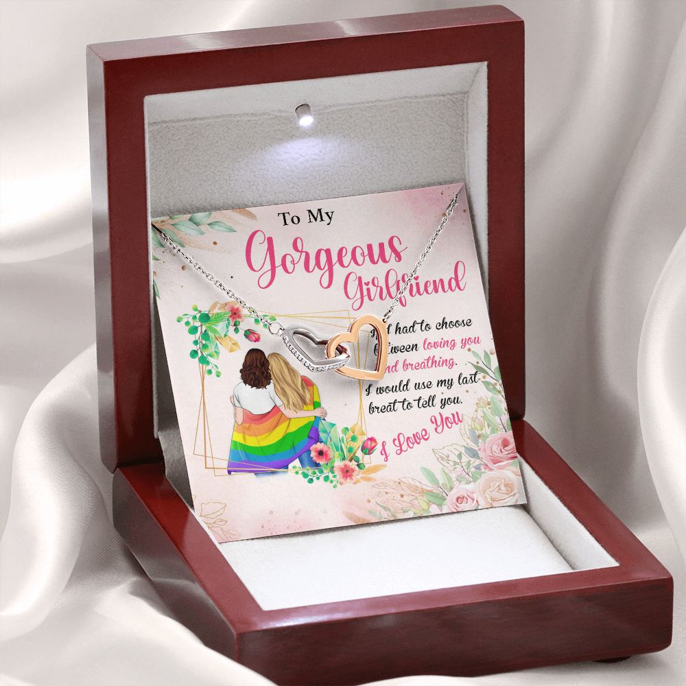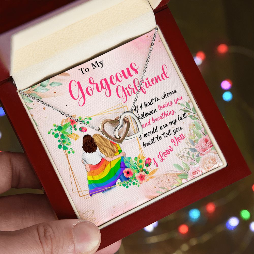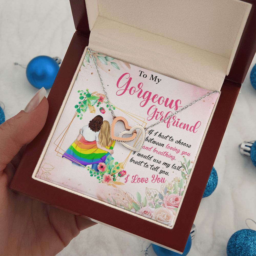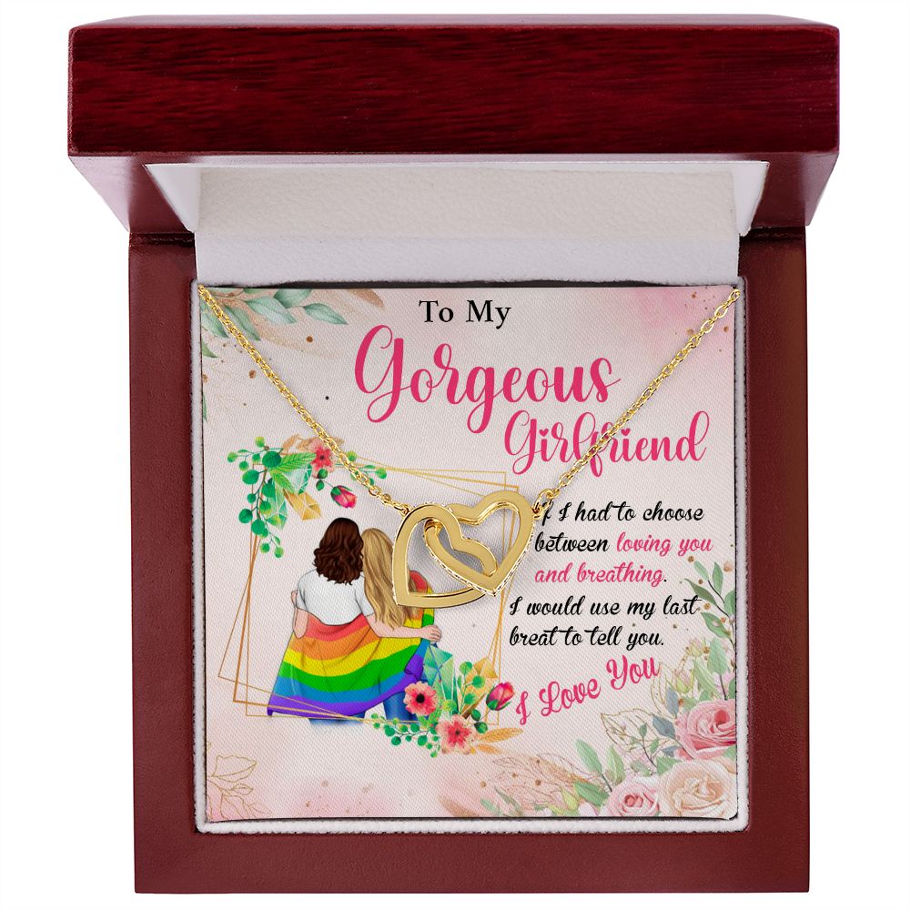 MY GORGEOUS GIRLFRIEND, INTERLOCKING HEART NECKLACE FOR LOVELY SOULMATE, FOR YOUR LGBTQ PARTNER, WITH MESSAGE CARD, PRIDE NECKLACE,