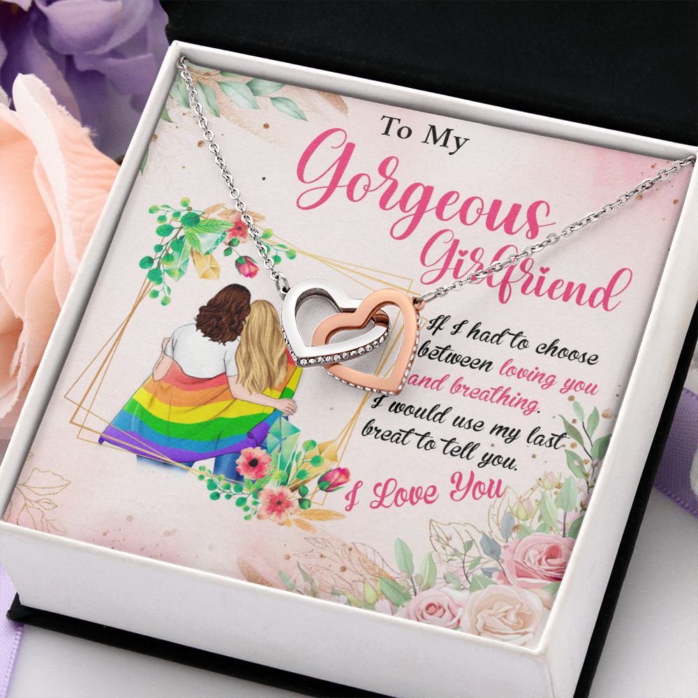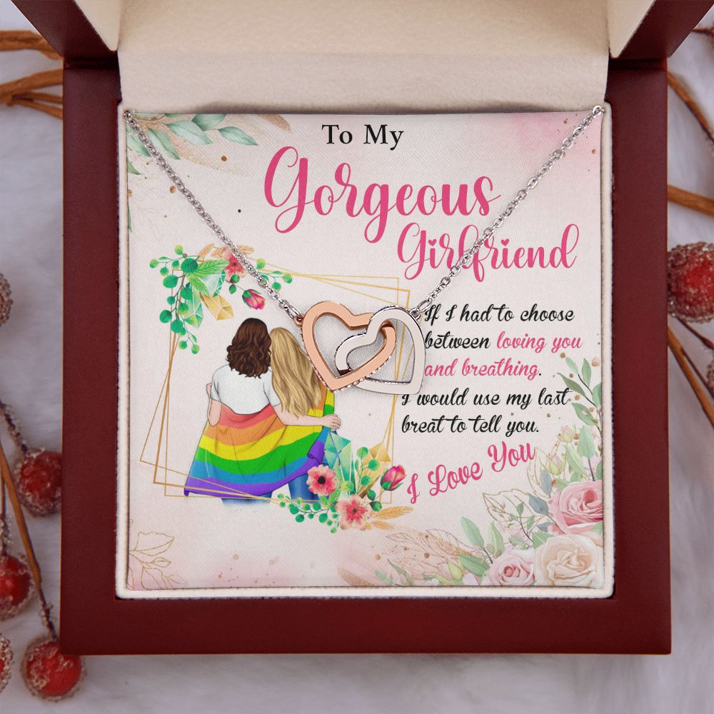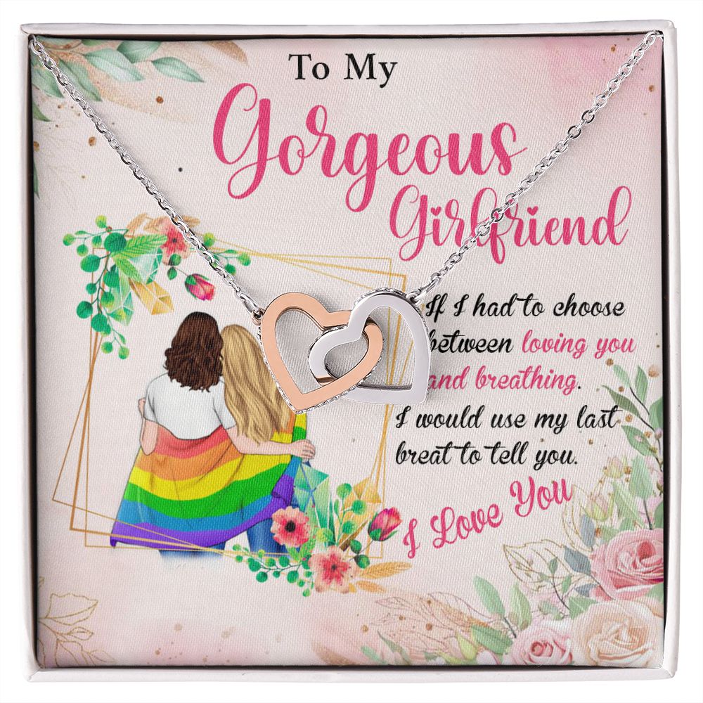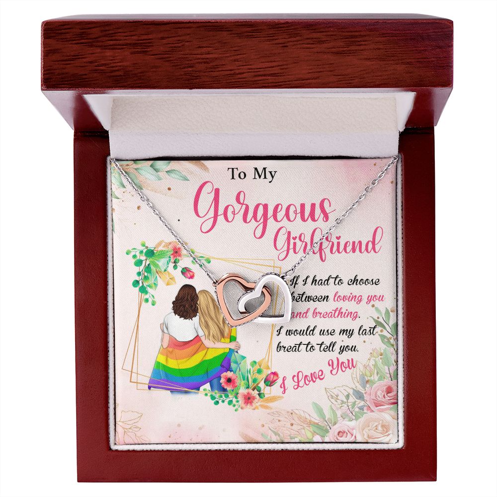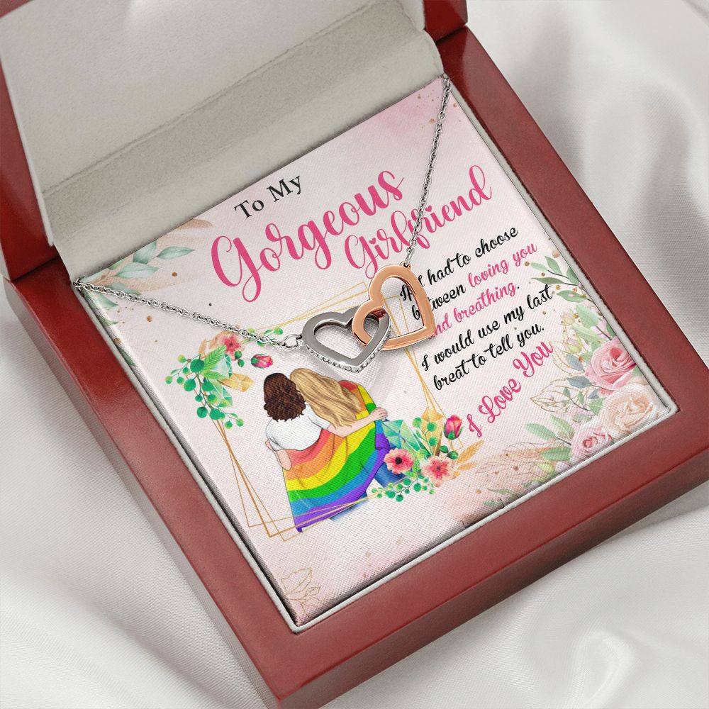 MY GORGEOUS GIRLFRIEND, INTERLOCKING HEART NECKLACE FOR LOVELY SOULMATE, FOR YOUR LGBTQ PARTNER, WITH MESSAGE CARD, PRIDE NECKLACE,