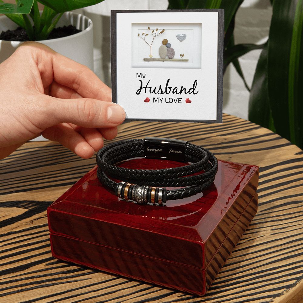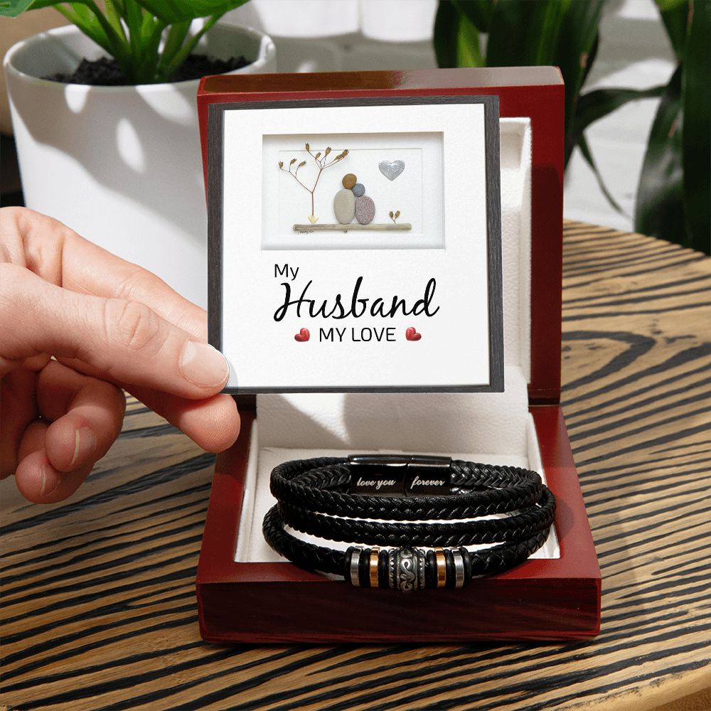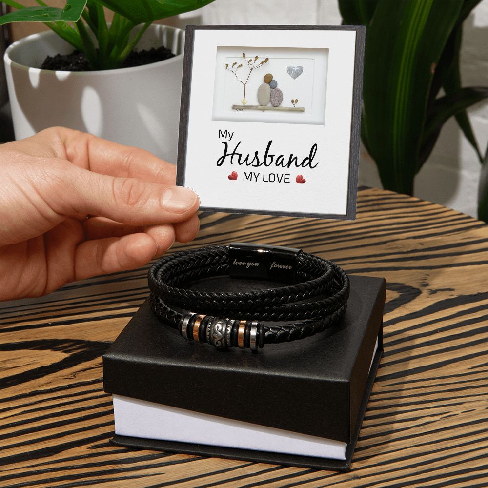 MY HUSBAND MY LOVE, LOVE YOU FOREVER MEN'S BRACELET FOR HUSBAND, BIRTHDAY/ANNIVERSARY GIFT FOR HIM, BRACELET WITH ENGRAVED MESSAGE AND MESSAGE CARD FOR YOUR HUSBAND