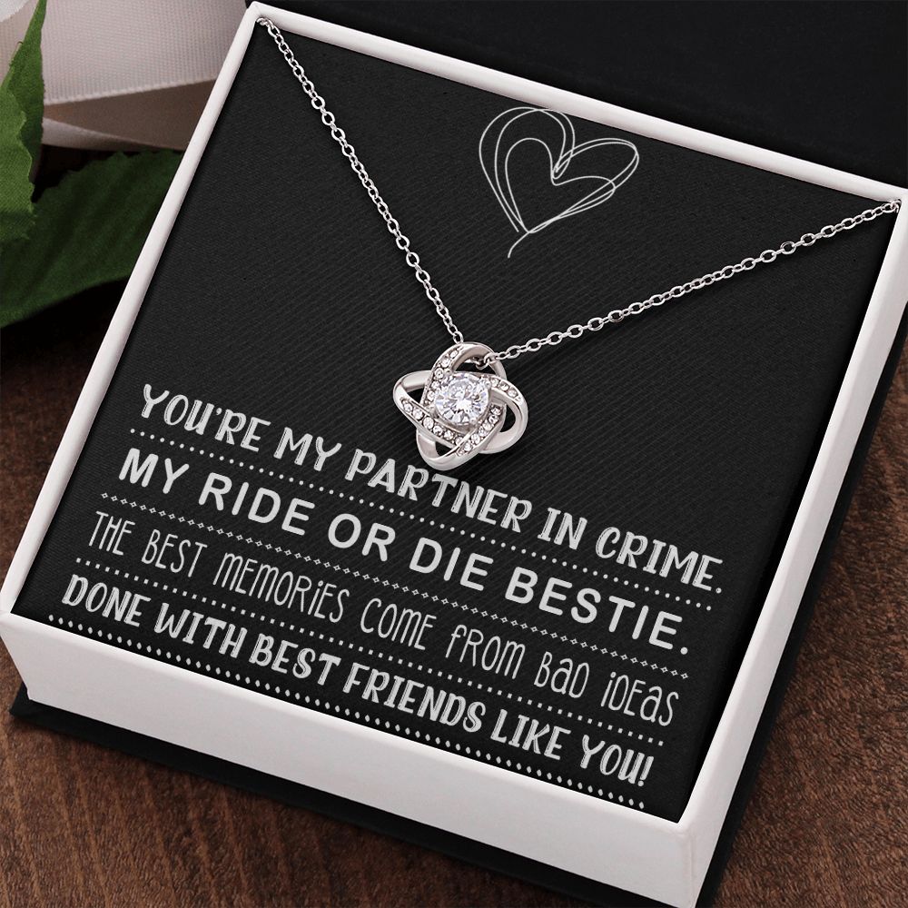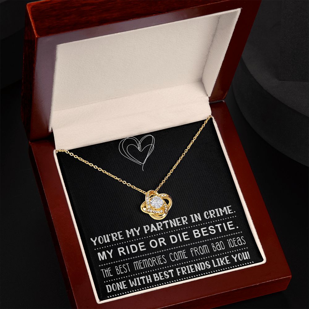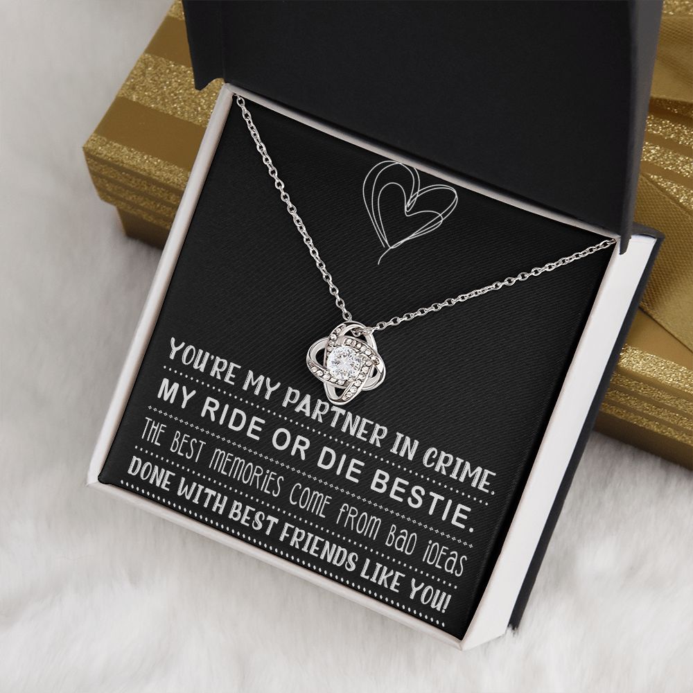 MY RIDE OR DIE BESTIE, LOVE KNOT NECKLACE WITH MESSAGE CARD, FOR FRIENDS, BFF, BIRTHDAY, FRIENDSHIP DAY GIFT FOR HER